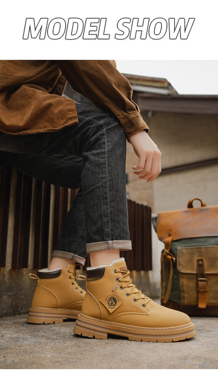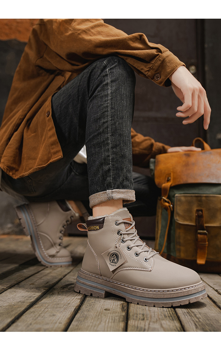 1 Pair of Men's Fashion Classic Versatile British Style Outdoor Snow Boots, High-Top Lace-Up Autumn/Winter Hiking Workboot, Suitable for Casual Travel and Gifts (Birthday & Christmas), Winter Sports
