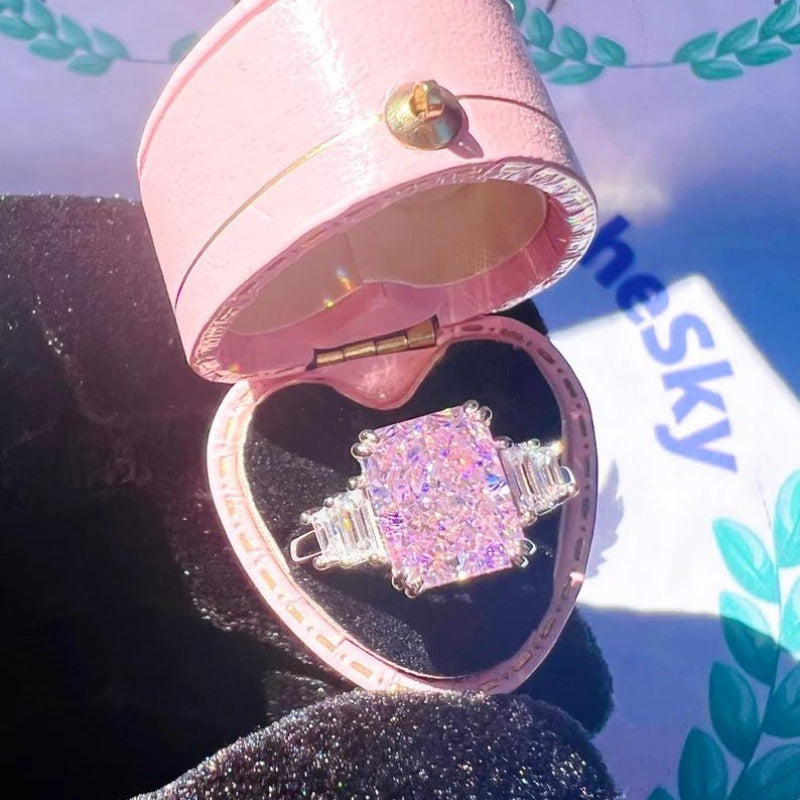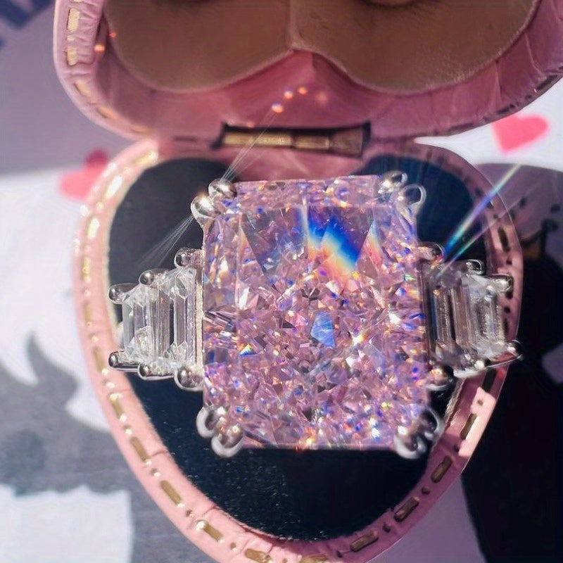 1pc Elegant Pink Cubic Synthetic Zirconia Women'S Ring - Bohemian Style Jewelry with Square Bezel Setting & -Accented Band, Pink & Clear Halo, Durable Synthetic Gemstone for Casual Attire, Valentine'S Day Gift, Anniversary, B