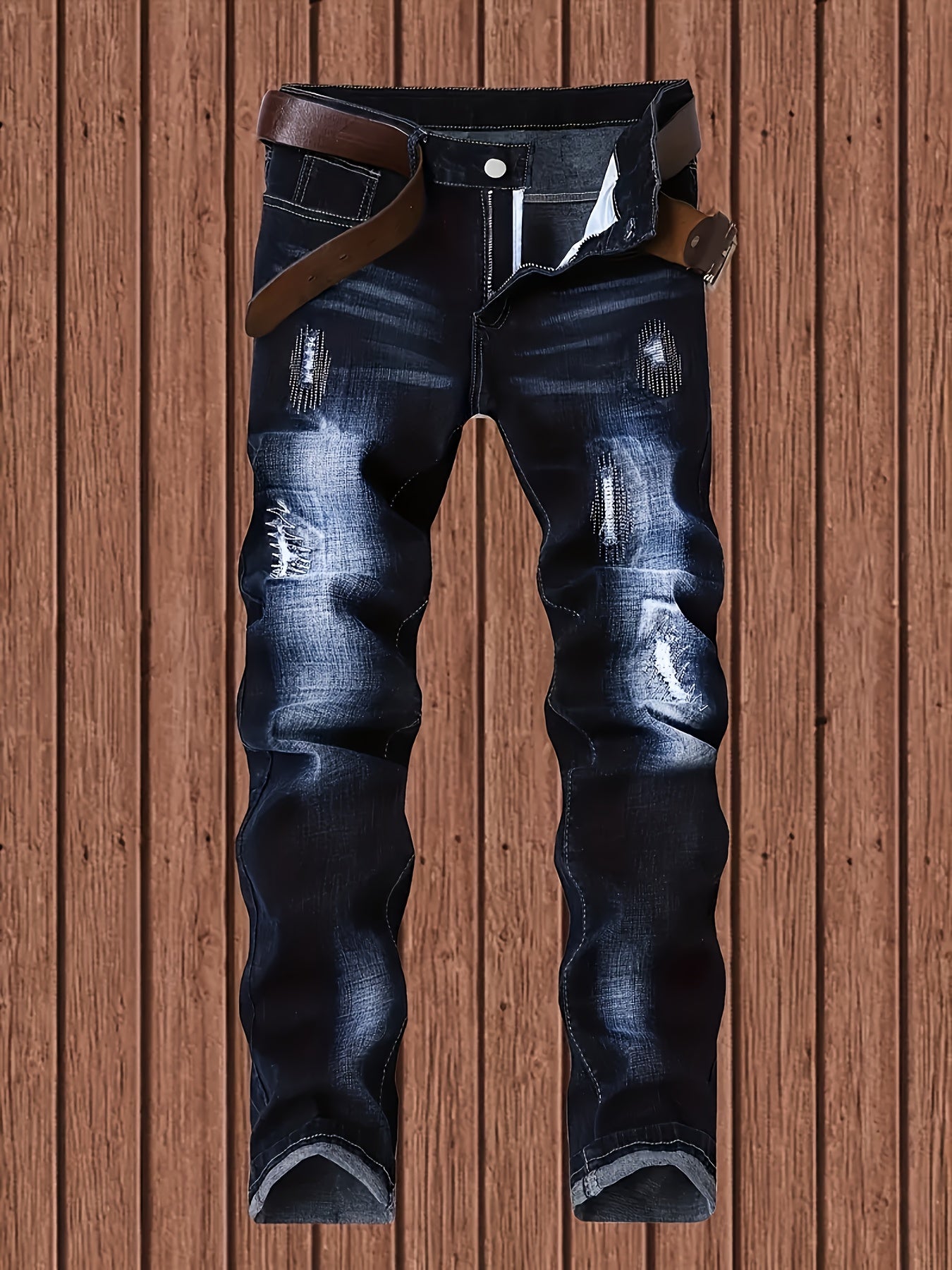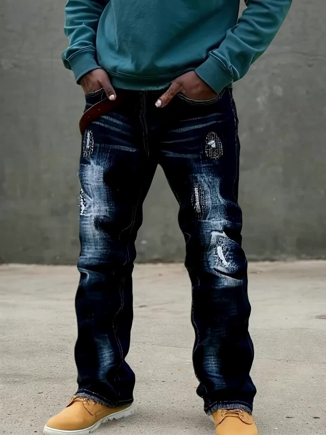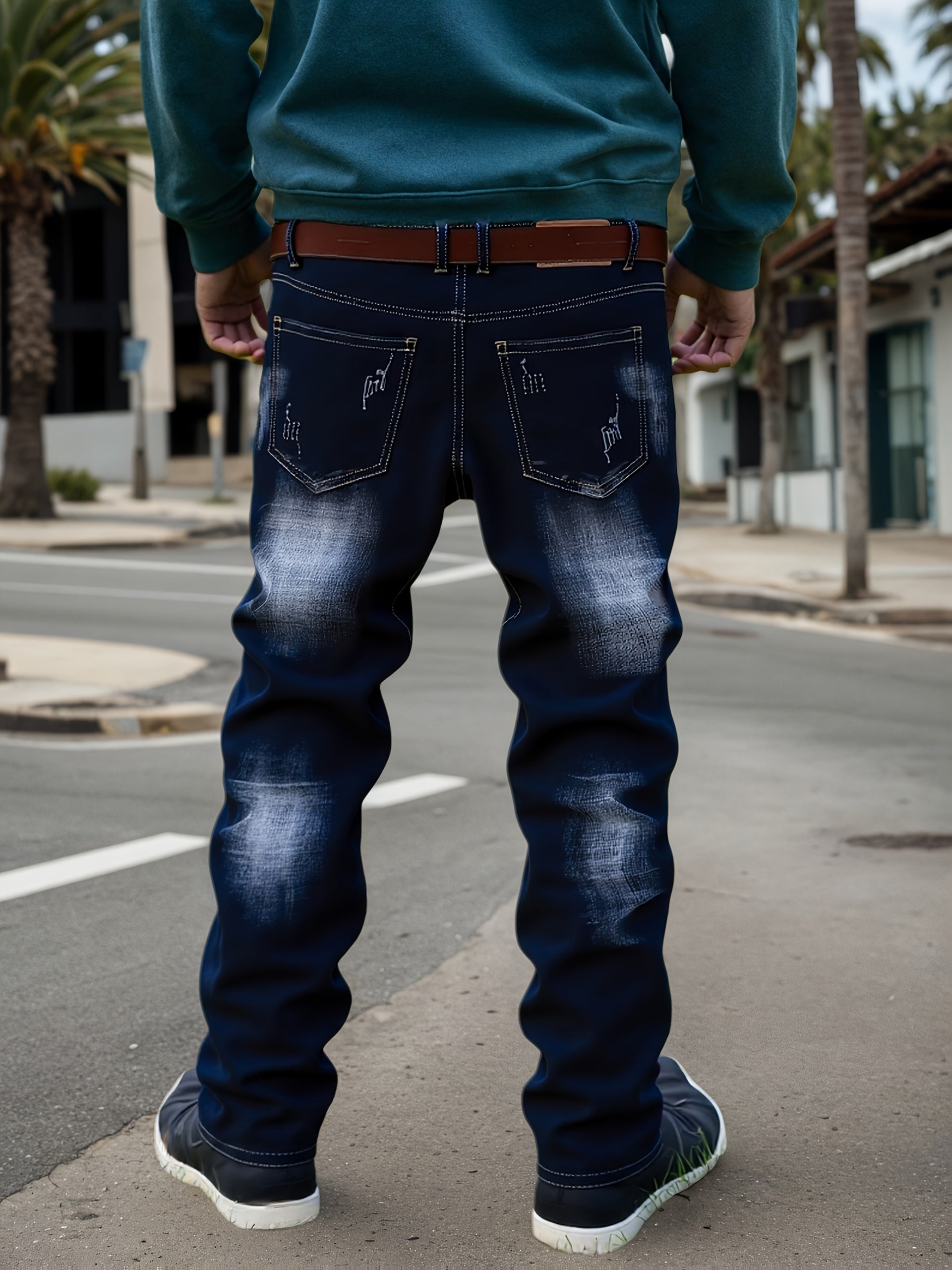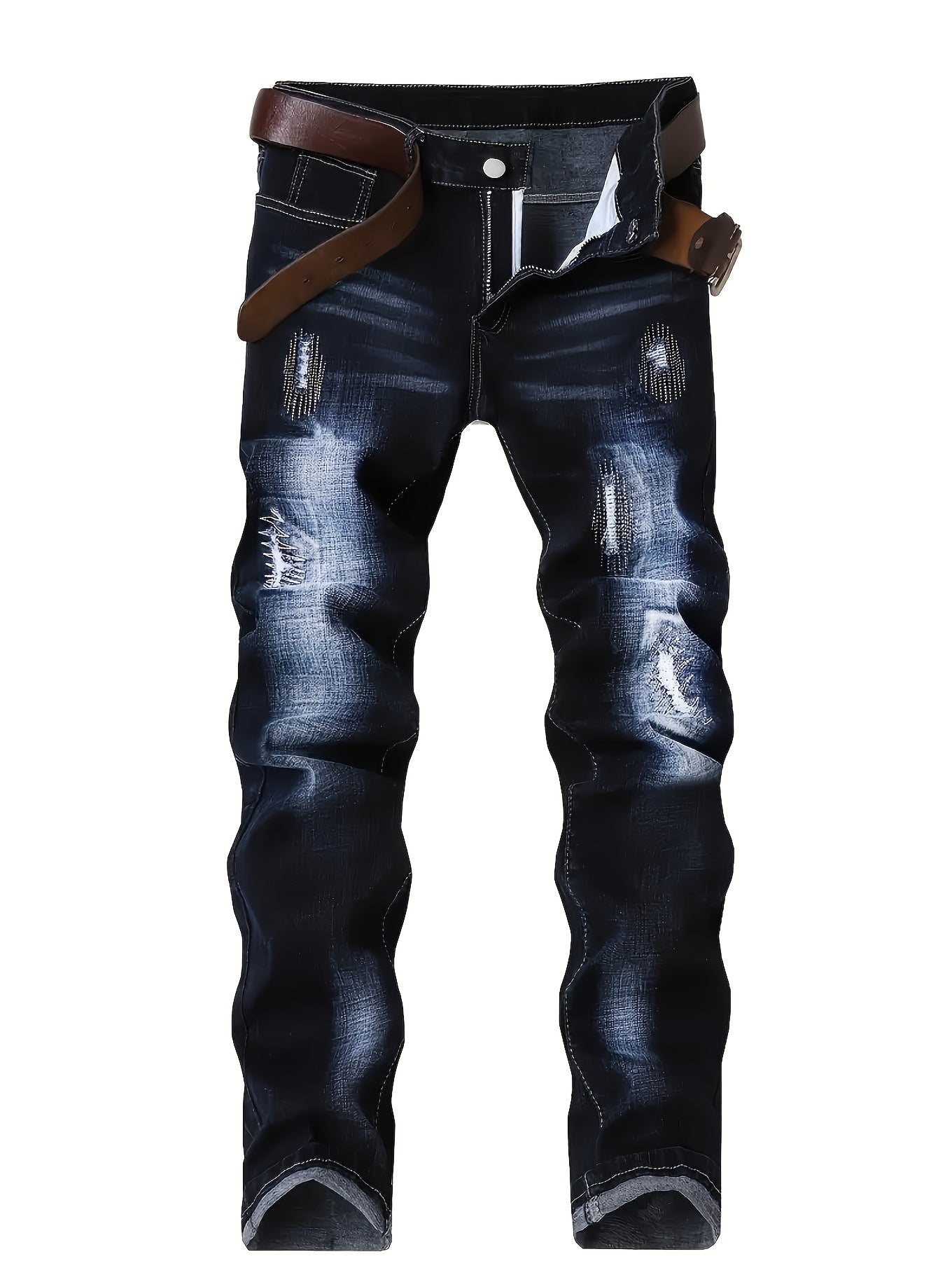 2025 New Men'S Slim-Fit Straight Leg Faux Denim - Stretch Soft Faux Denim Pants with Elastic Waist & Built-In Zipper Closure, All-Season Comfort, Classic Blue Washed Casual Trousers for Casual Attire, Office & Semi-Formal Out
