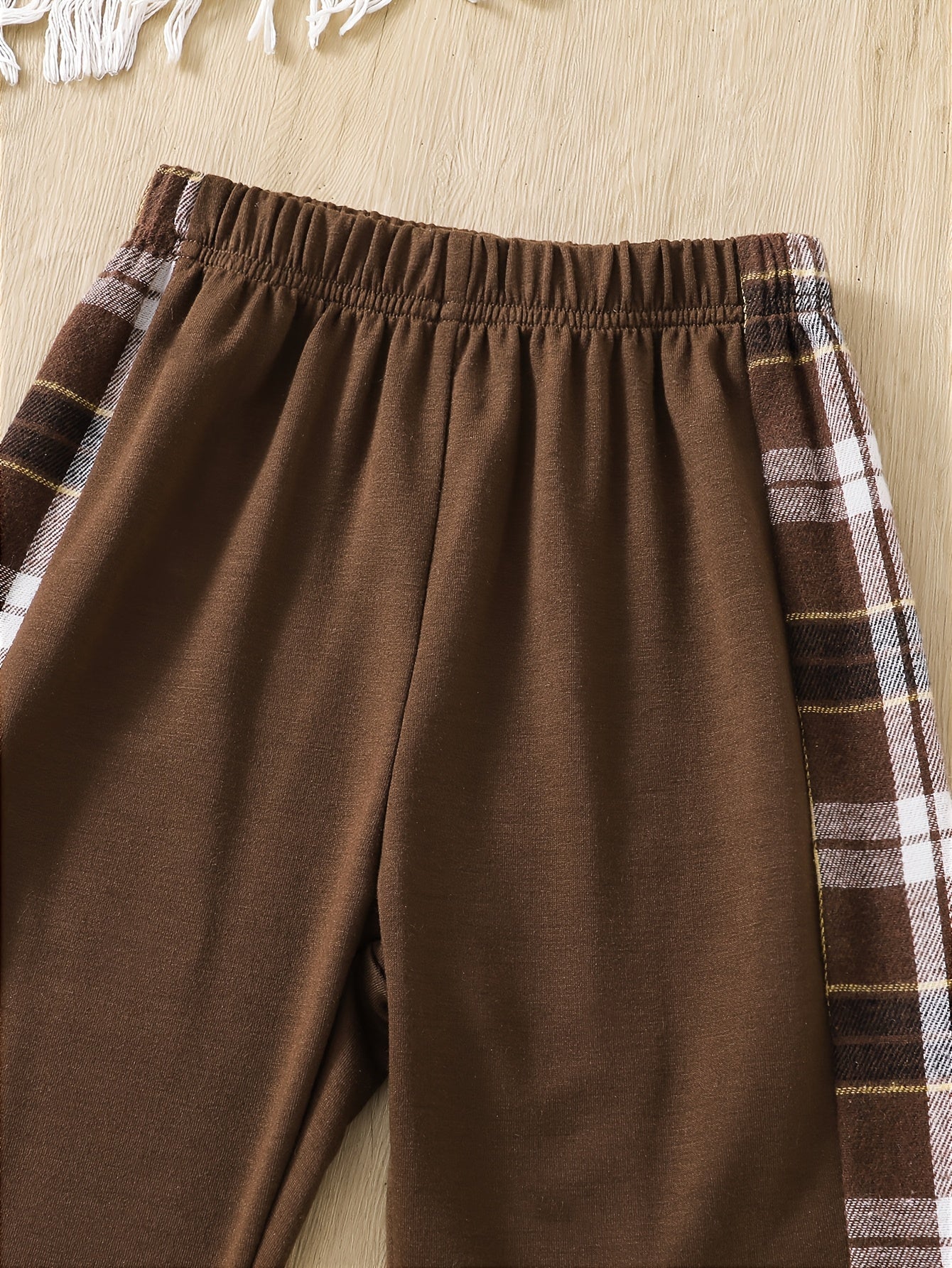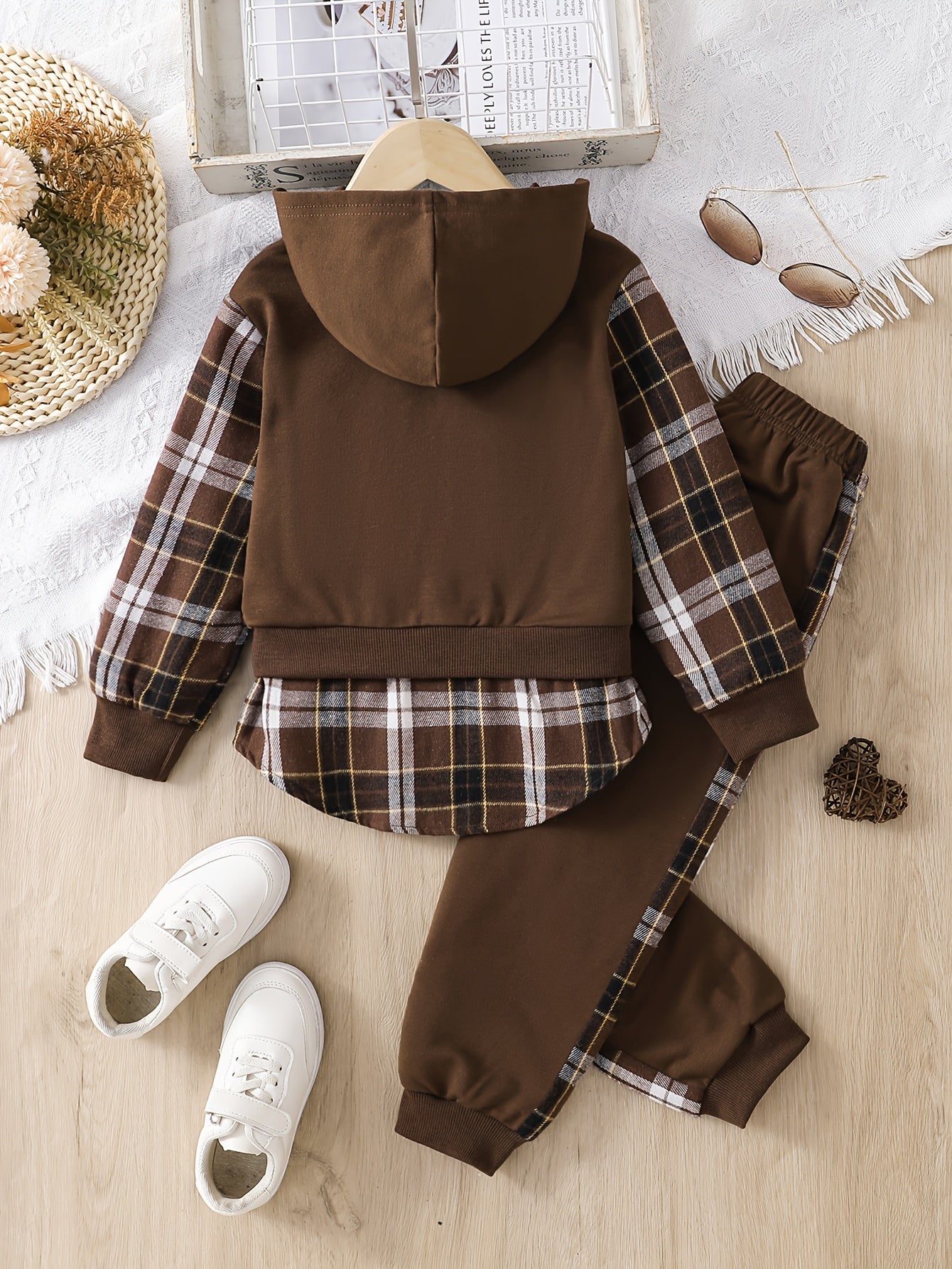 2pcs Girls' Plaid Hooded Sweatshirt & Straight-Leg Pants Set - Brown & Checkered Long Sleeve Outfit, Elastic Waistband, Casual Spring/Fall Playwear with Pockets, Cute Sweatshirts, for Outdoor