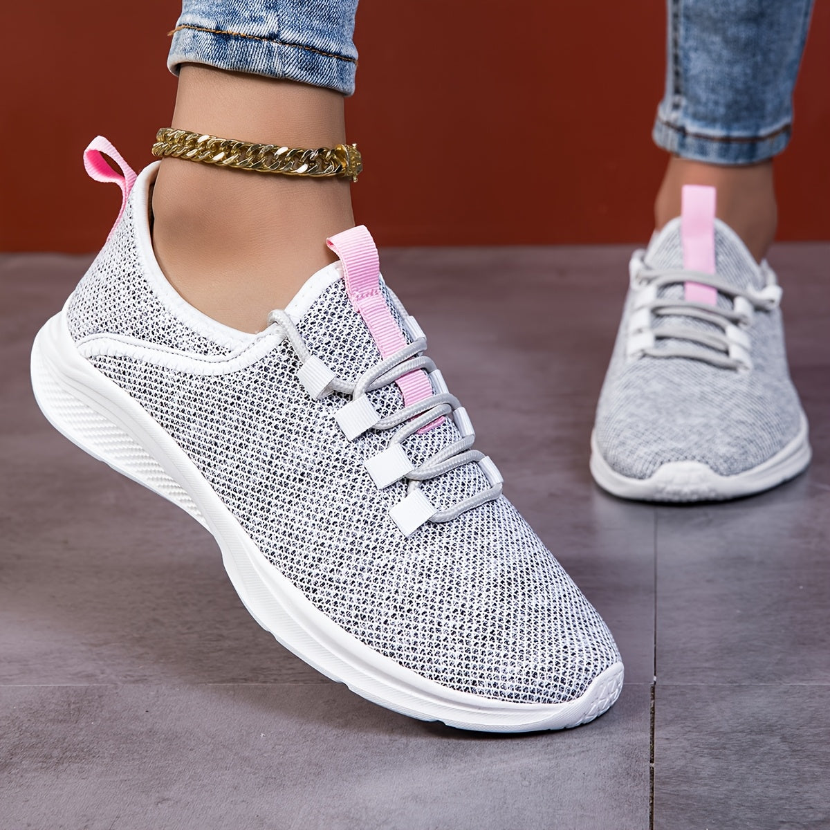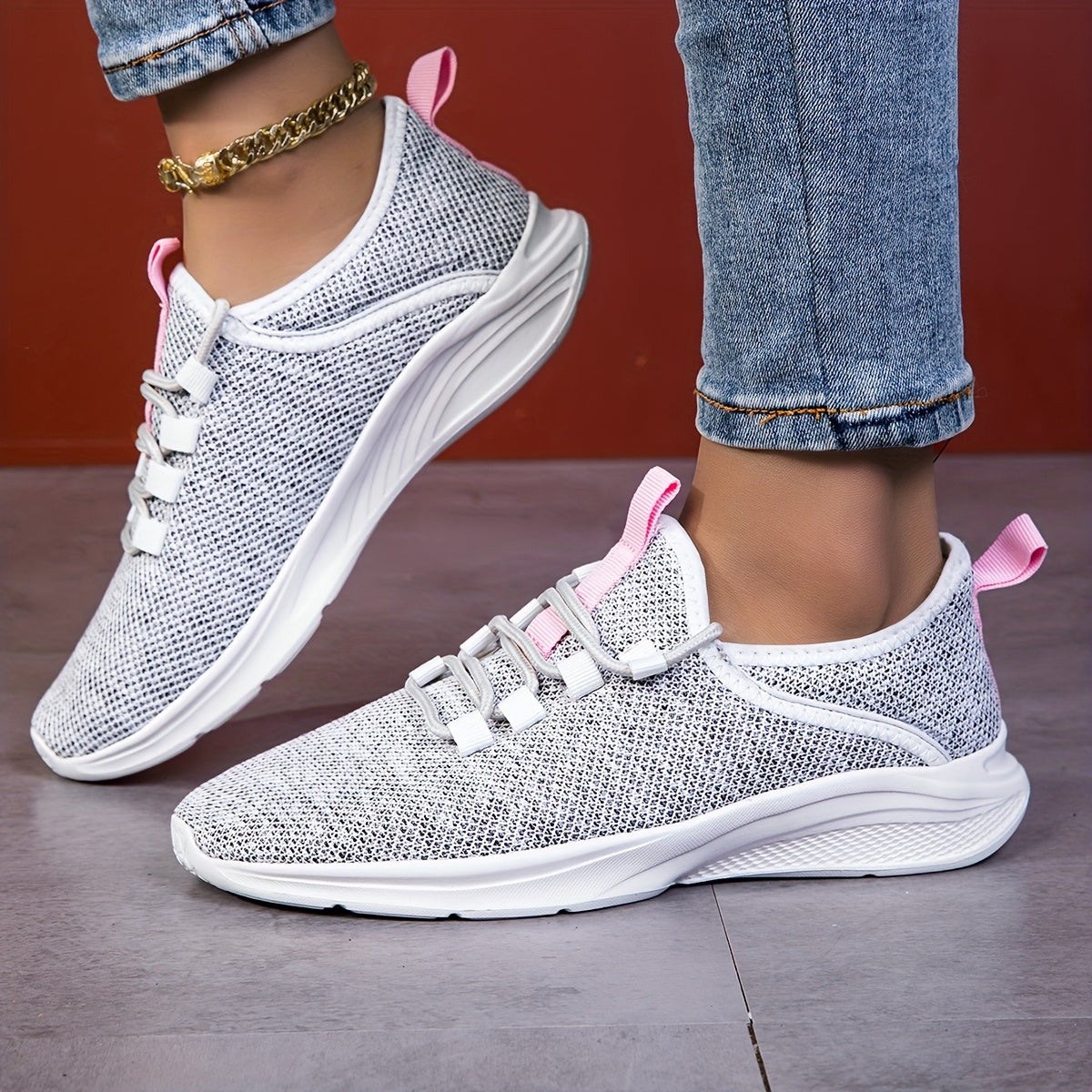 A Pair Of White And Gray Sneakers Men's And Women's Summer Mesh Surface Breathable Running Shoes Trend Women's Casual Shoes Travel Fitness Yoga Walking Shoes Marathon Running Shoes Tennis Shoes Basketball Shoes Large Size Cou