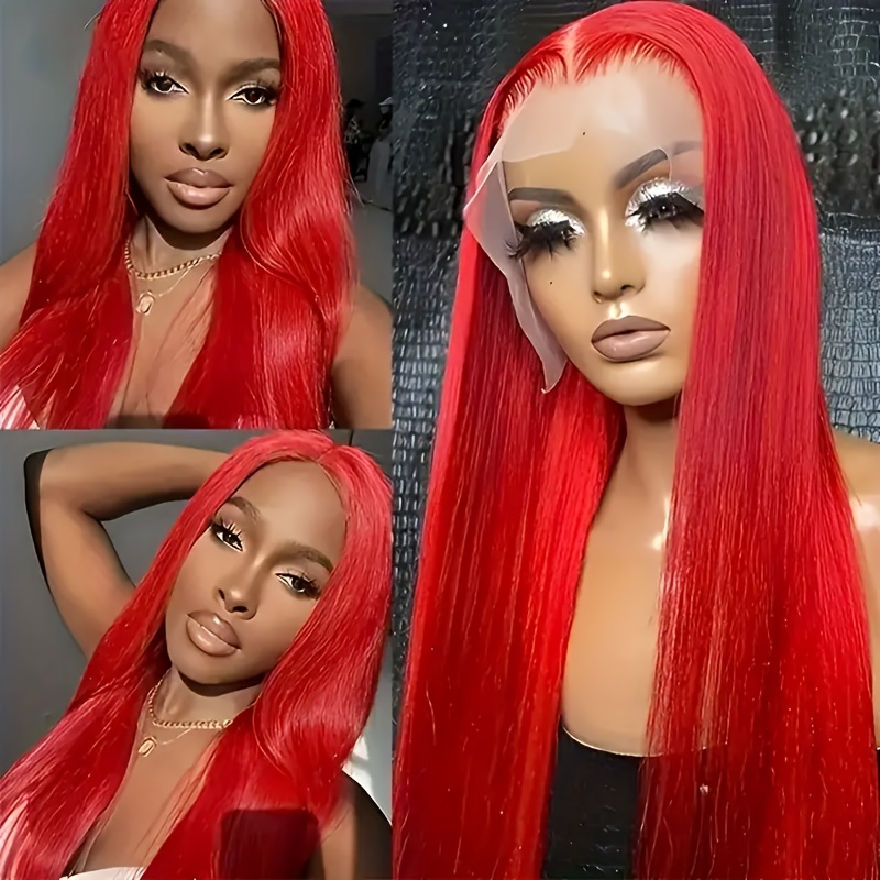 Black Friday 180% Density Long 13x4 Red Straight Wigs for Women Pre-plucked Baby Hair Brazilian Virgin Straight Wigs Lace Front Long Human Hair Wigs