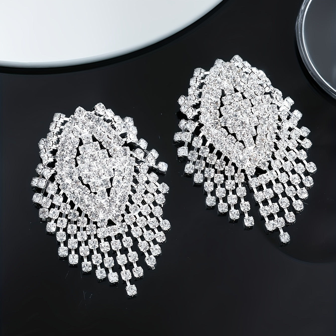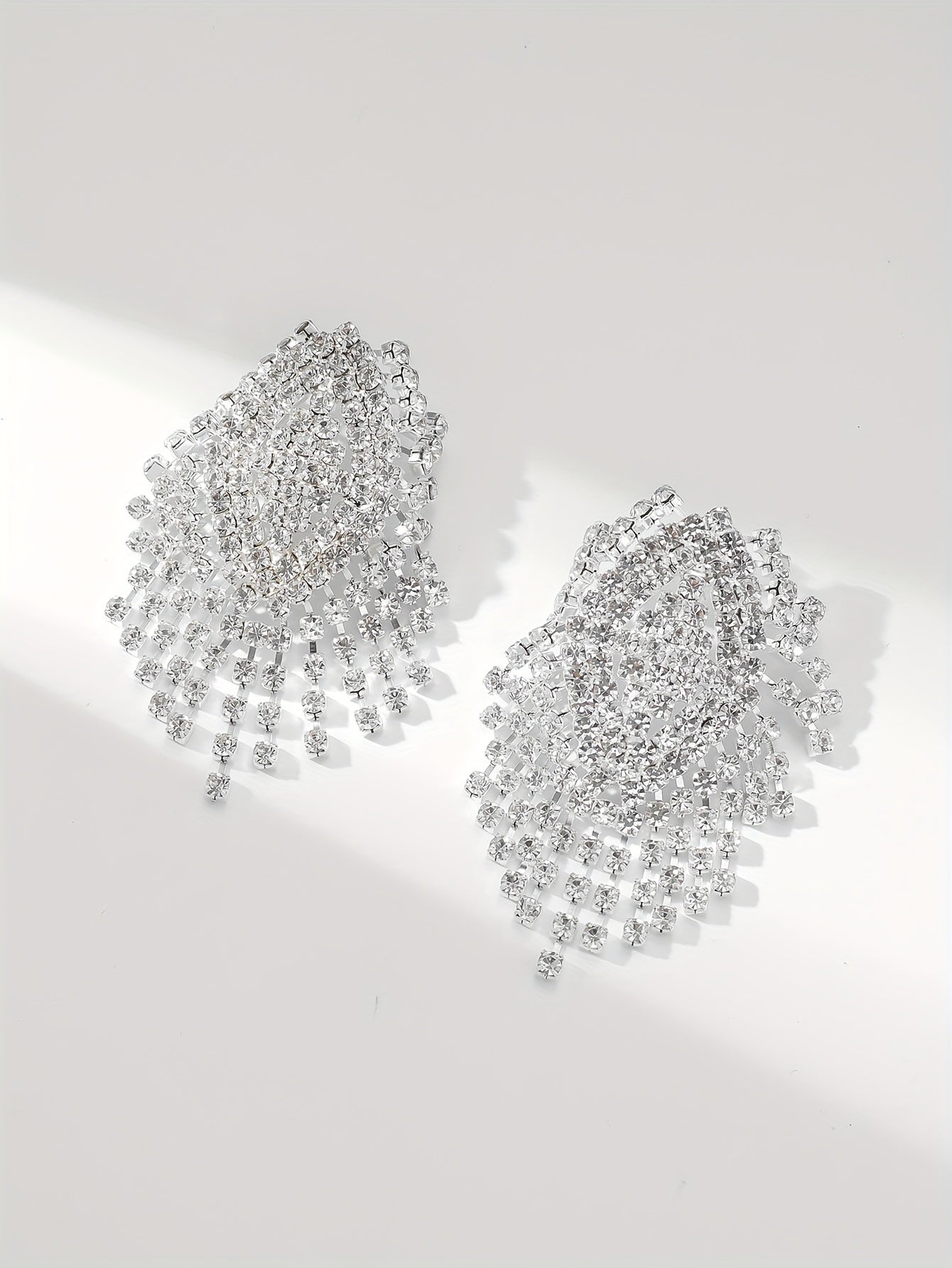[Customer Favorite] Dazzling, Elegant Silvery-Plated Rhinestone Tassel Earrings - Sparkling Copper Dangle Jewelry for Weddings, Parties & Gifts