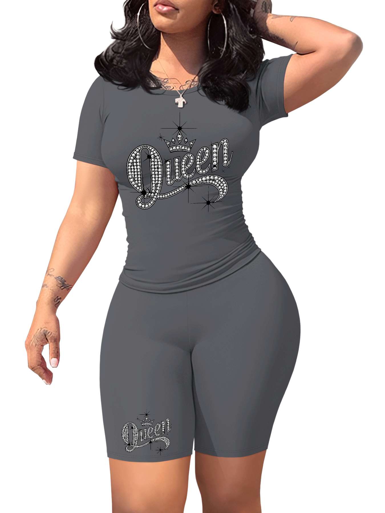 Diamond Queen Women's SlimFit Tshirt and Pants Set?? Premium Print?? Durable?? Casual and Fashionable?? Sparkling Queen Crown Design?? Perfect for Casual Attire and Stylish Outfits?? Comfortable Fit?? Gift Idea.