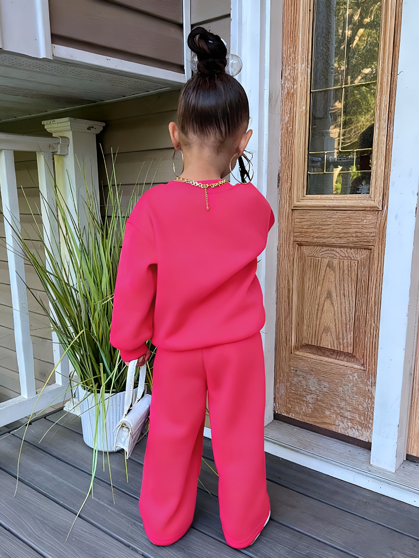 Girl'S Autumn and Winter Love Print Fleece Hoodie + Print Pants Two-Piece Set | Suitable for Outdoor Wear, Comfortable Fabric with Fleece Insulation, Casual Style, Regular Fit, Ideal Gift for Children.