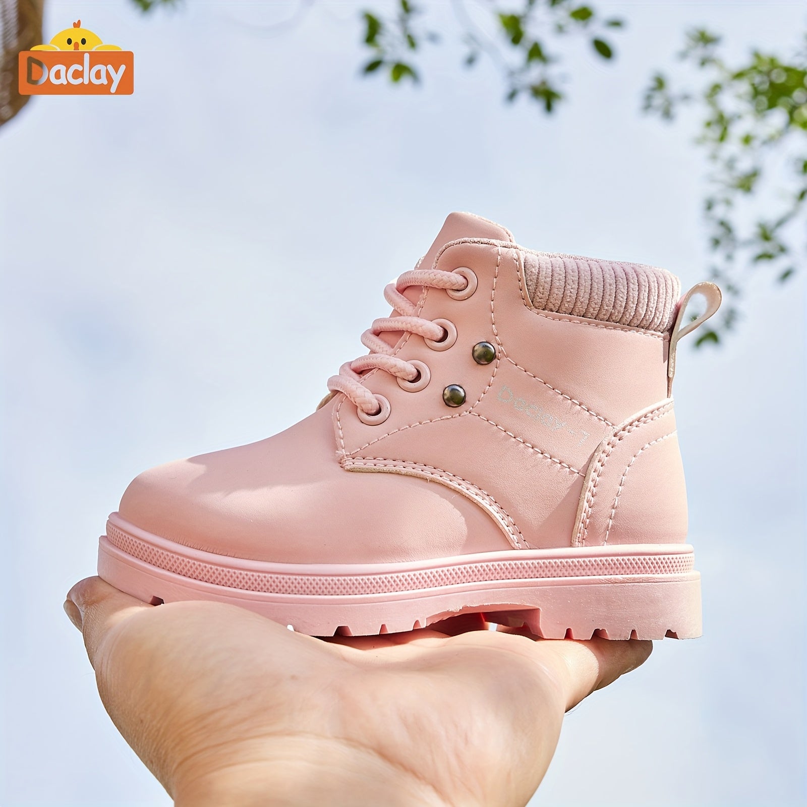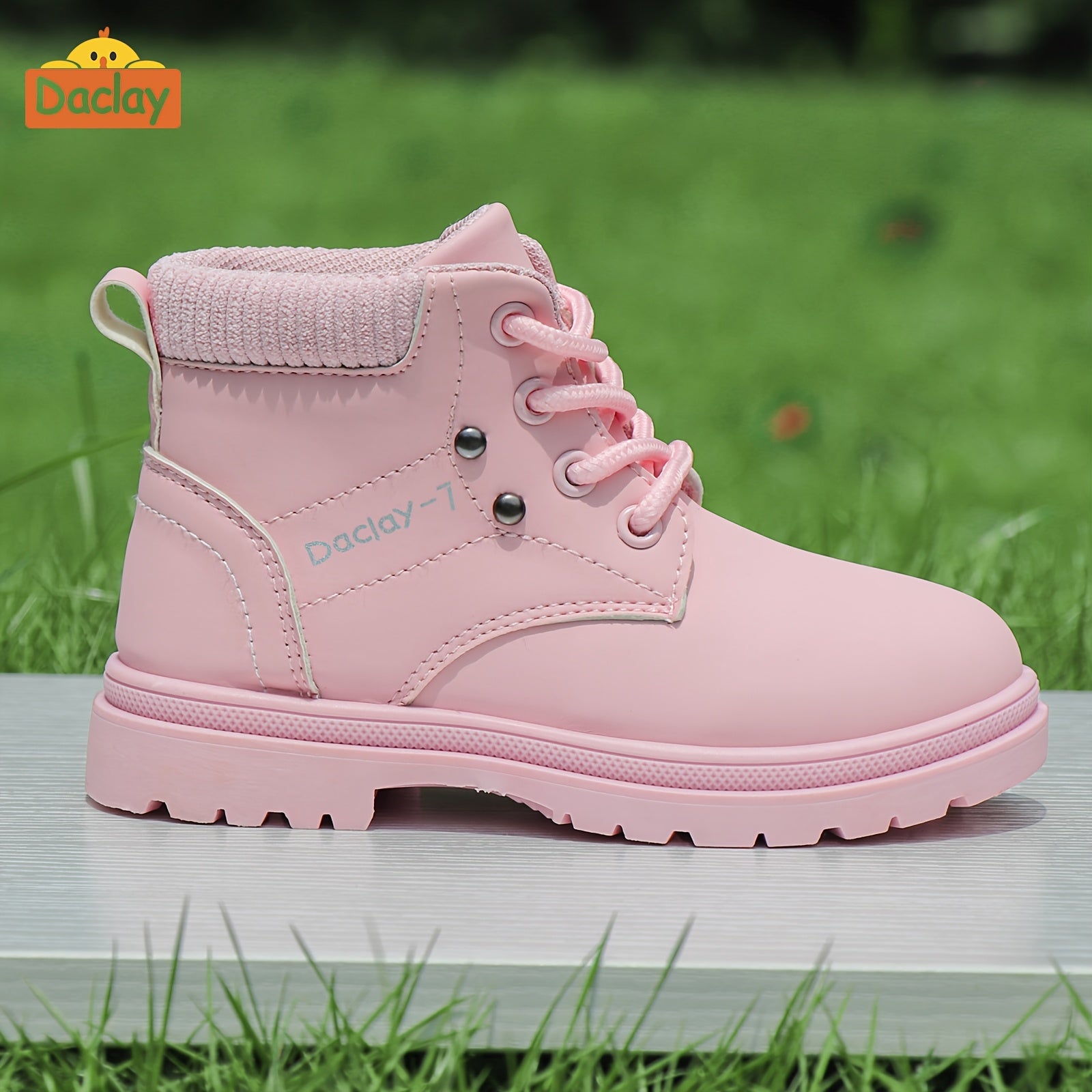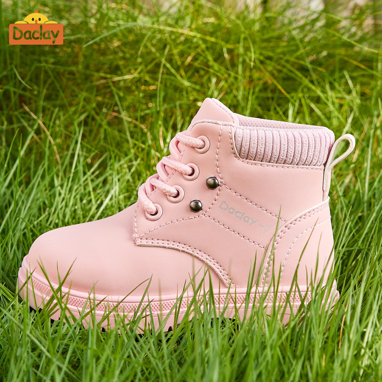 Girls & Boys All-Season Thickened PU Boots with Closure - Pink/White Short/Mid-Calf Outdoor, Round Toe Traction Tread for &, Durable Casual & Footwear (Easy On/Off)