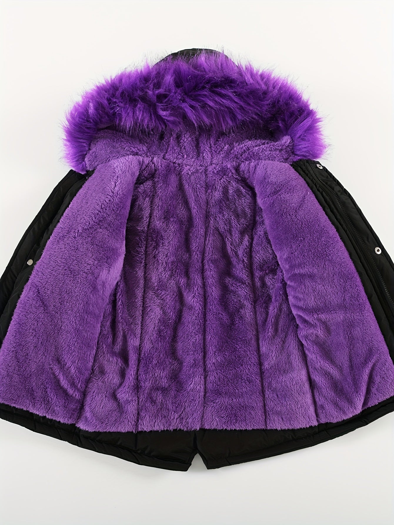 Girl's Chic Furry Collar Long Sleeve Parka Jacket, Comfy Plush Lined Warm Long Sleeve Outerwear