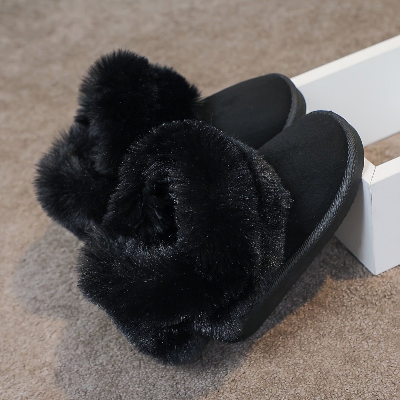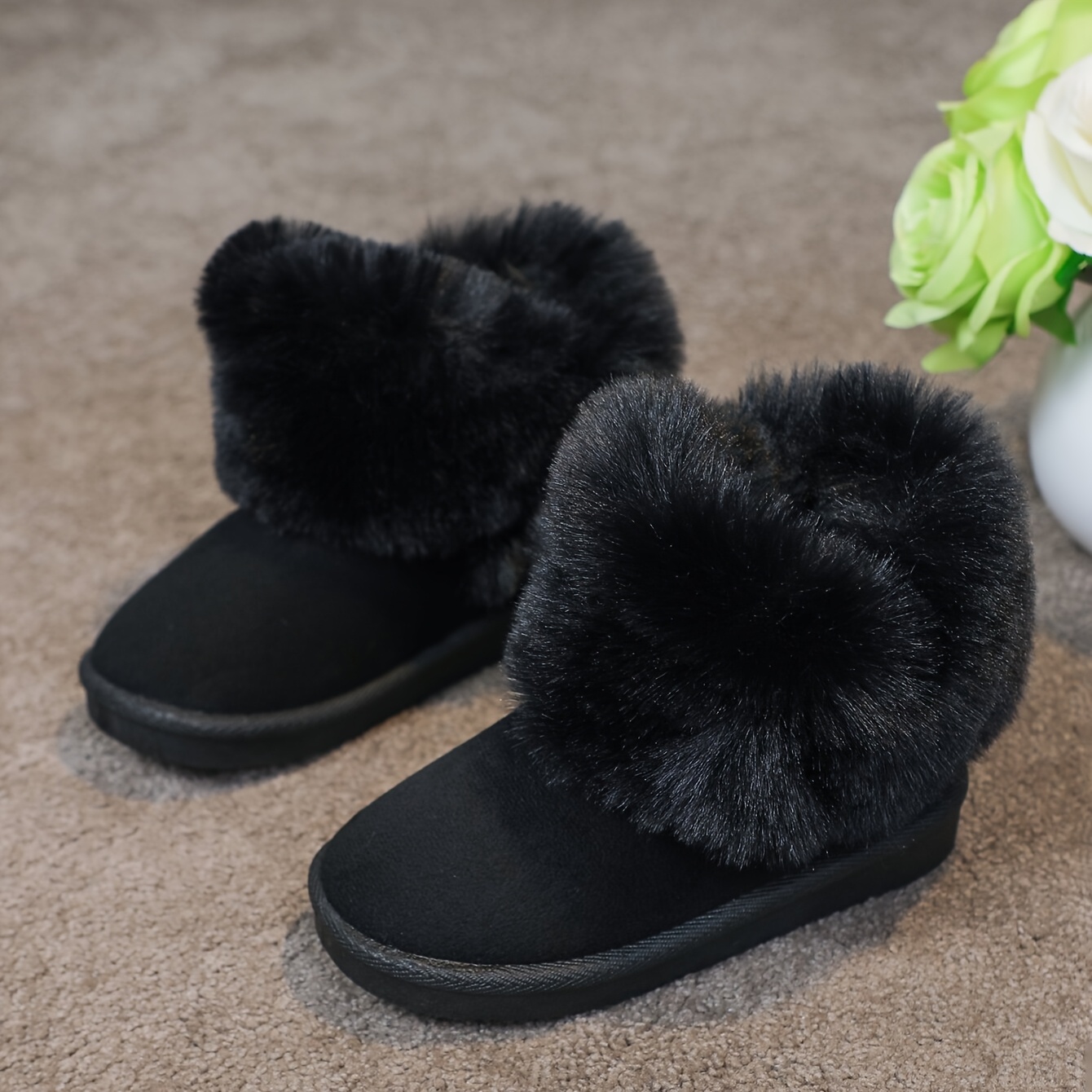 Girls' Cozy Fleece-Lined Slip-On Snow Boots with Plush Collar & - Warm Winter Boots with TPR Sole, &, Mid-Calf Height, Solid Color For Outdoor Play & Casual Wear, Winter Boots, Playful Design, Durable Construction