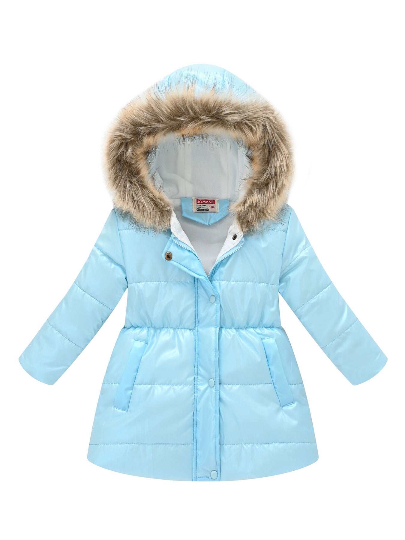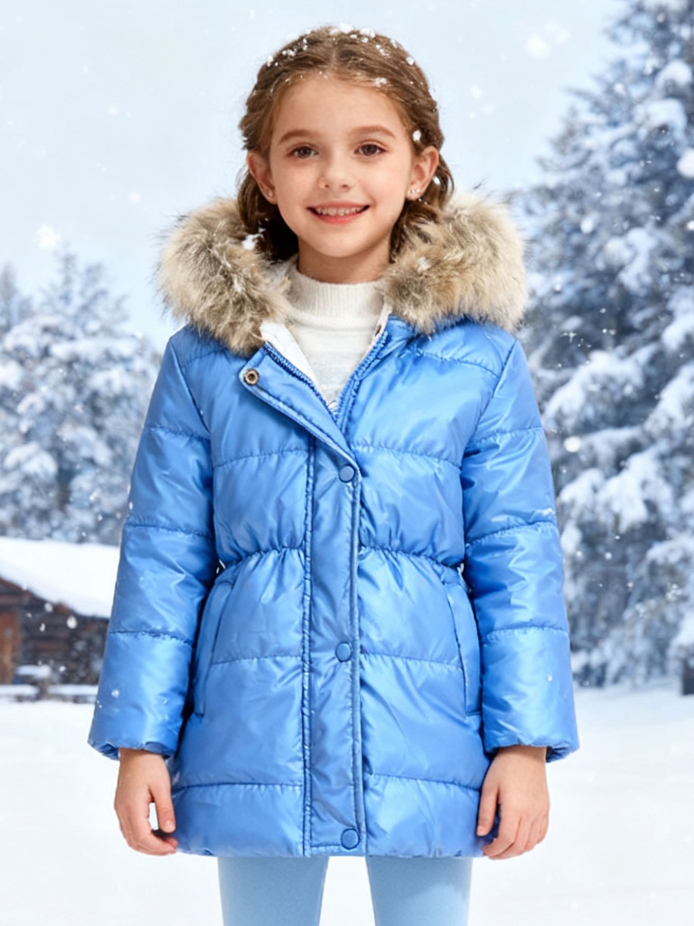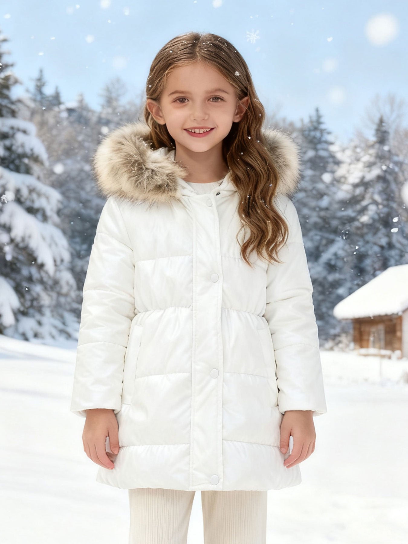 Girls' Multicolor Thickened Hooded Jacket | Mid-Length, Autumn & Winter Warm Windproof Outerwear, Suitable for Outdoor Camping and Daily Casual Style, with Pockets and Lining.