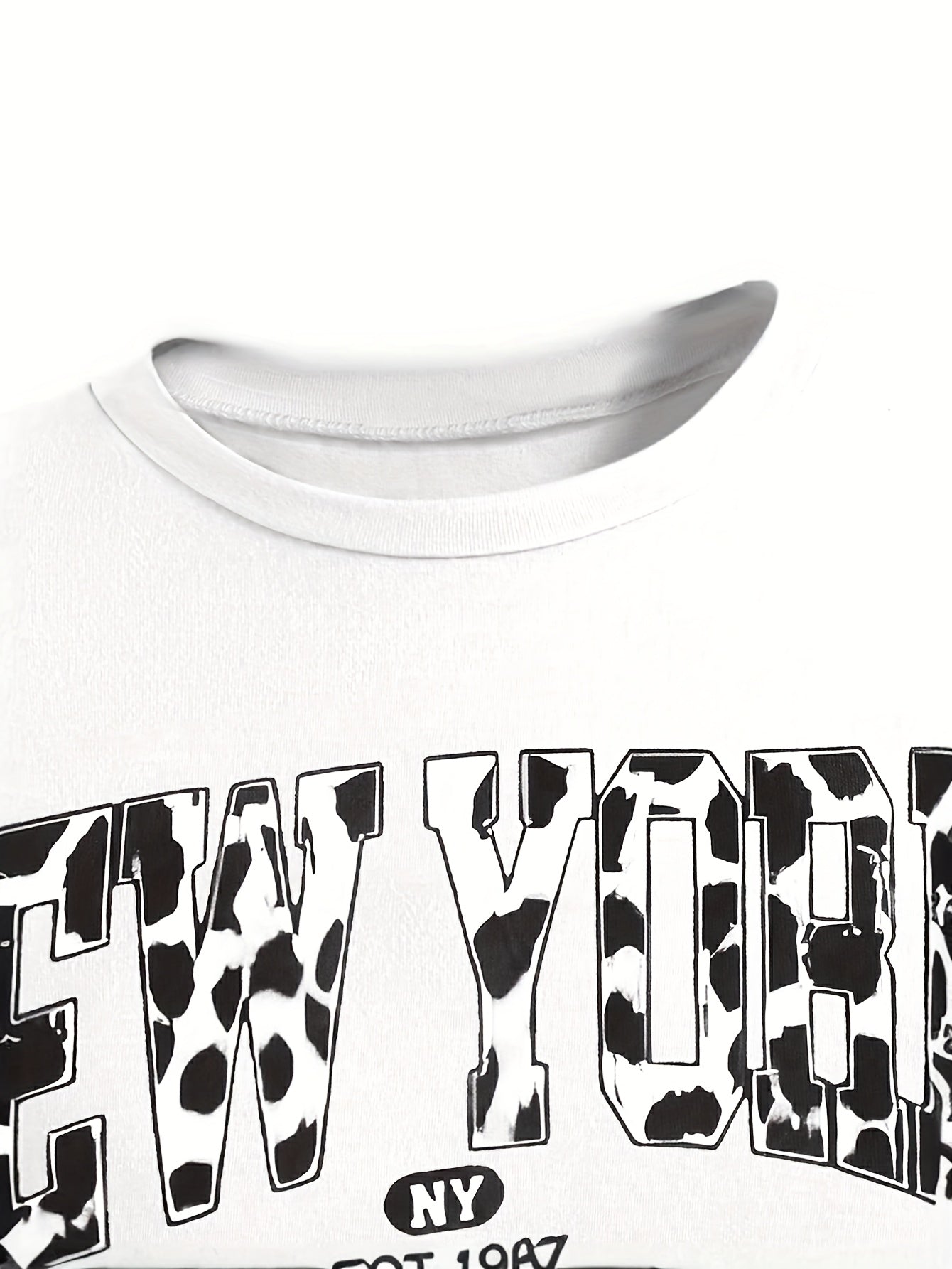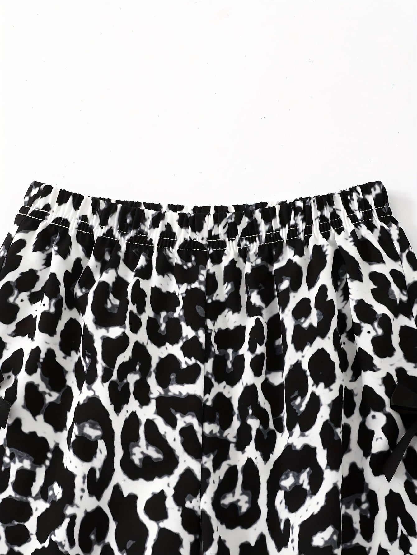 Girl's Outfit Set Stylish 2 piece Girls' Outfit Set - White & Black/White/Gray/Beige/Brown/Blue/Green/Red/Leopard Print - Long Sleeve Tunic Top & High-Waisted Wide-Leg Pants with Belt, Fitted & Flared Design, Round Neck, Mac