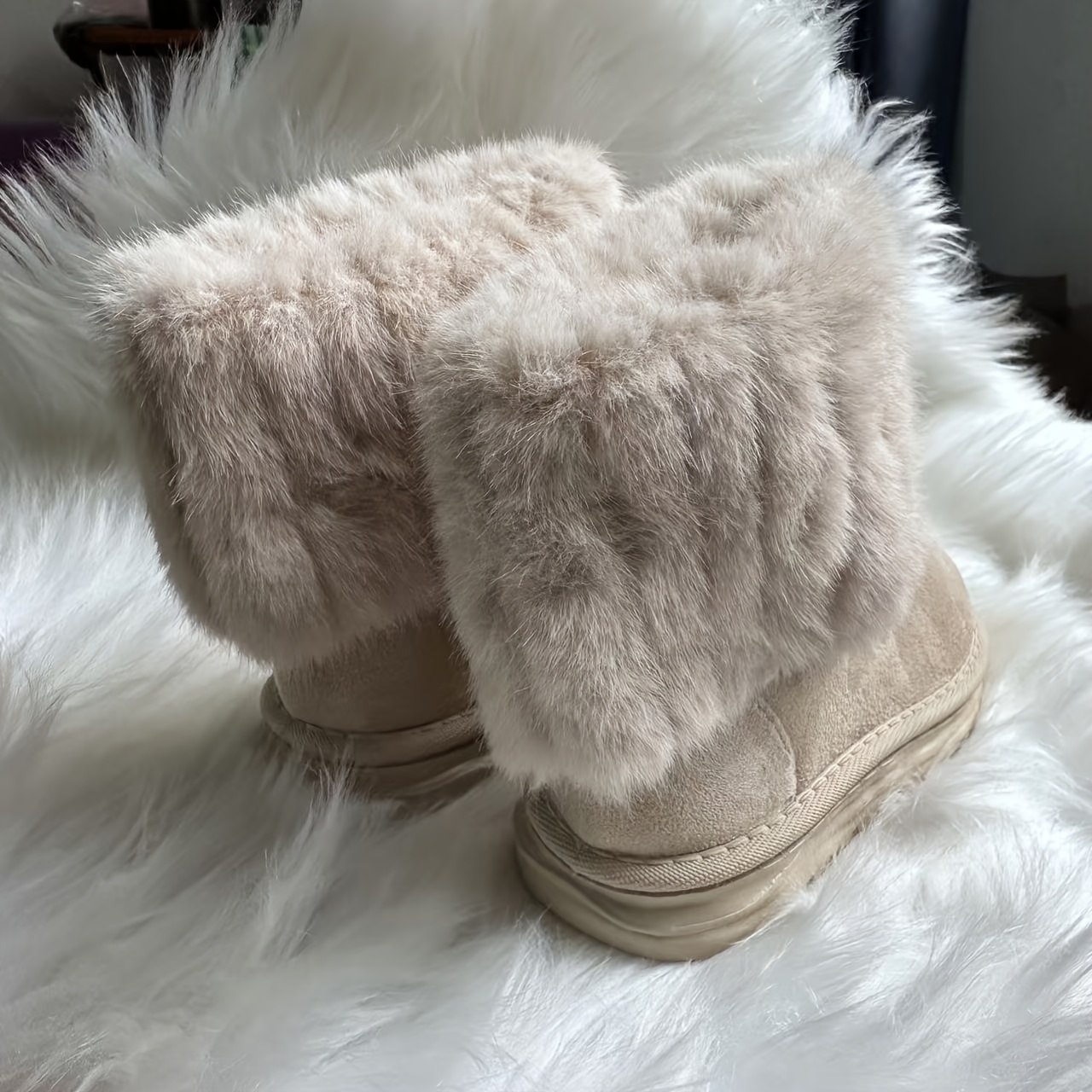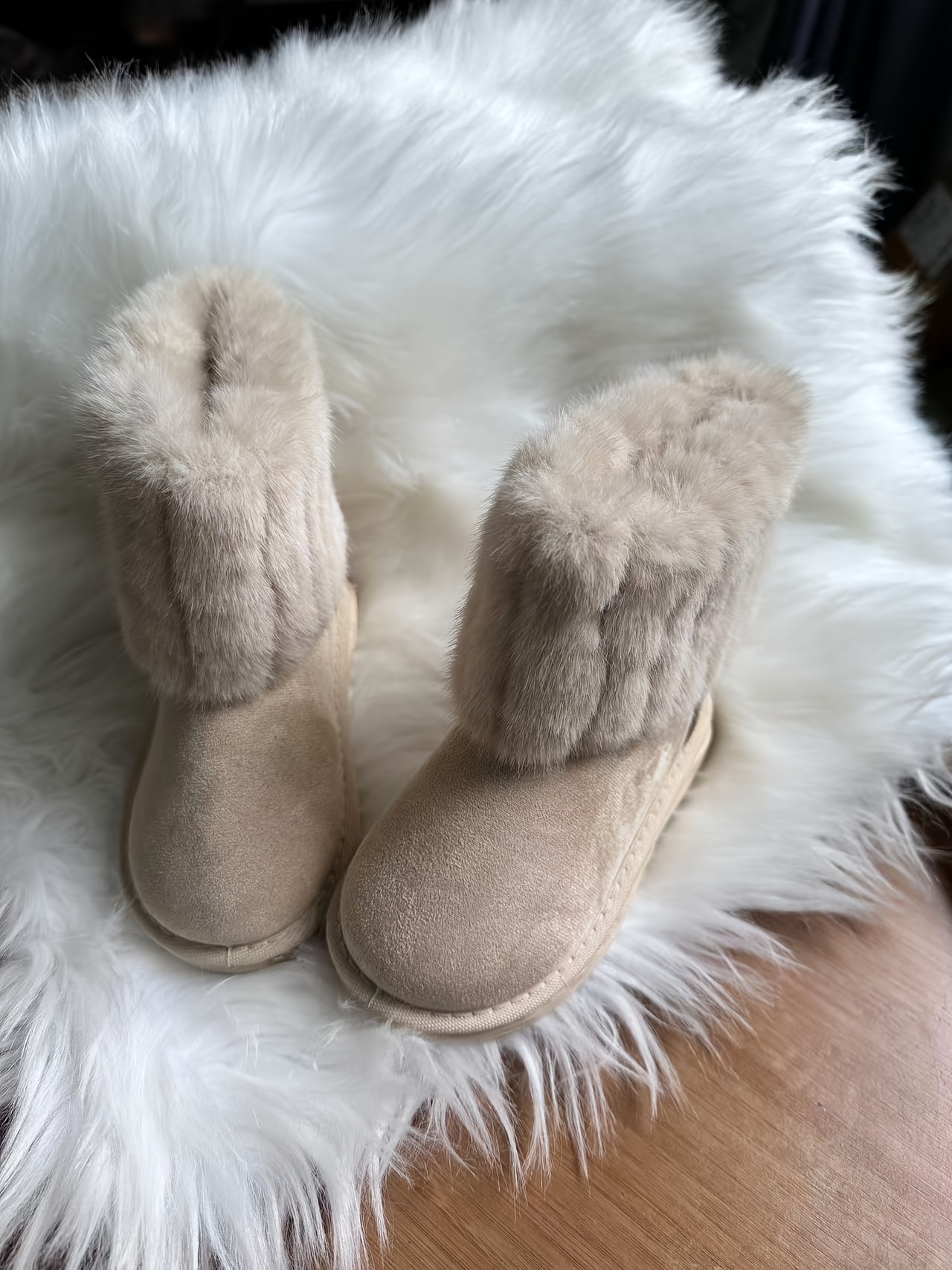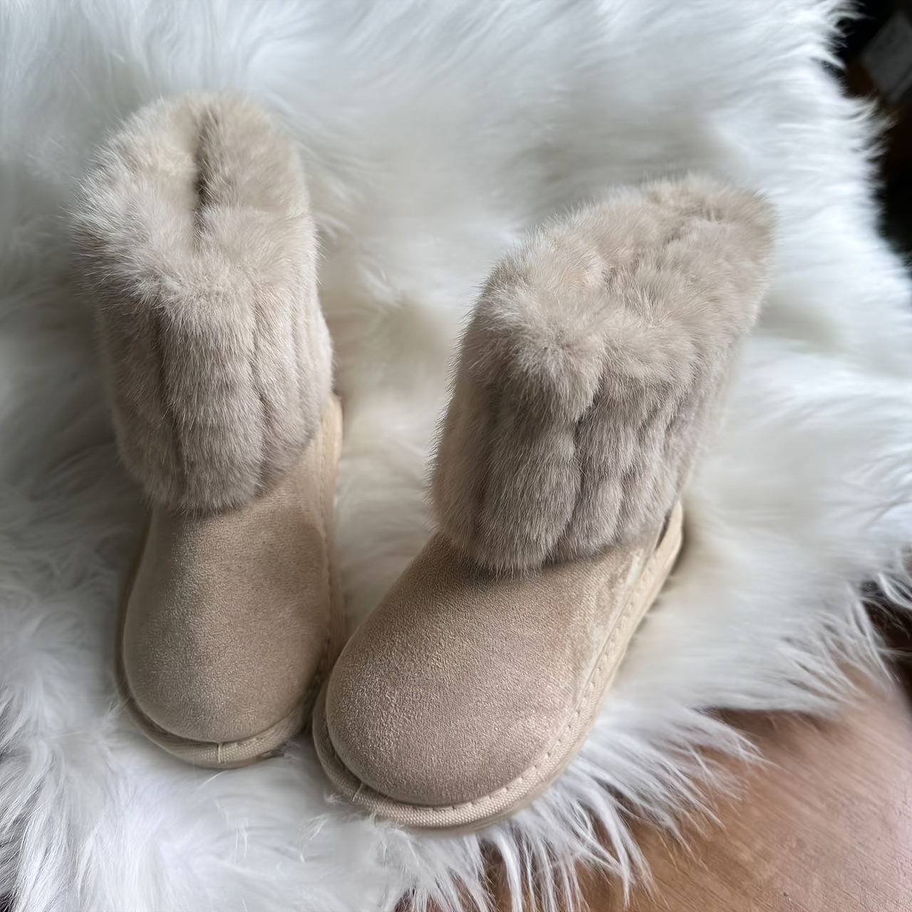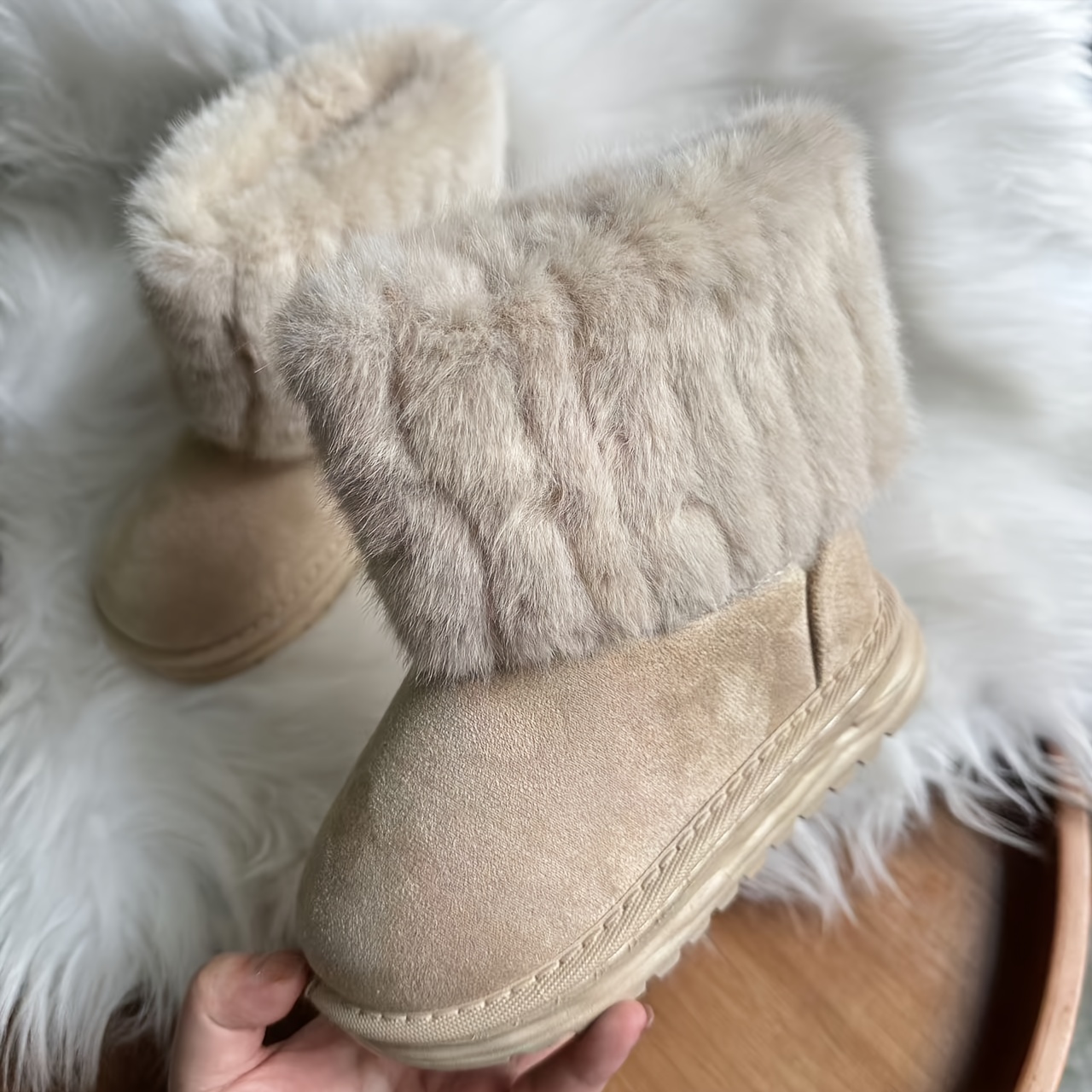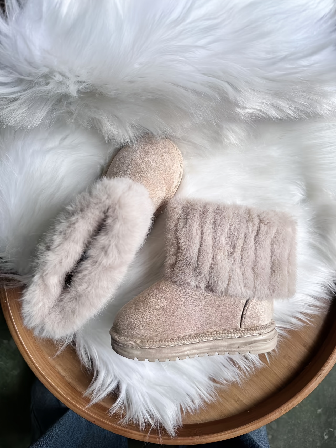Girls' Winter Warm Slip-Resistant Mid-Calf Boots With Thick Rubber Sole & Plush Collar - Beige Round Toe Snow Boots With Heart Cutouts, Soft Fabric Upper For Outdoor Play, Casual Casual Attire Beige, Pink, Blue, Black - Cozy