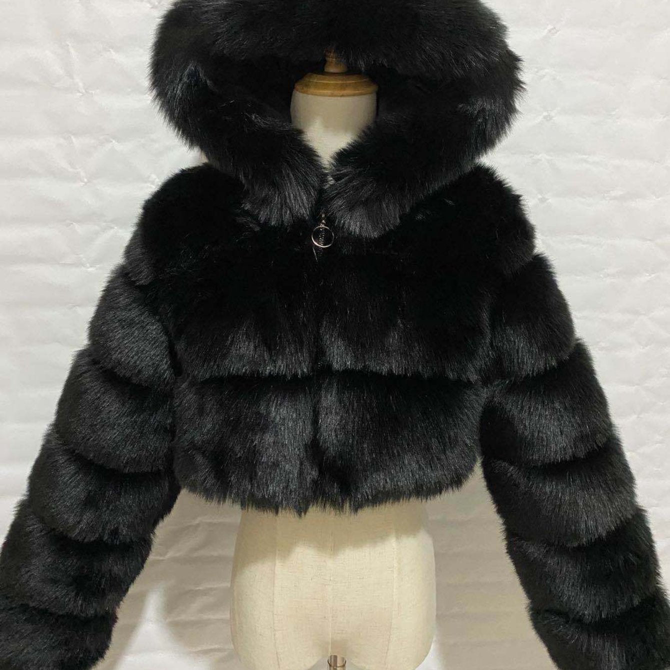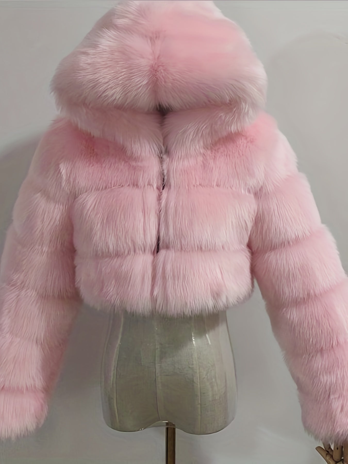 HERTALK Women's Short Fox Fur Coat with Hood - Jacket, Winter Warm Collar & Plush, H-Line Silhouette, White/Pink/Black/Coffee Brown/Chestnut Brown - Hand Washable Luxury Outerwear