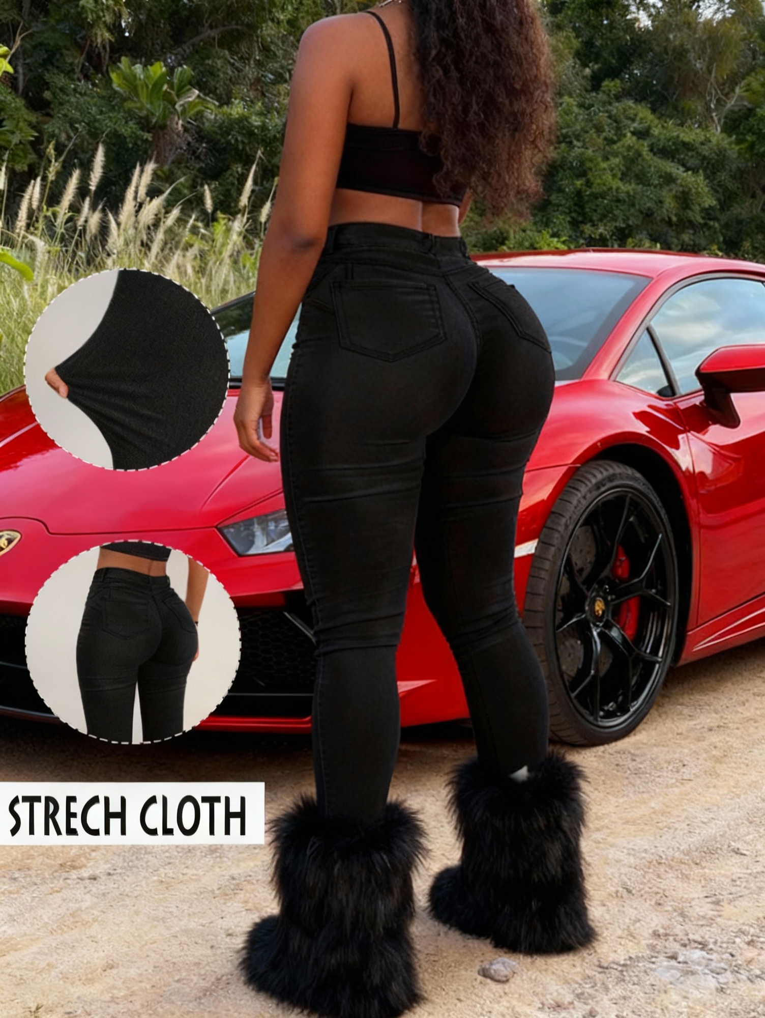 L035 Trendy And Versatile Street Fashion, Pure Black Skinny Stretch Ankle Pants, Women's Jeans.