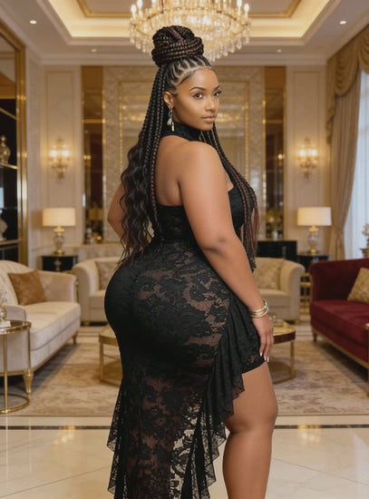 Ladies' Lace High-Elastic Sleeveless Patchwork Ruffled Mini Dress