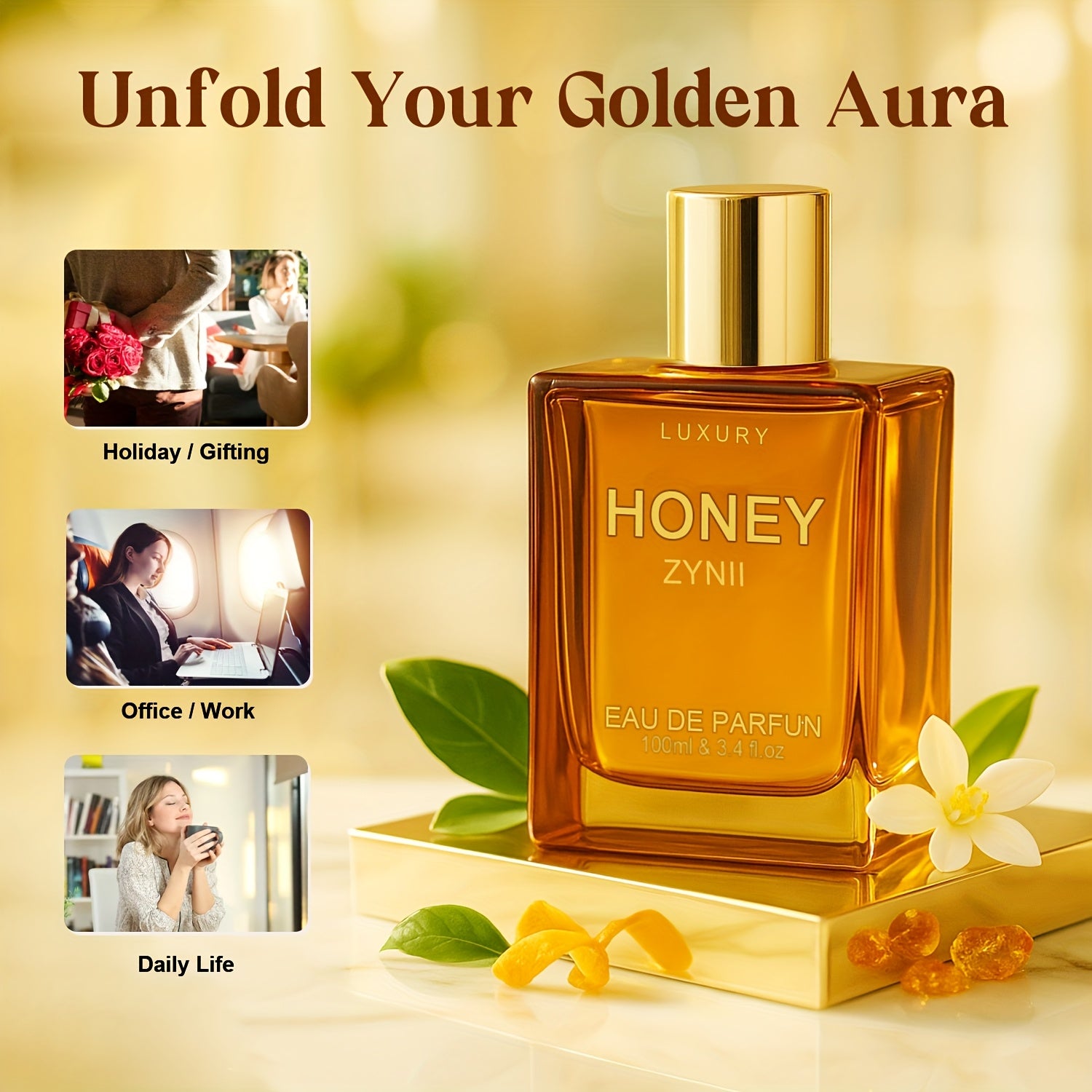 Luxury Honey Oud Perfume 3.4oz - Long-Lasting Sweet Honey & Oud Scent, Perfume Oil with, Elegant ' & ' Fragrance for Day & Night Use, -Light Beige Suitable