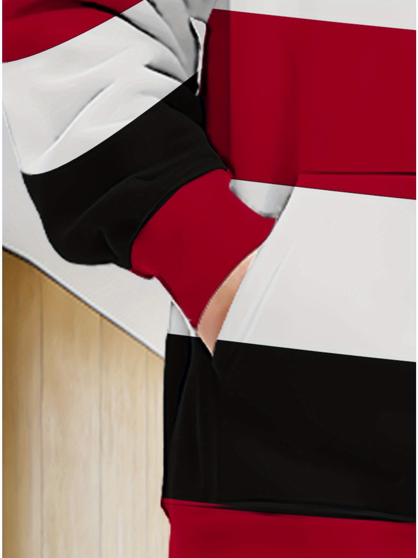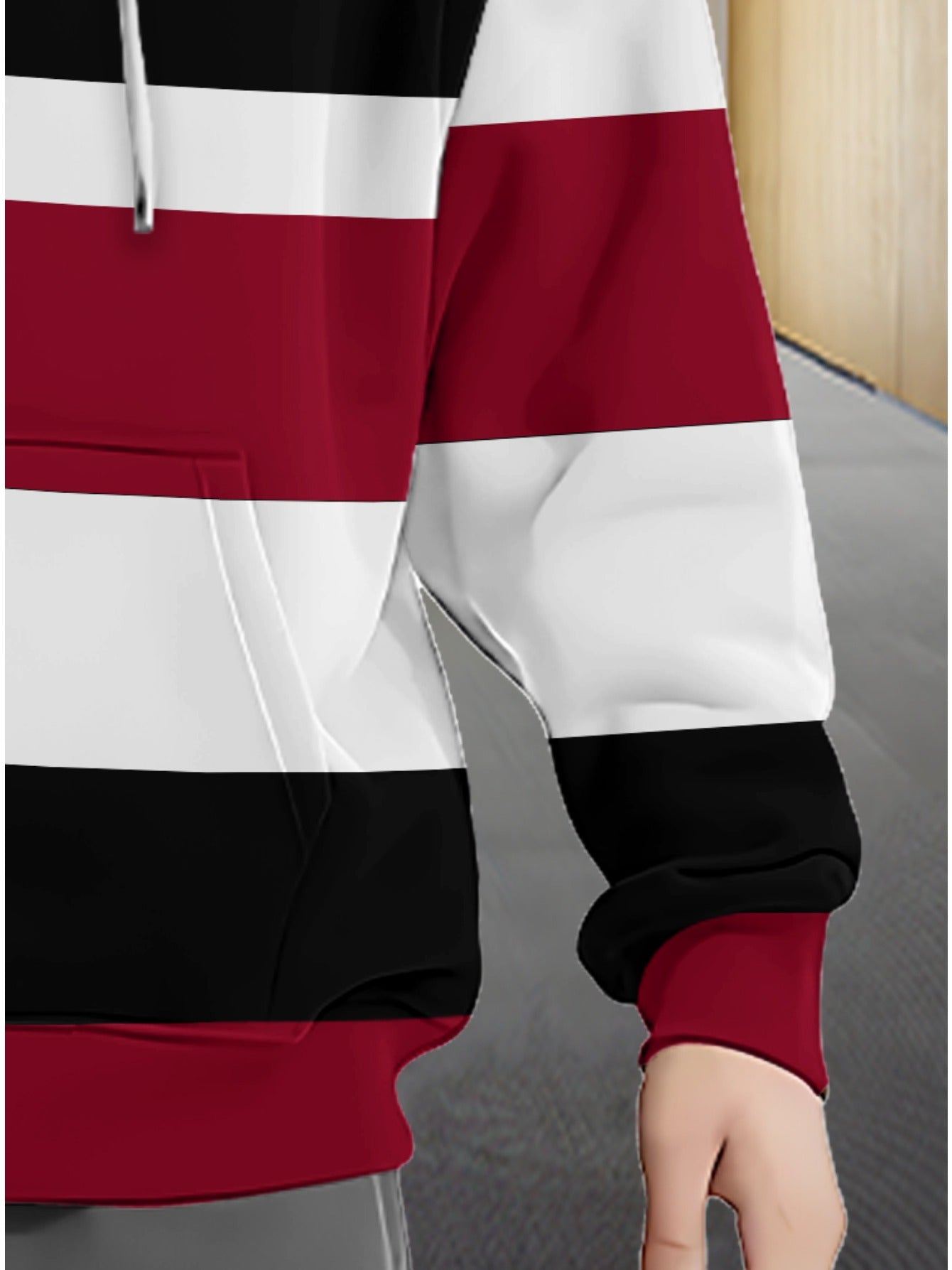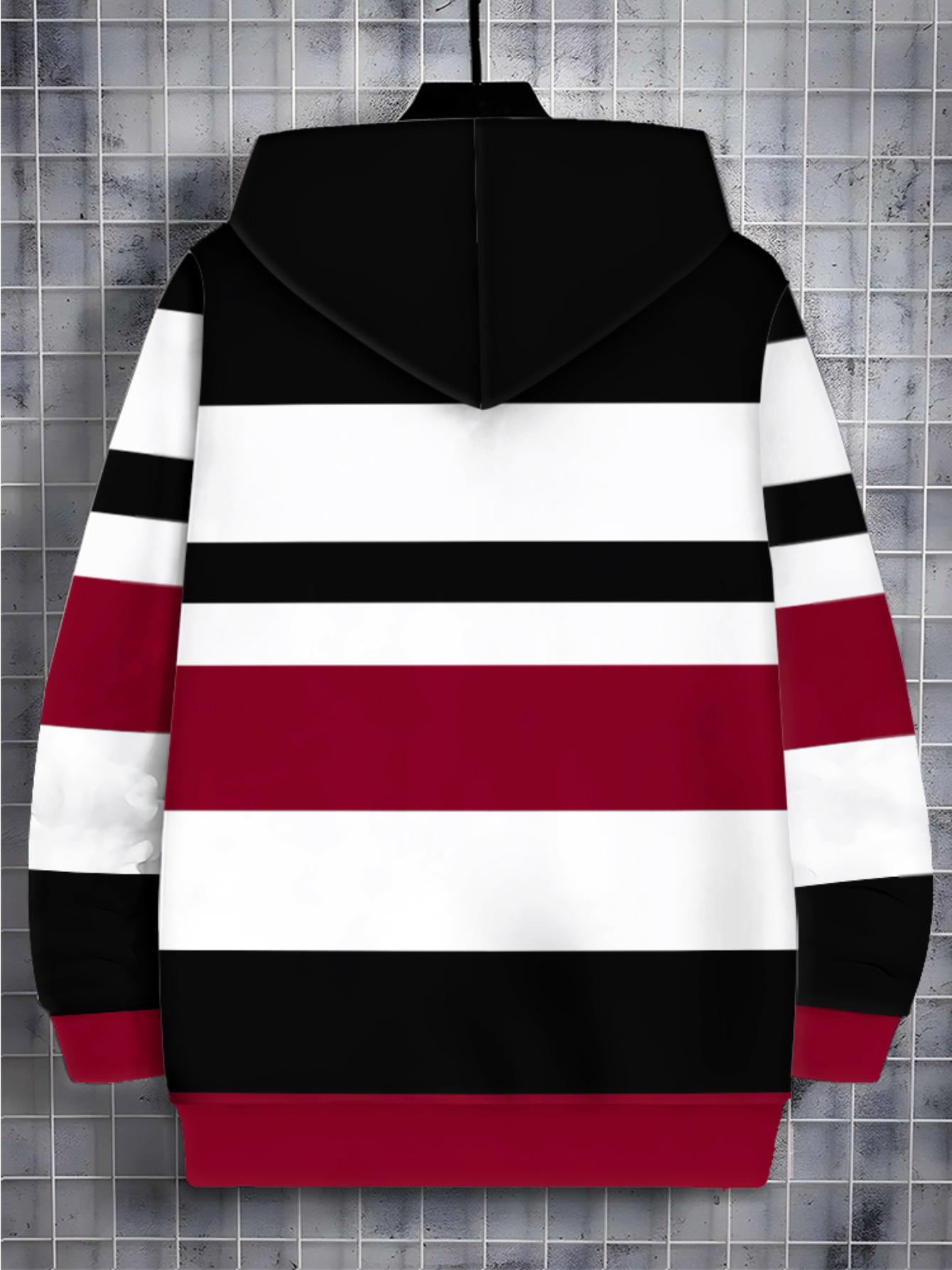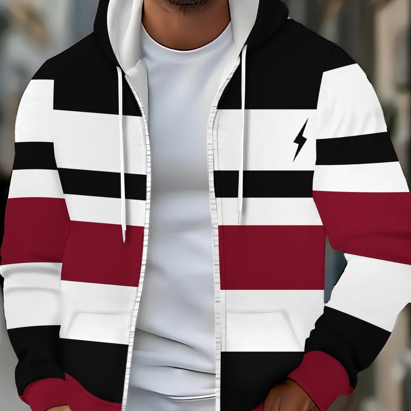 [Men's Lightweight Hoodie] Men's Lightweight Hoodie - Full-Zip Closure Hooded Sweatshirt, Black/White/Red Color Block Pullover for Fall/Winter, Casual Streetwear & Outdoor Activities, Everyday Comfort Fit Hooded Sweatshirt, S