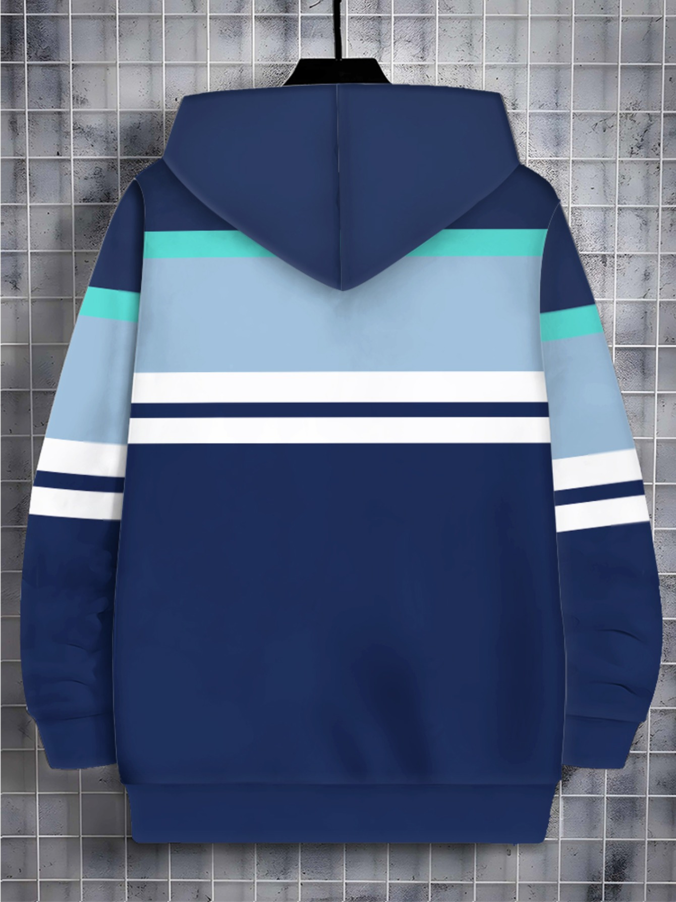 Men'S Lightweight Hoodie - Navy Blue & Aqua Stripes Zip-Up Pullover, Breathable Polyester Hooded Sweatshirt for Gym, Hiking, Casual Outfits - Athletic Casual Attire with Full-Zip Closure, Gym Hoodie, Outdoor Apparel, Sporty D