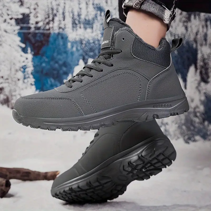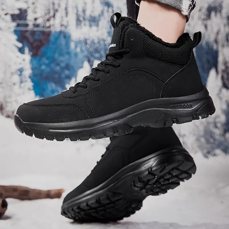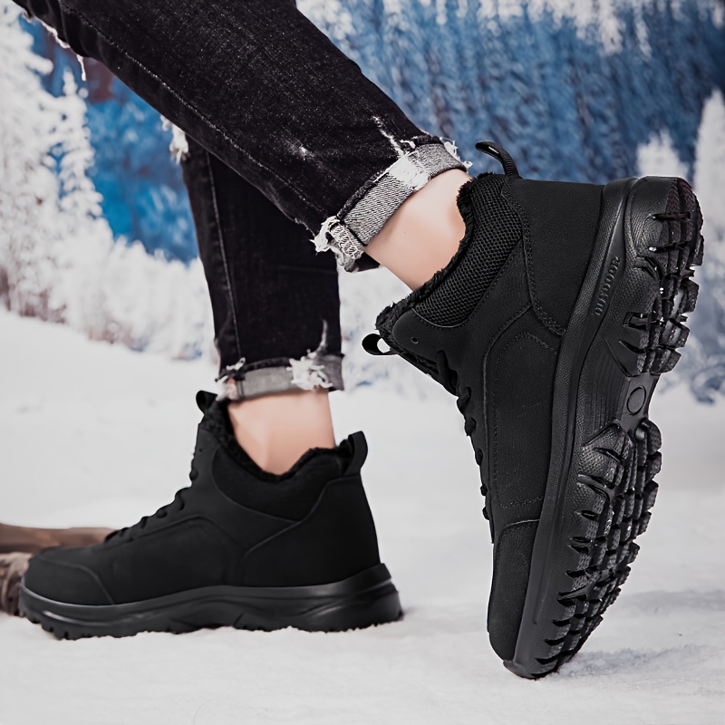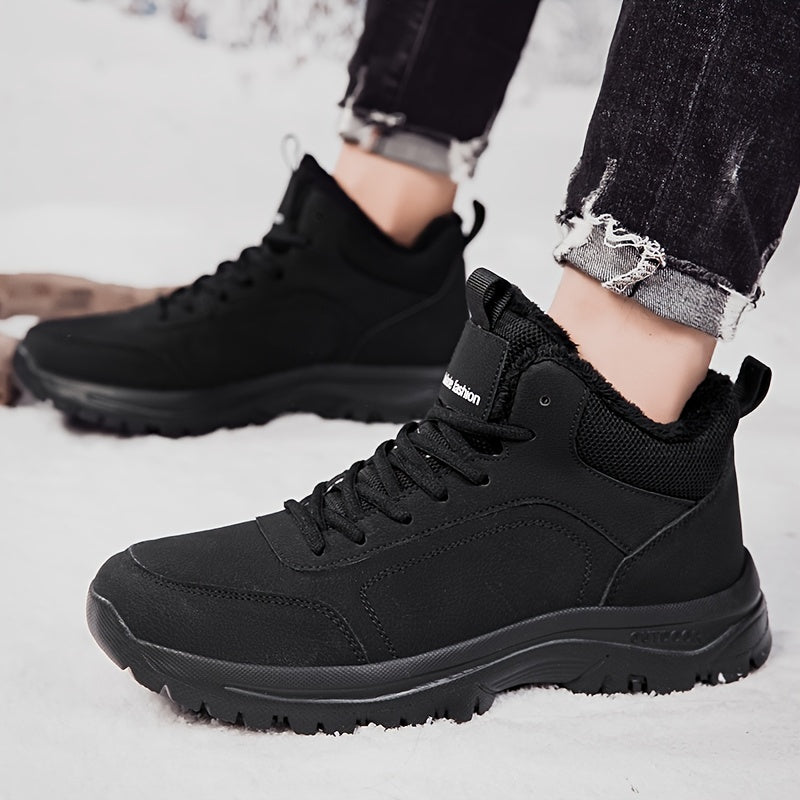 Men's Winter High-Top Sneakers - Warm & Lightweight Thermal Shoes with Fuzzy Collar, Non-Slip MD Sole & PU Upper, Lace-Up Ankle for Outdoor, Travel, Walking - Black - Ideal for Cold Weather & Snow - Casual Winter Boots for Me