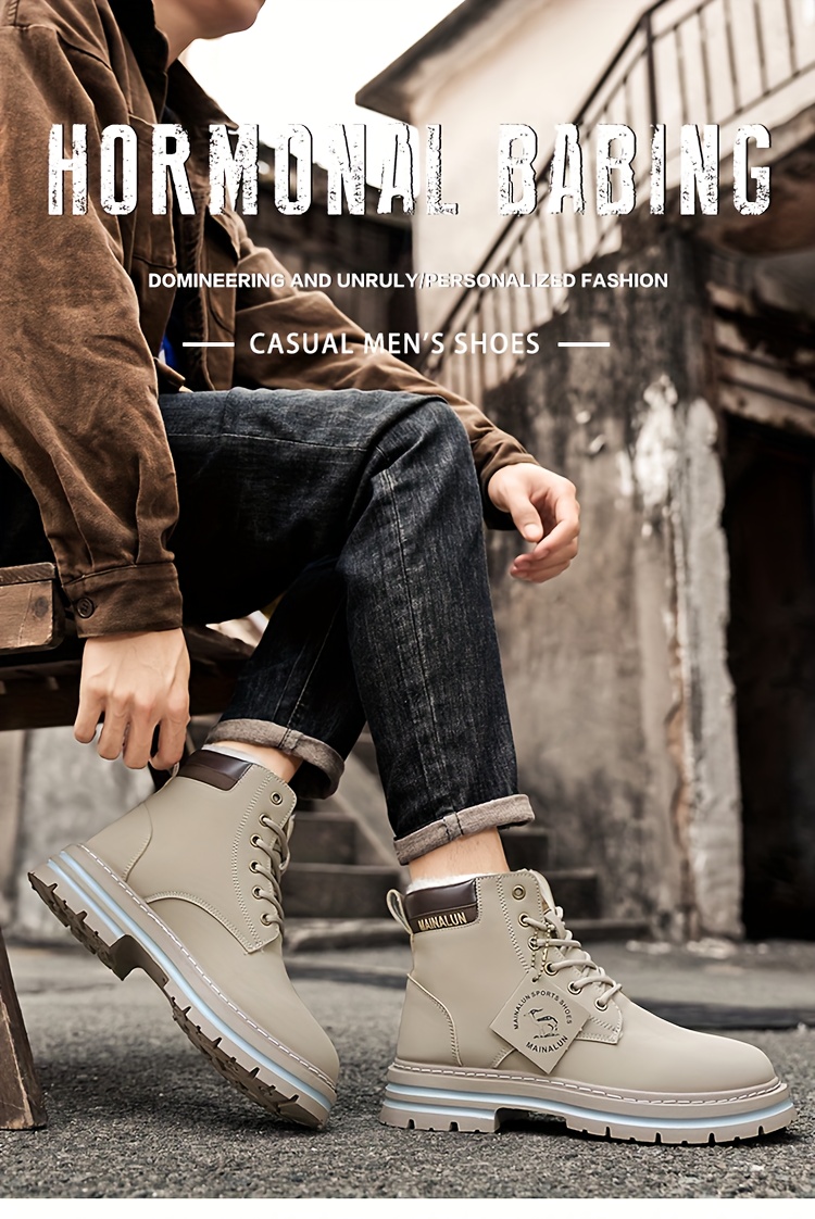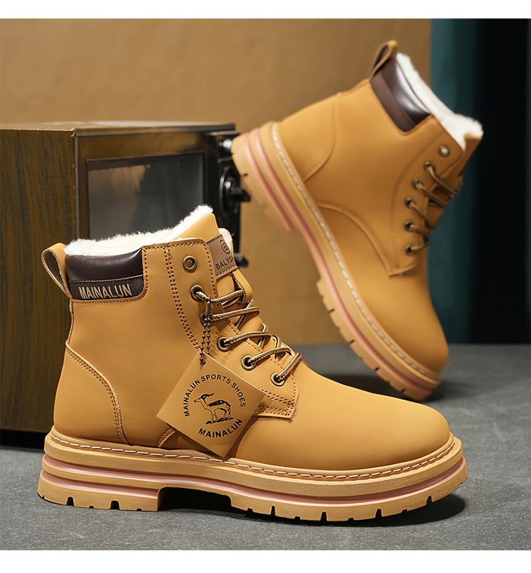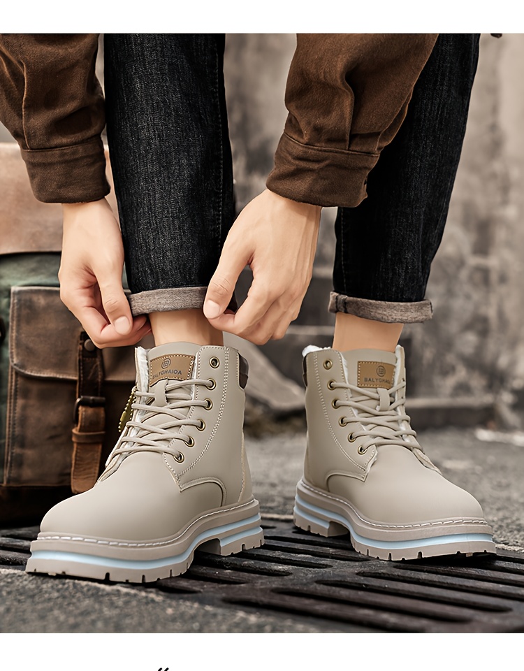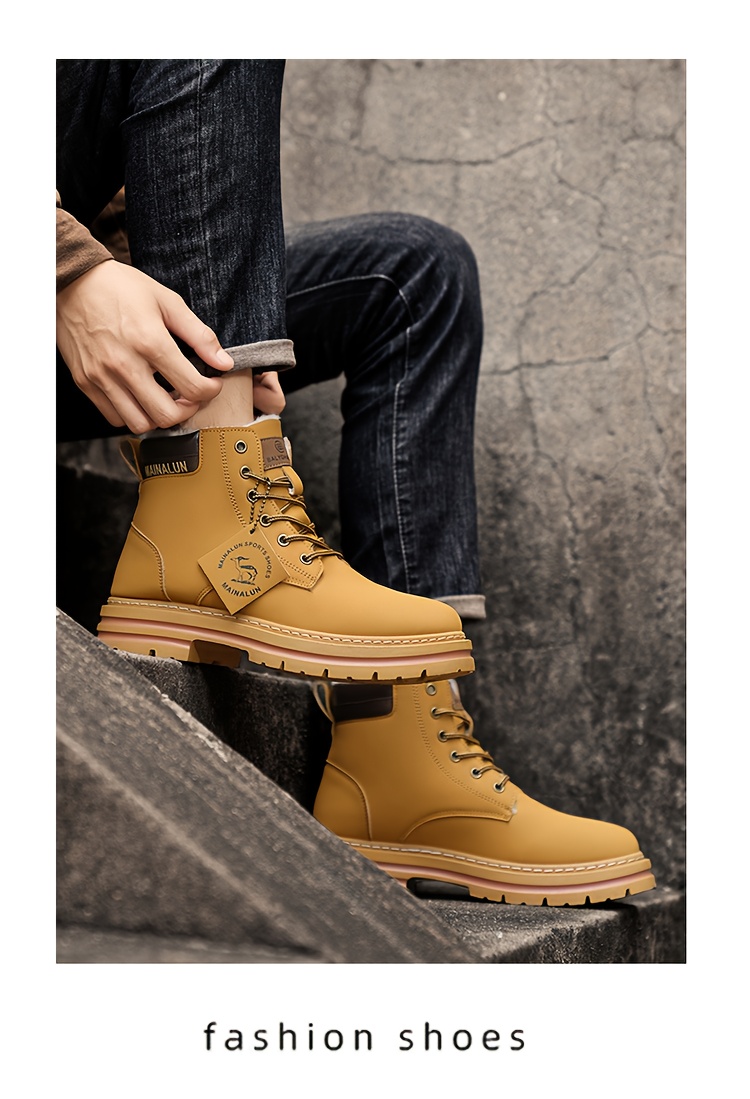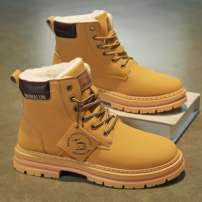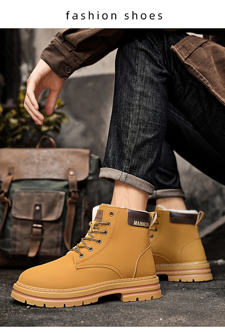 Men'S Winter High-Top Thermal Boots with Thick PVC Sole & Lace-Up Closure - Heavy-Duty All-Terrain Traction, Warm & Arch Support, Round Toe Design For Snow, Ice, Mud - Casual Outdoor Hiking Boots (brown) - Ideal For Cold Weat