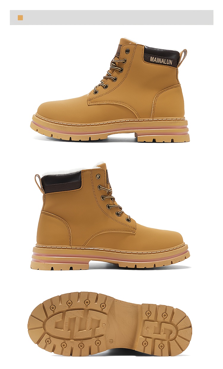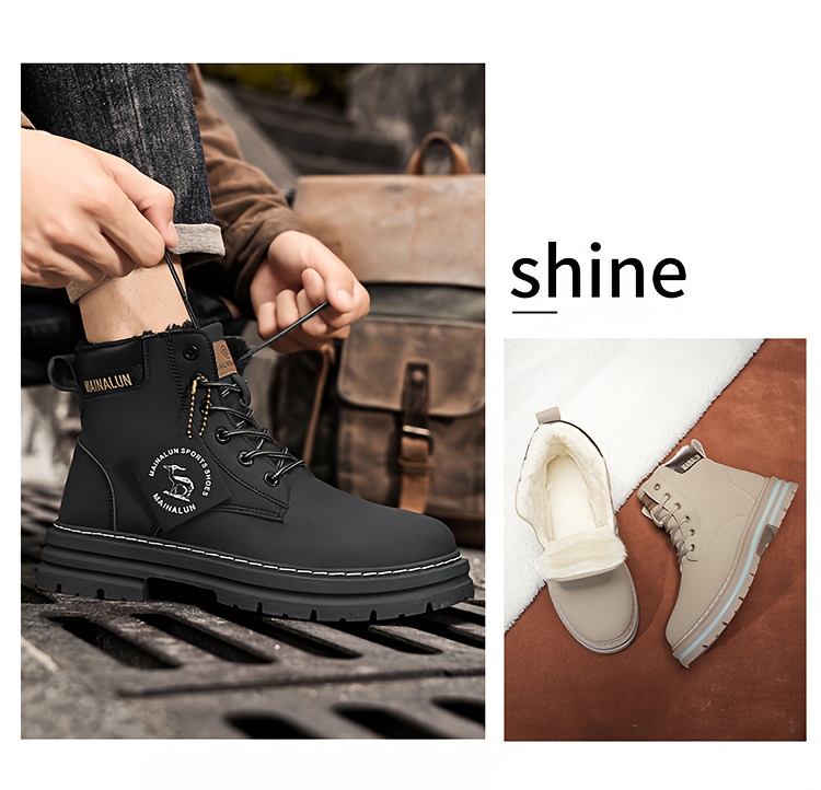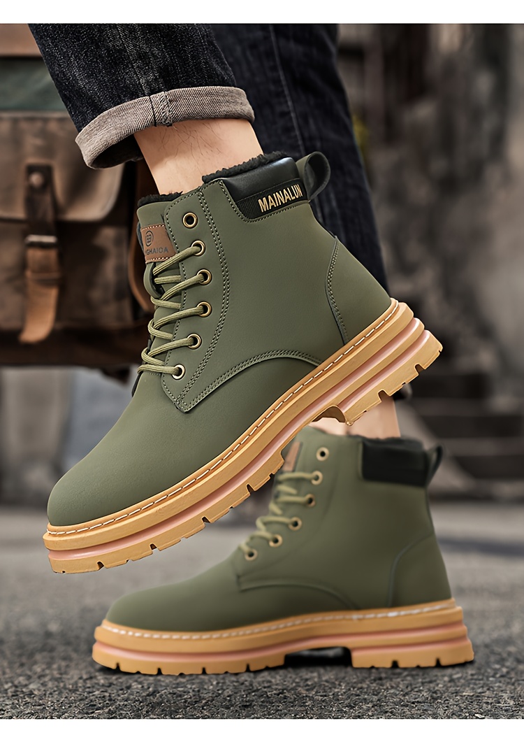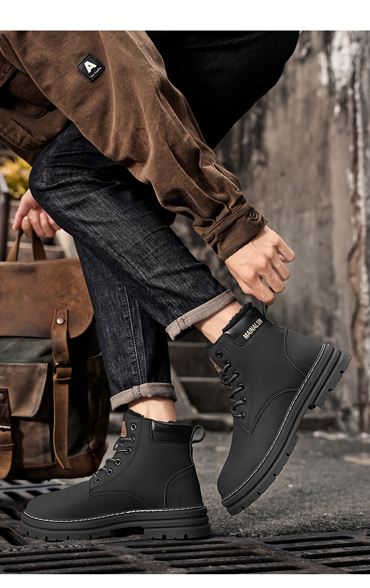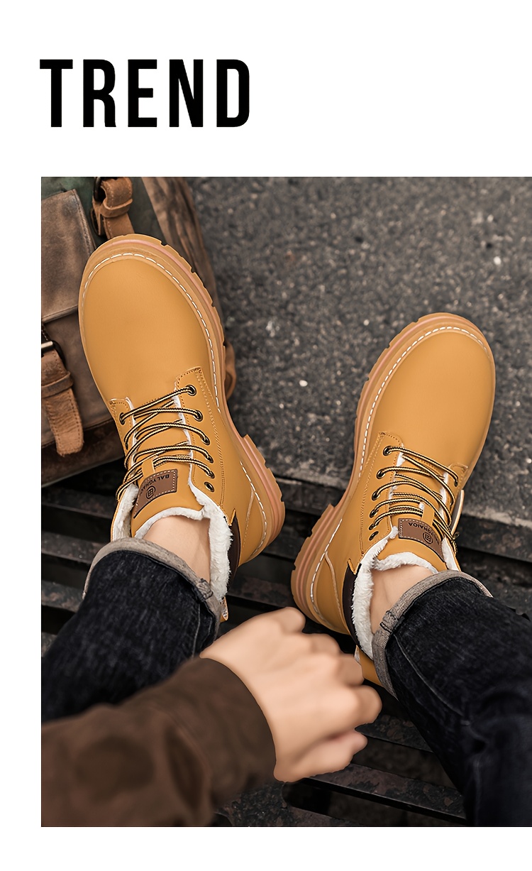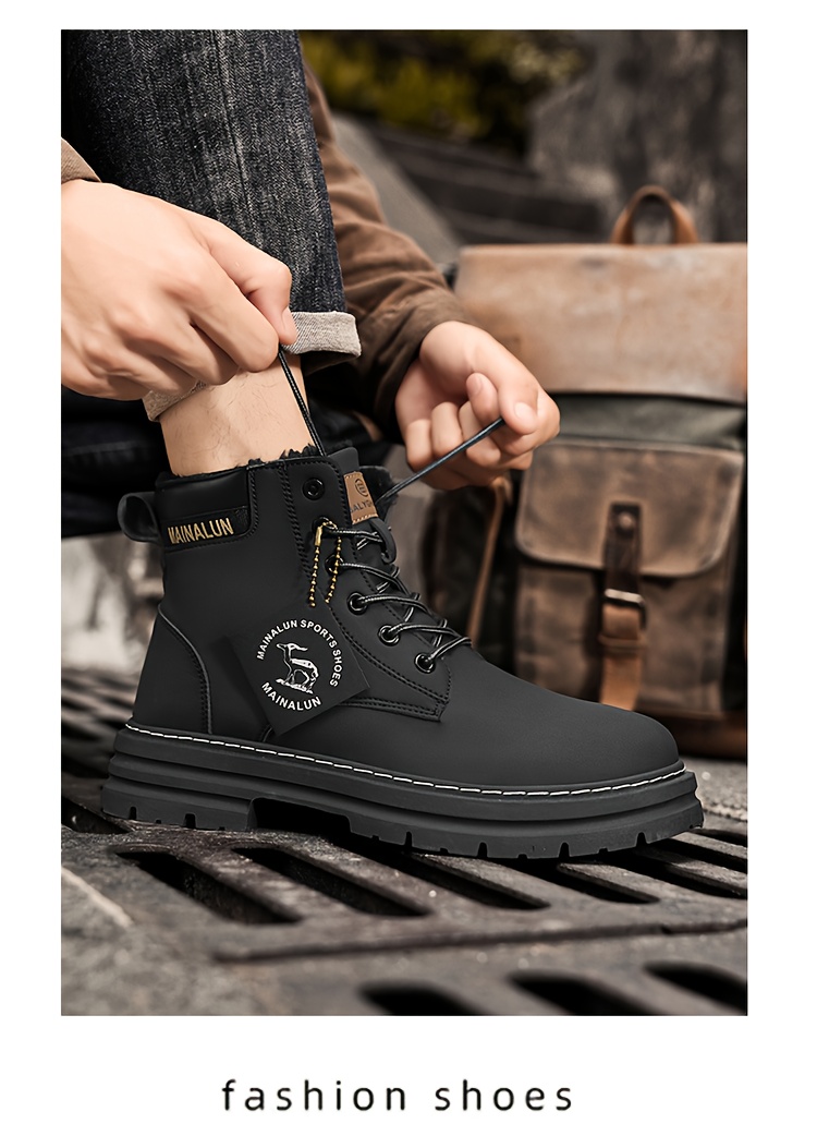 Men'S Winter High-Top Thermal Boots with Thick PVC Sole & Lace-Up Closure - Heavy-Duty All-Terrain Traction, Warm & Arch Support, Round Toe Design For Snow, Ice, Mud - Casual Outdoor Hiking Boots (brown) - Ideal For Cold Weat