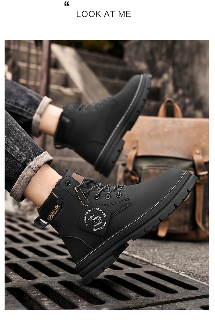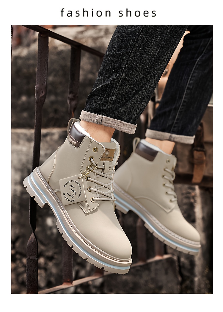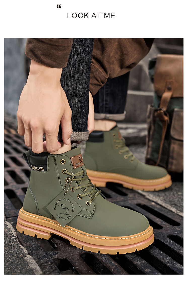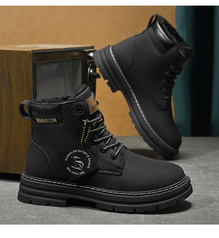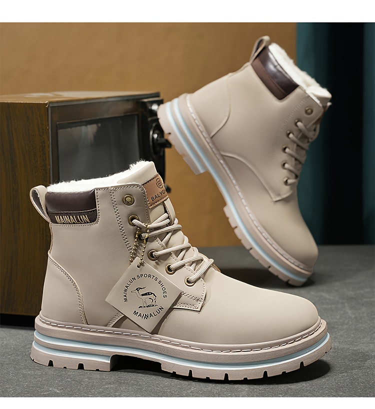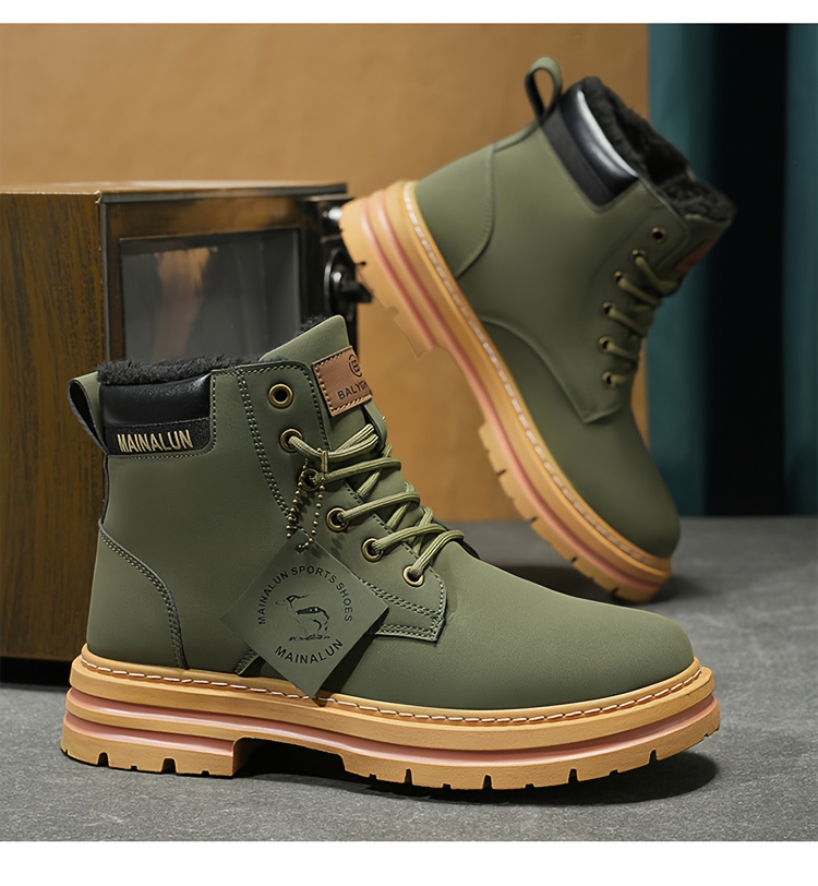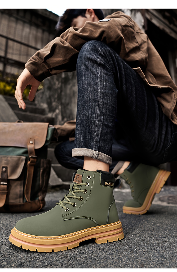Men'S Winter High-Top Thermal Boots with Thick PVC Sole & Lace-Up Closure - Heavy-Duty All-Terrain Traction, Warm & Arch Support, Round Toe Design For Snow, Ice, Mud - Casual Outdoor Hiking Boots (brown) - Ideal For Cold Weat