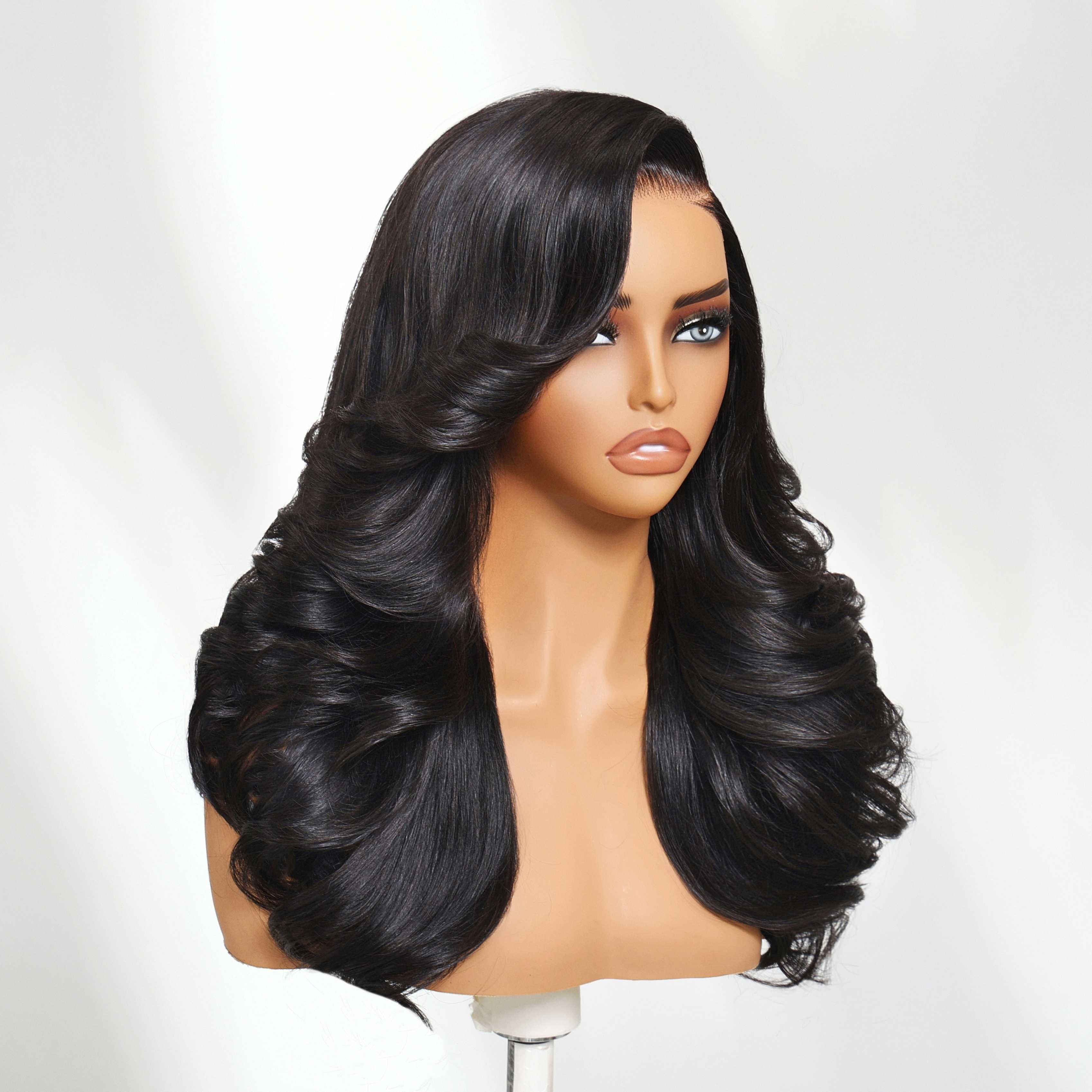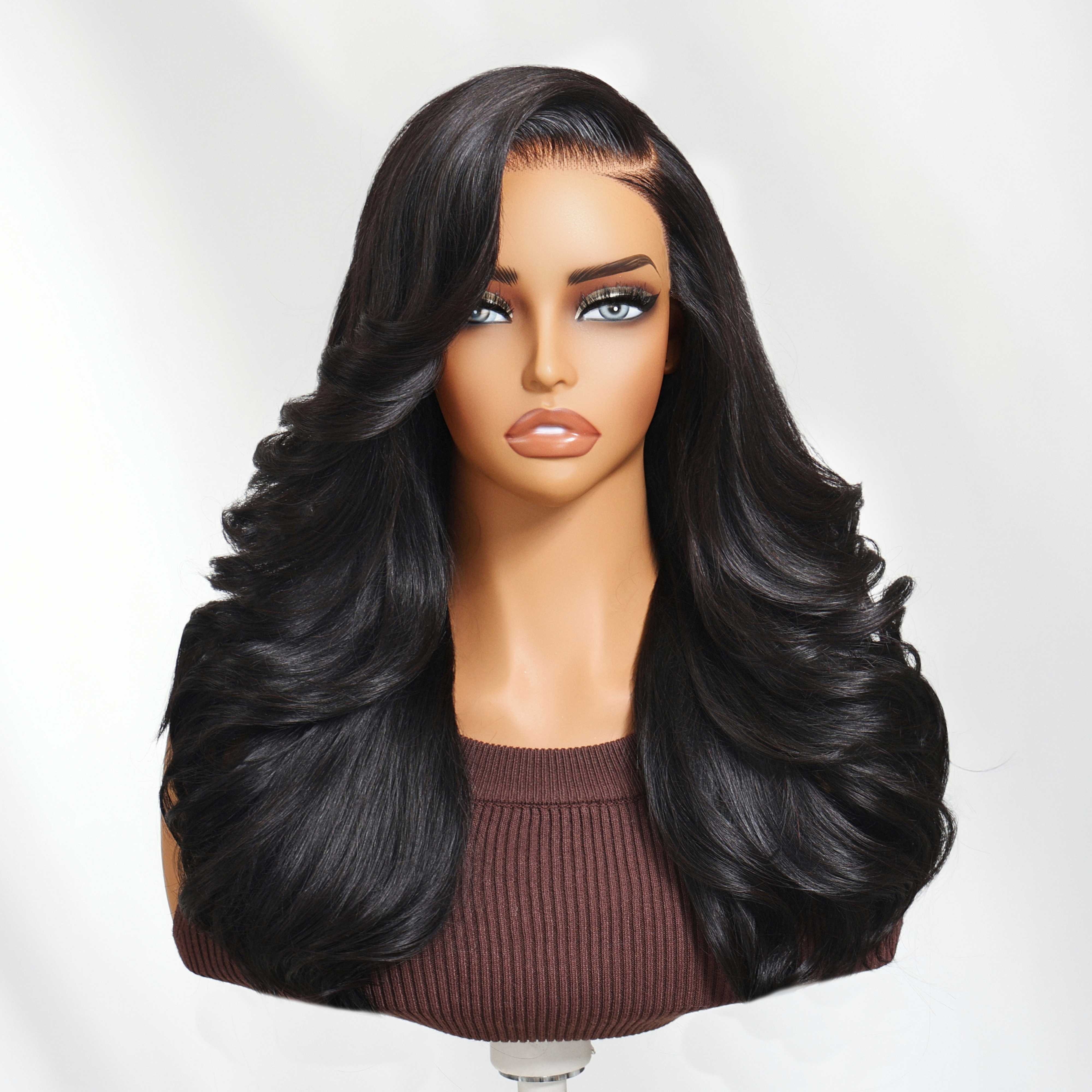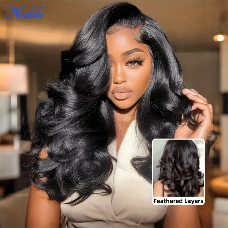 Nadula 7x5 Lace No Slip Wig Feathered Layer Side Part 200% Density Human Hair Glueless Wig with Invisible Drawstring Put On And Go Pre-Cut Lace Pre-bleached Knots Pre-Plucked Hairline