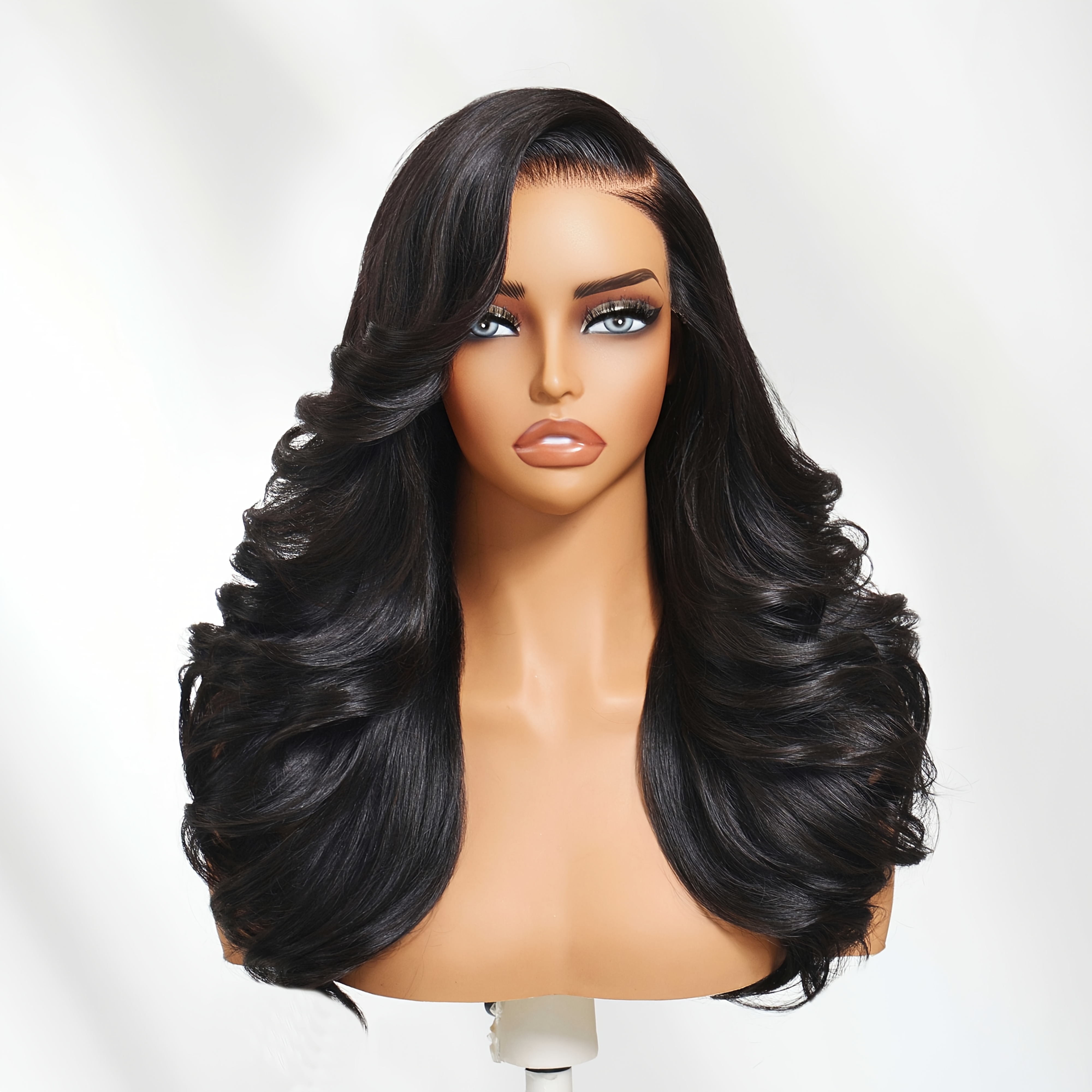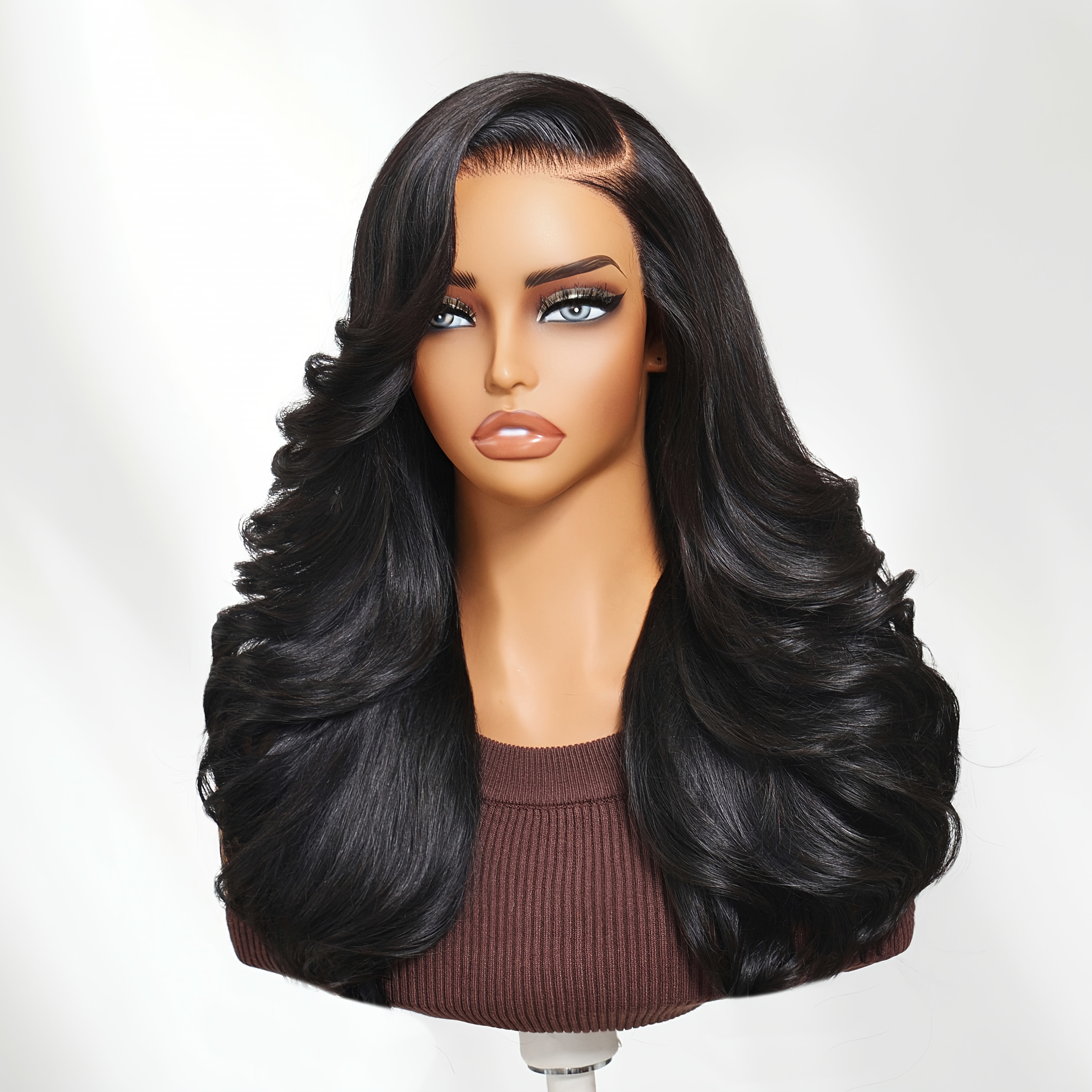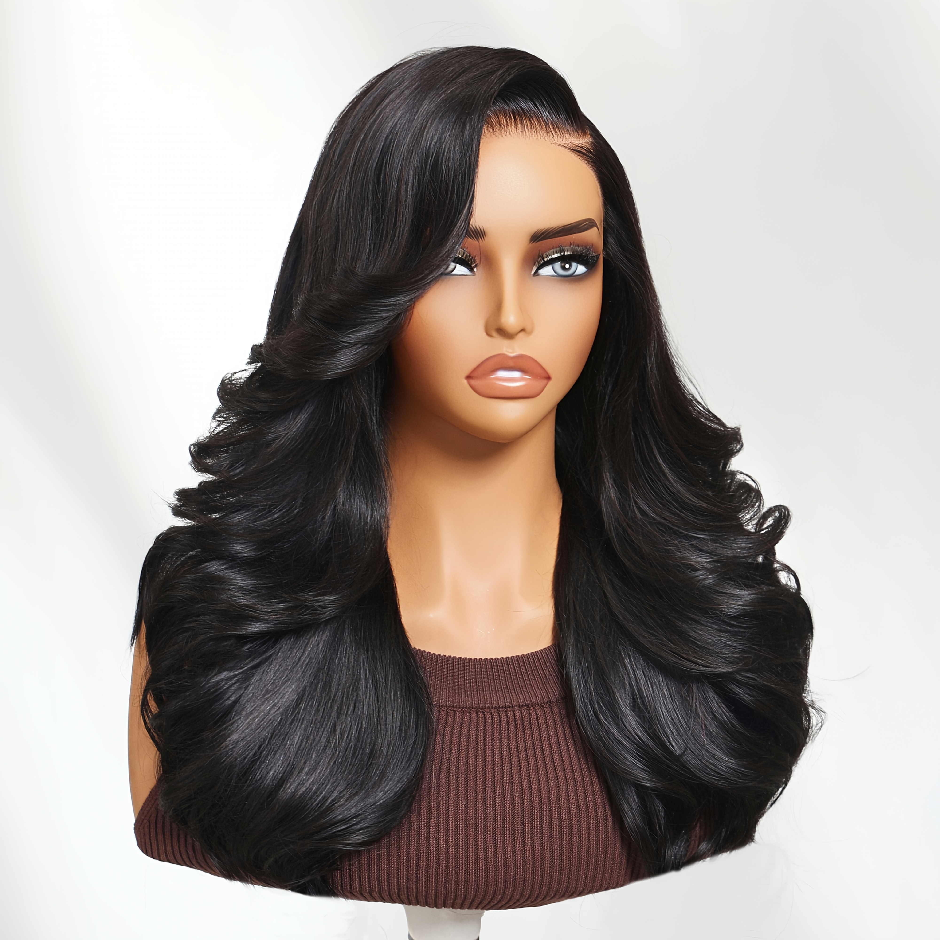 Nadula 7x5 Lace No Slip Wig Feathered Layer Side Part 200% Density Human Hair Glueless Wig with Invisible Drawstring Put On And Go Pre-Cut Lace Pre-bleached Knots Pre-Plucked Hairline