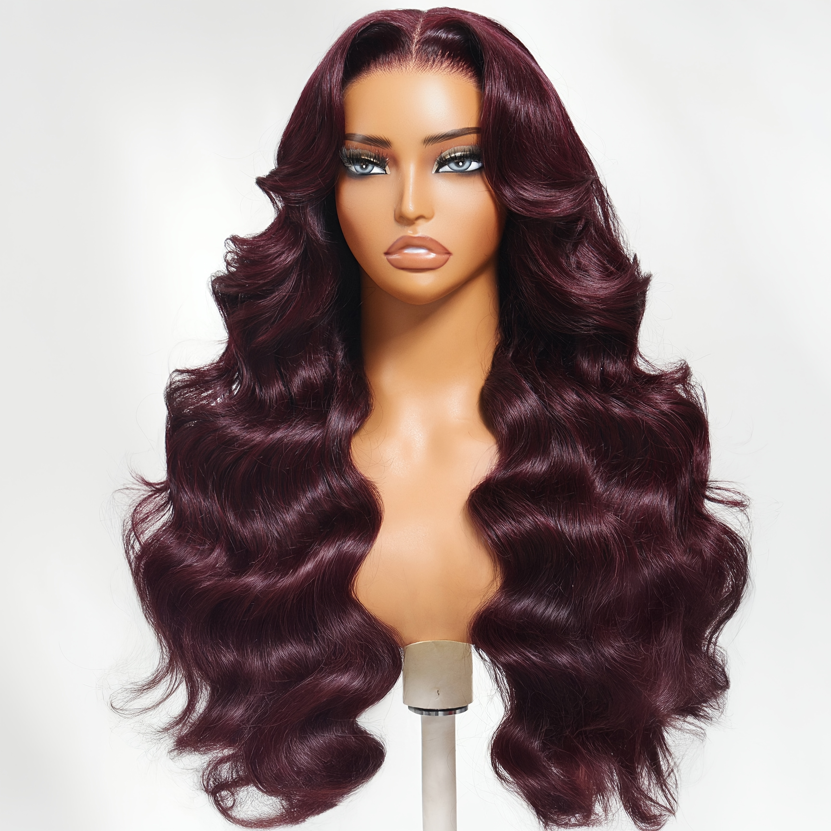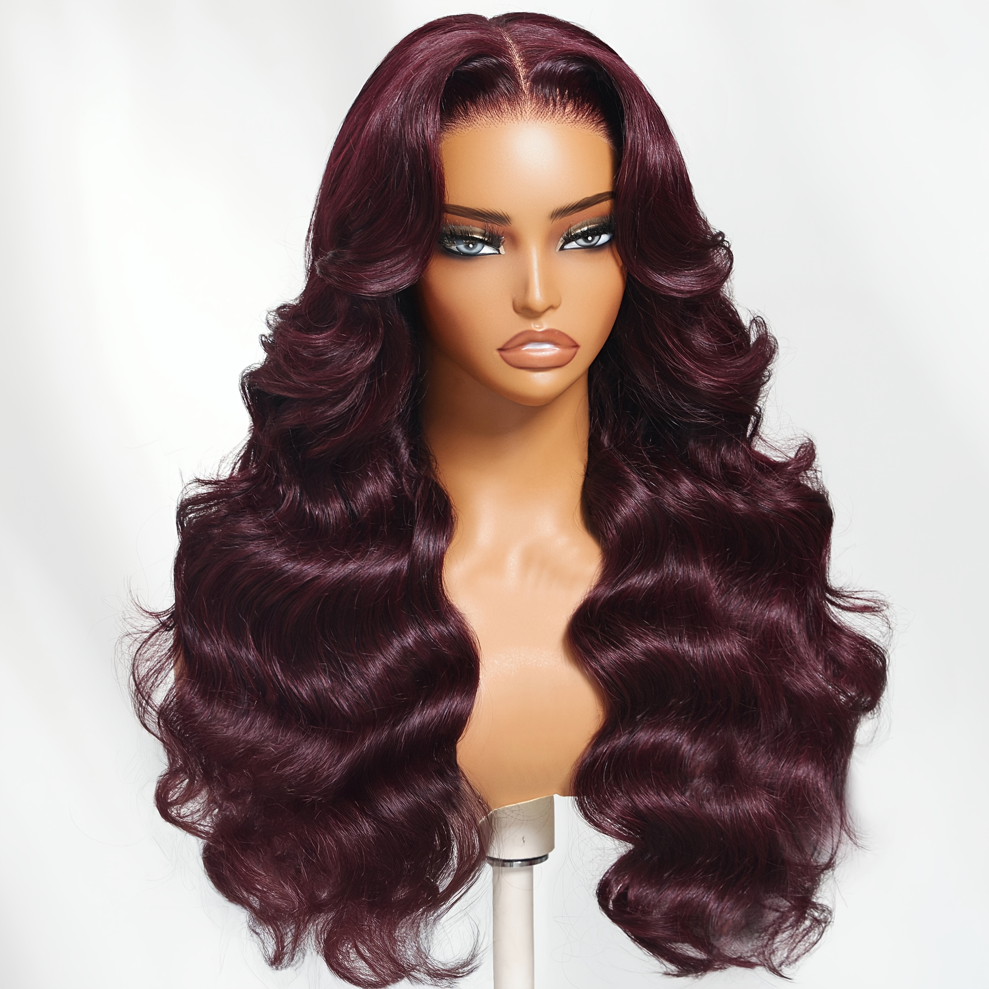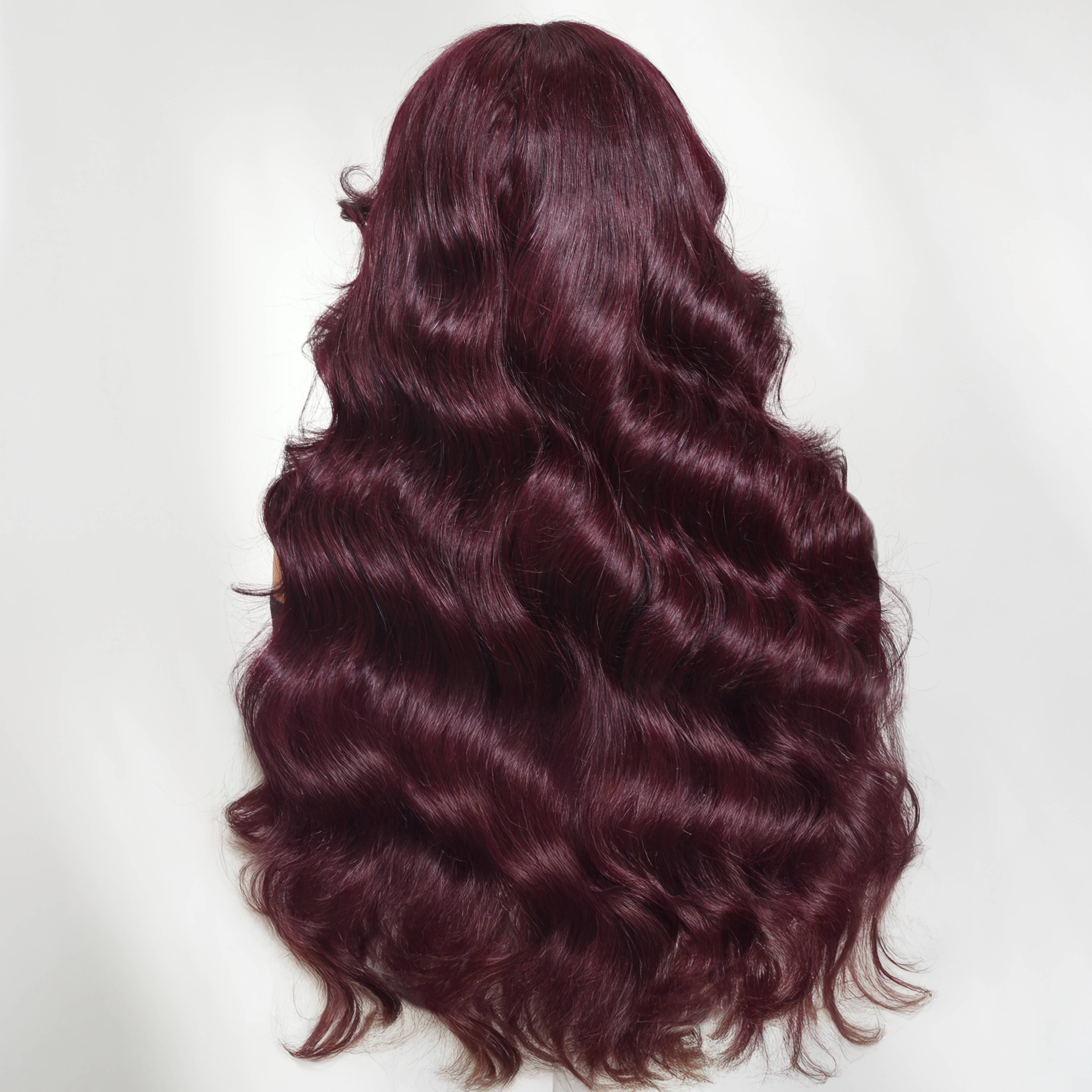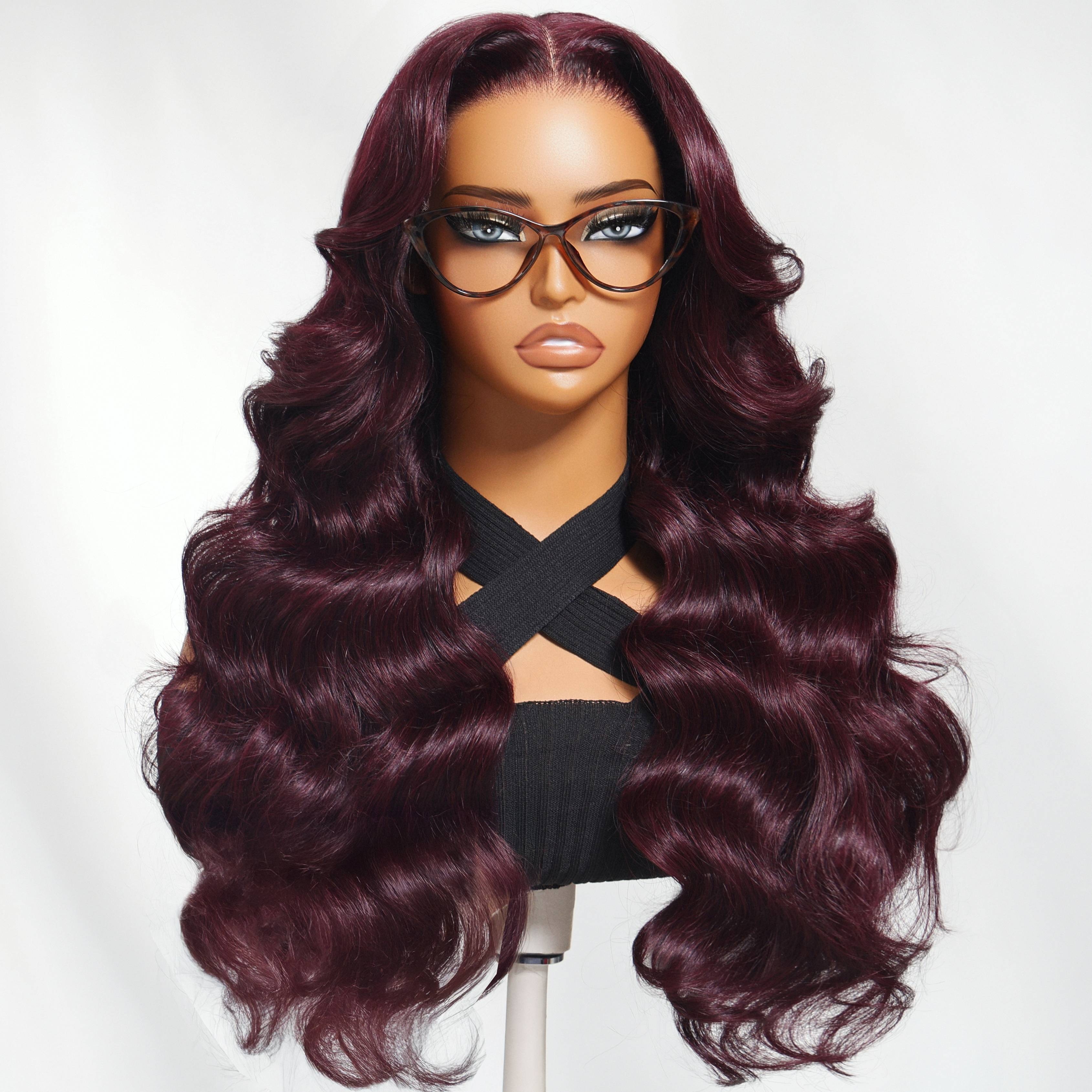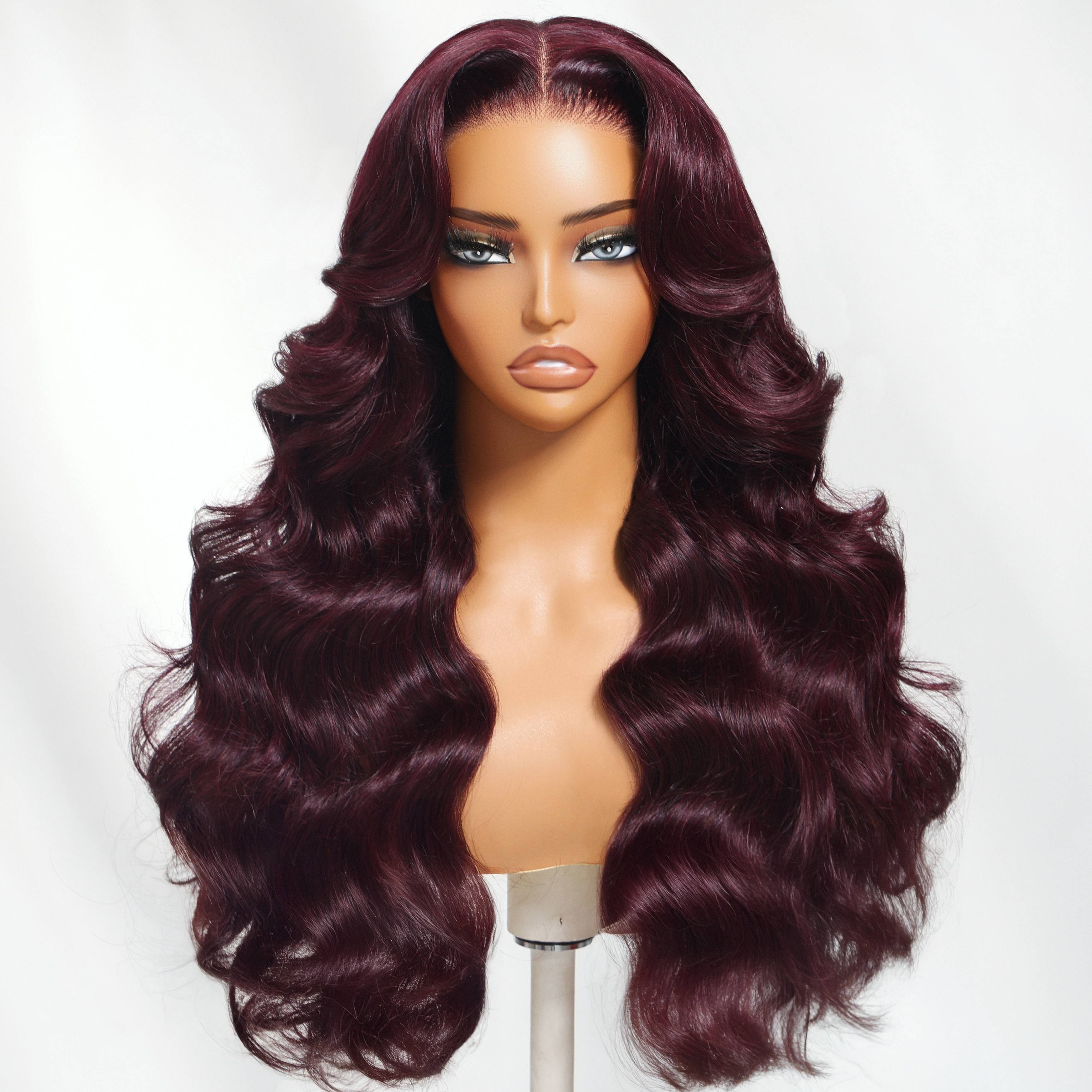 Nadula Lace Frontal Burgundy Plum Layer Cut Wavy Wig - Pre-Cut, Pre-Bleached, Pre-Plucked with Invisible Knots, Density, Loose Waves, Real Human Hair, Unisex Adult