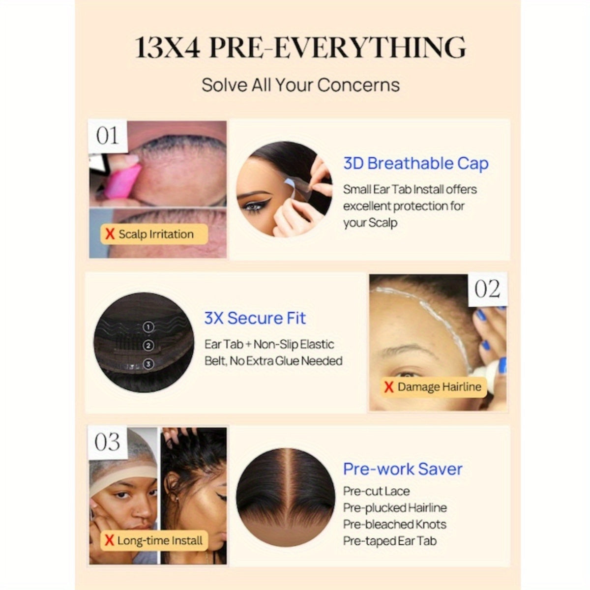 3. Reasons to Select the Nadula 13x4 Pre-Everything Wig – Enhance your appearance with this HD straight lace front wig. The breathable dome cap allows for quick and comfortable installation. Featuring clean, undetectable knots and an expanded lace area, you will experience limitless styling options—simply wear it and you're ready. No glue, no gel, no fuss.