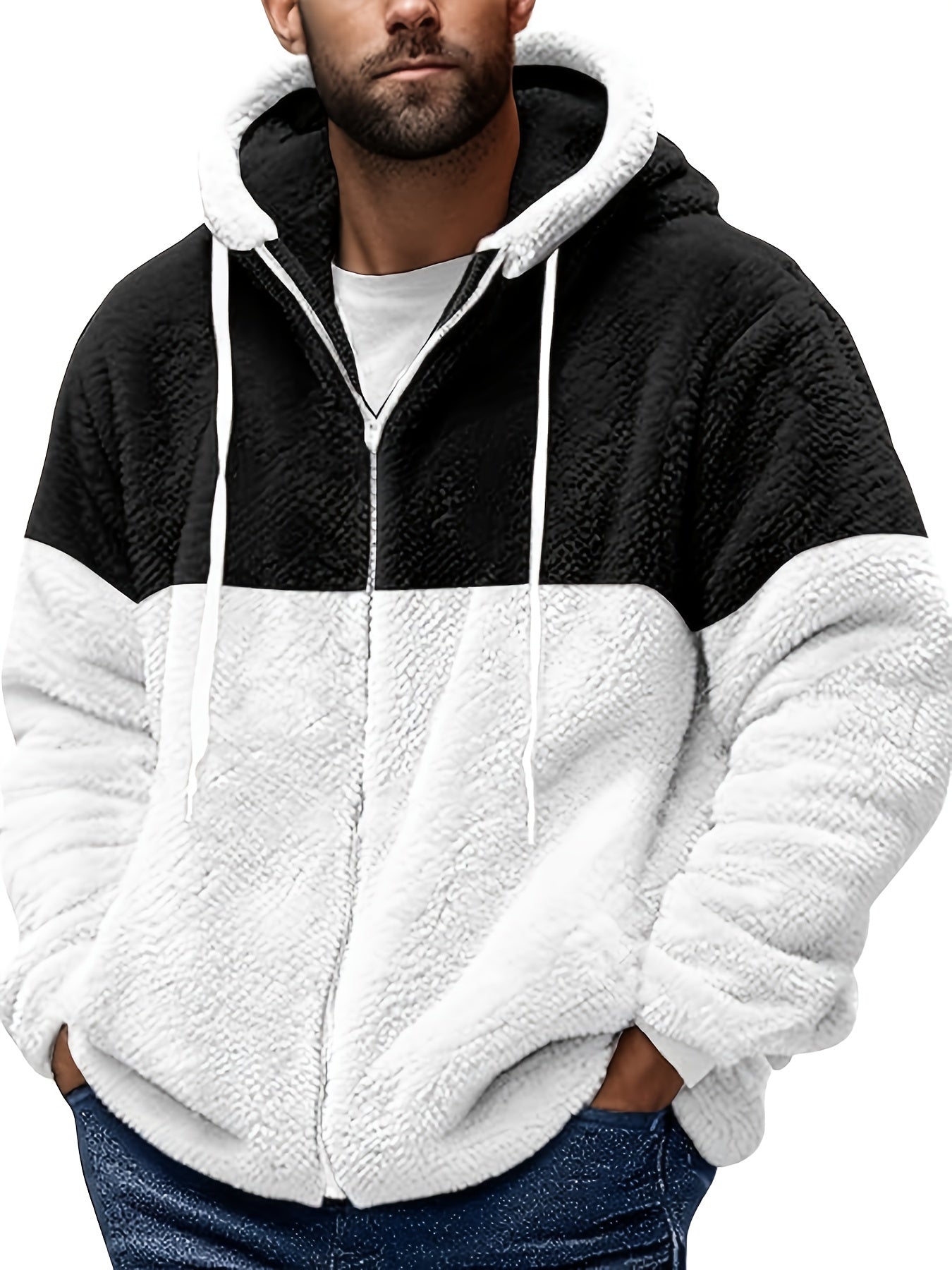 [Plus Size Fleece Hoodie] Men's Plus Size Fleece-Lined Hoodie - Casual Zip-Up Jacket with Sherpa Lining, Warm & Lightweight for Winter, PLUS SIZE