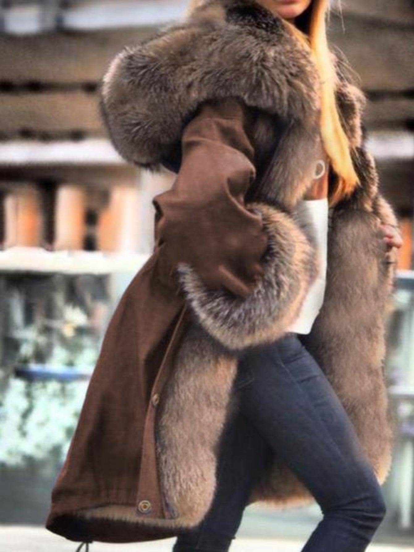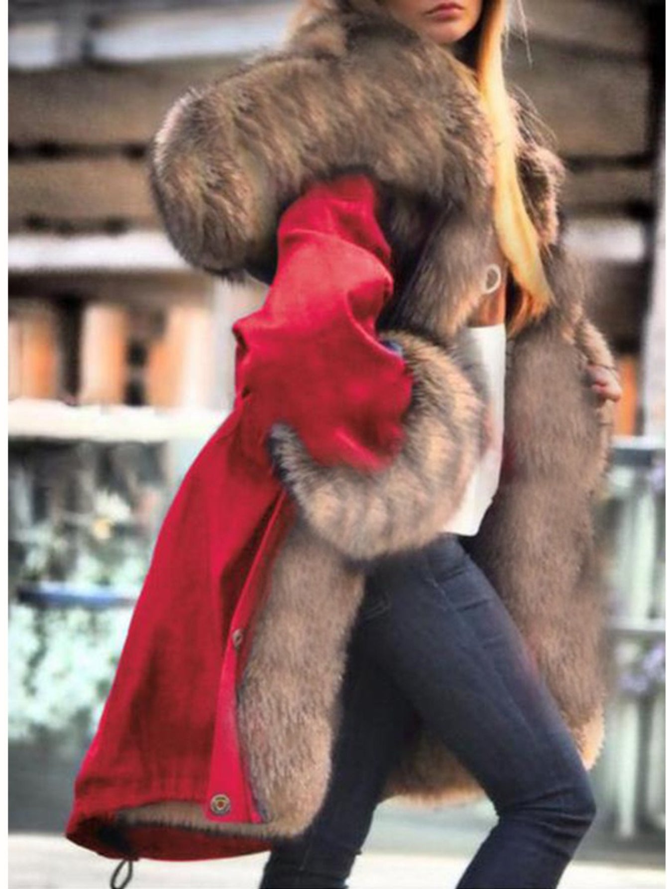 Plus Size, Large Size Women's Jacket - Fashion Casual Personality Elegant Avant-garde Vintage Avant-garde Autumn and Winter Temperament Commuter Street Trend Long Hair Collar Hooded Jacket