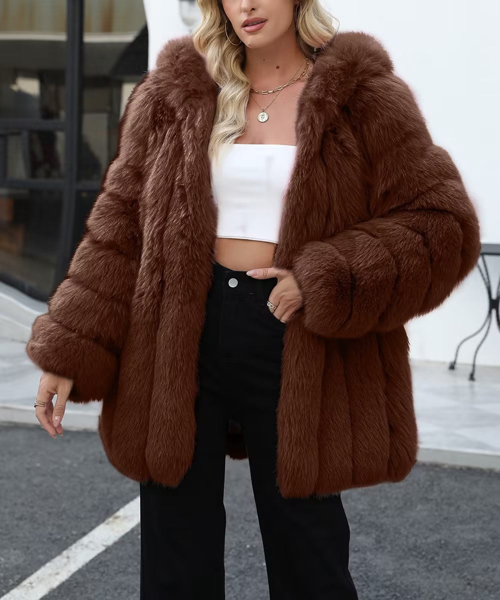 Plus Size, Plus-size Women's coat new European and American autumn winter faux fur warm fluffy plus-size Women's coat faux fox fur jacket fur winter wear plus-size fashion outwear