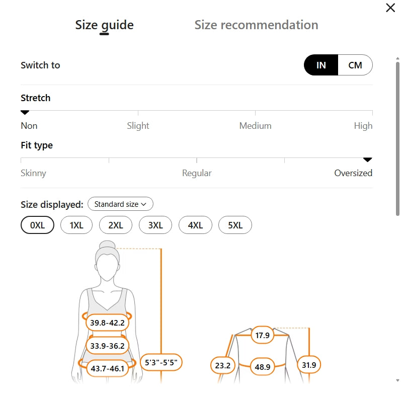 Suitable types: Oversized