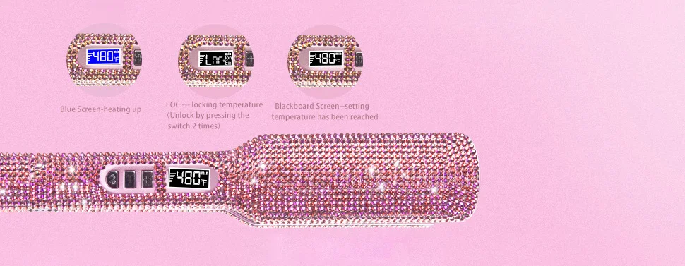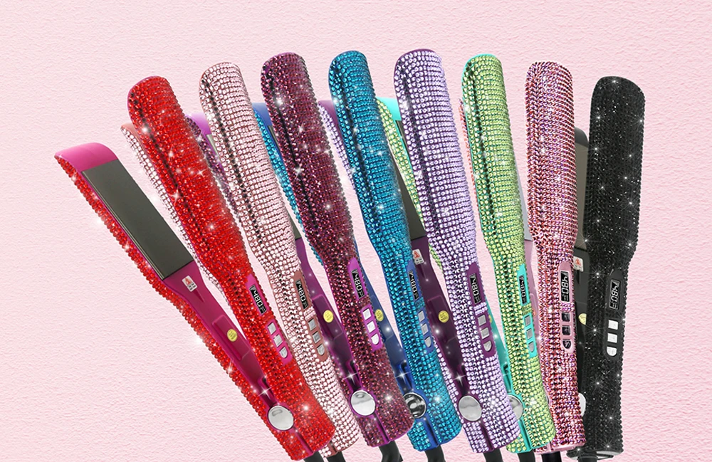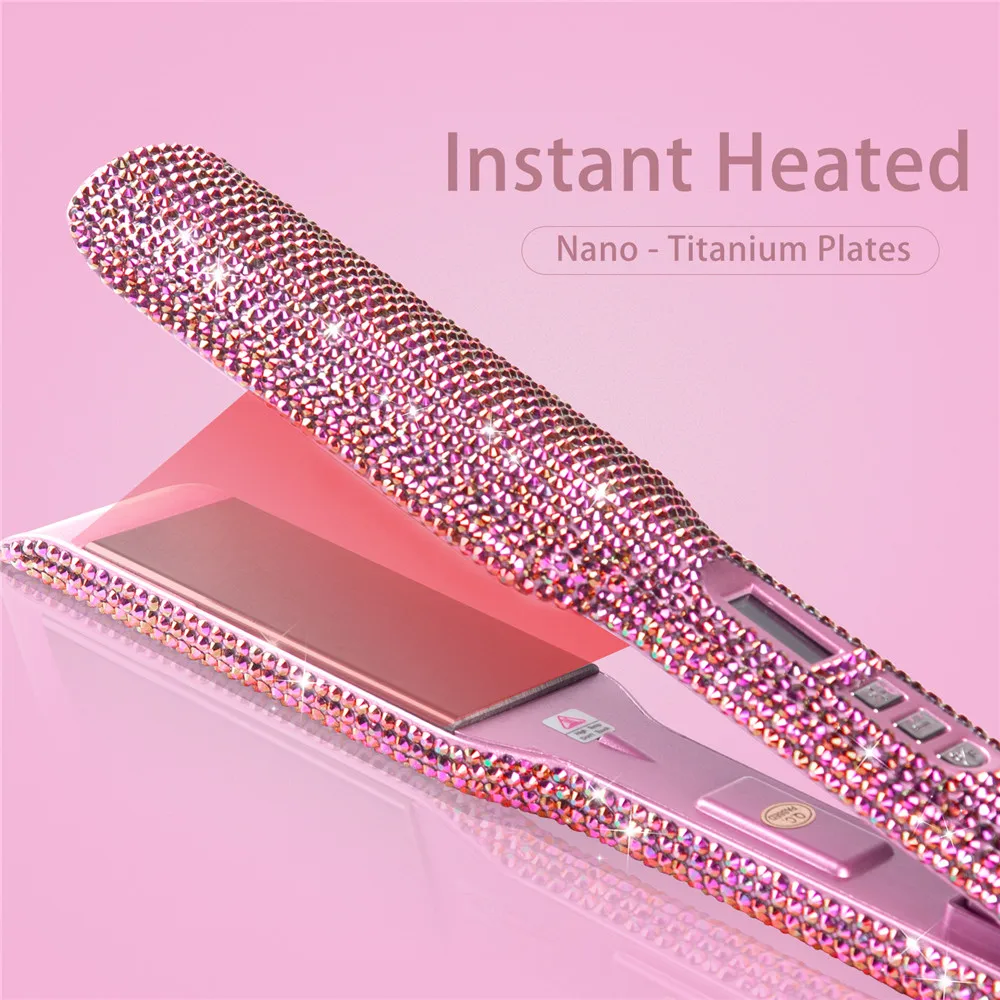 Rhinestone Flat Iron For a Perm Titanium Straightening Irons LCD Display Floating 2 Inches Wide Plate Hair Straightener Curler