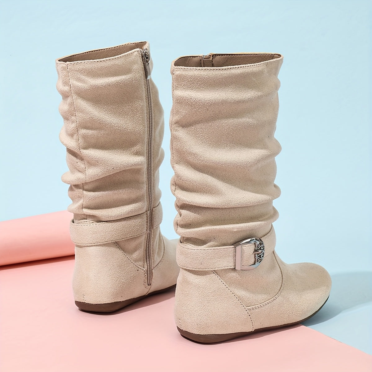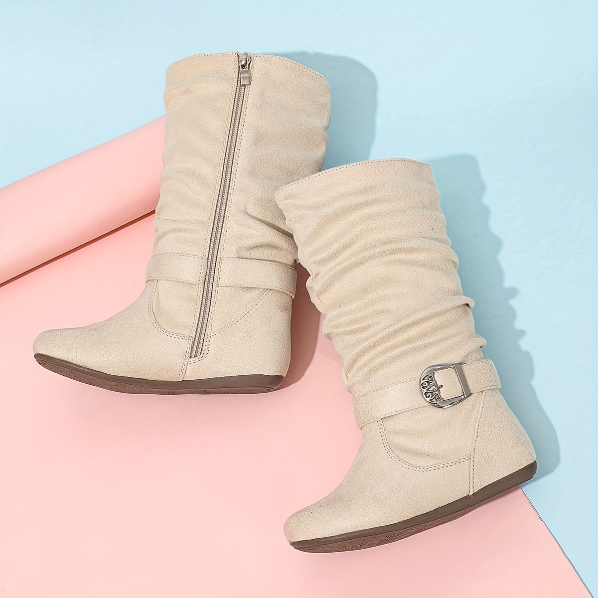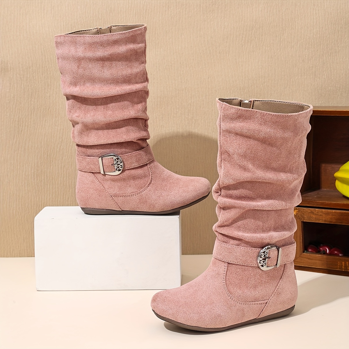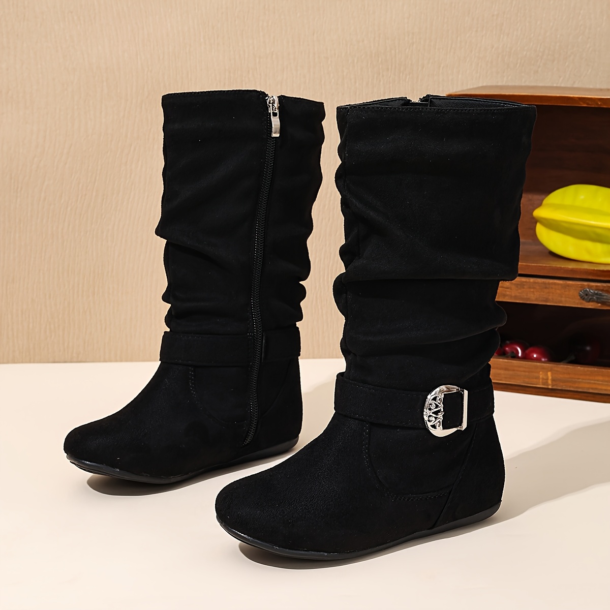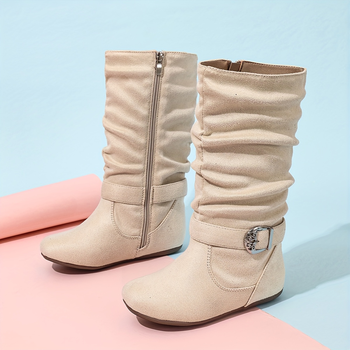 Ruffled Boot Cuffs with Decorative Buckle & Tassel, Flatter Round Toe Zipper Closure, Comfortable Fabric Lining, Casual Everyday Schoolgirl Boots for Girls - All-Season Versatile Mid-Calf (14 & Under)