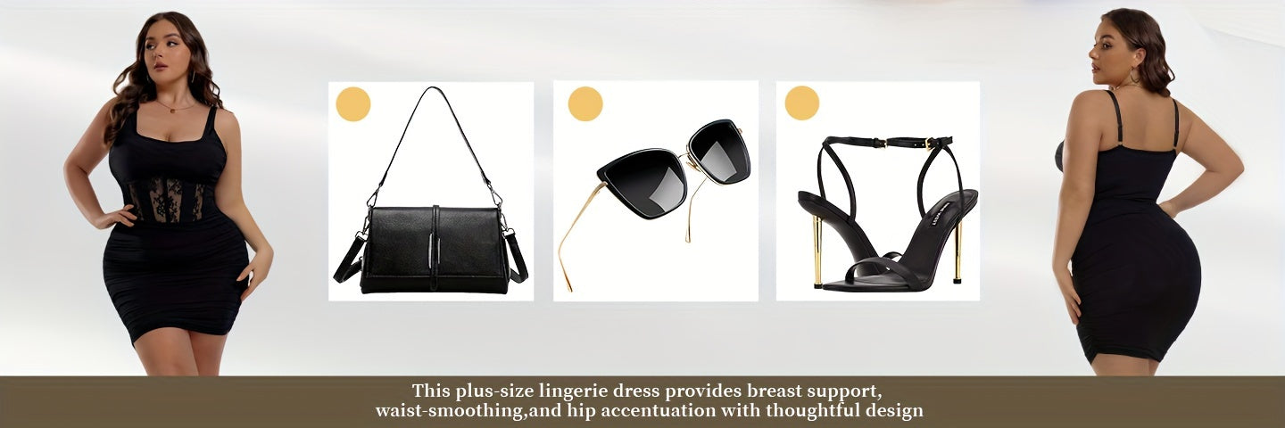 Summer Mini Dress with Ruched Bodycon Plus Size Elegant Black Mini Dress with Floral Lace Detail - Sexy Ruched Bodycon Style, Vacation,Beach, Square Neck, Perfect for Evening Events