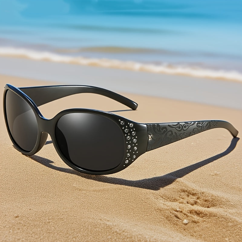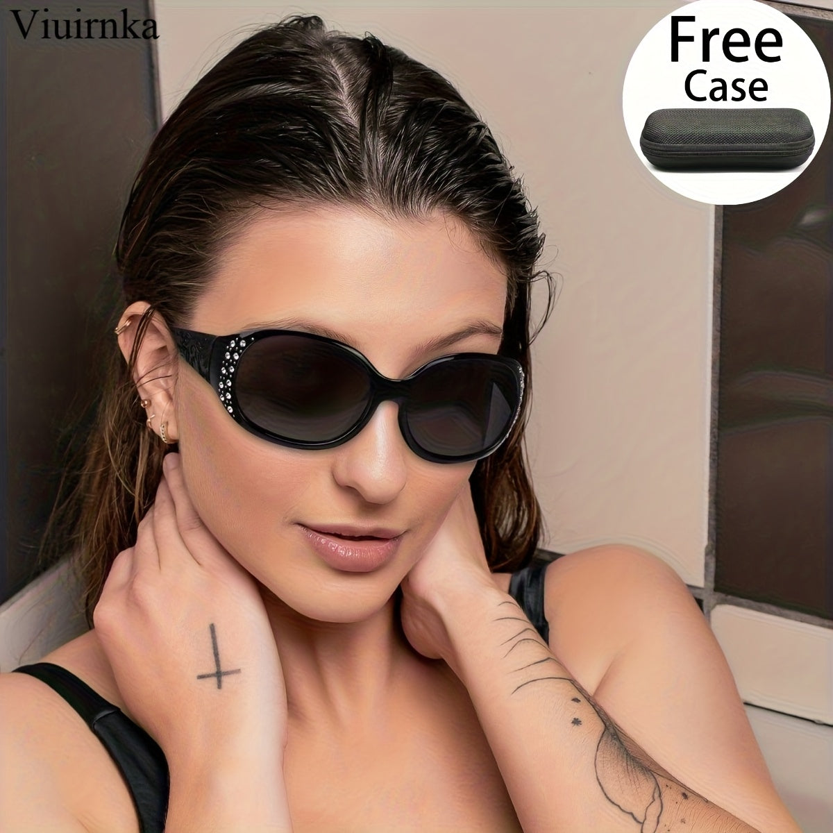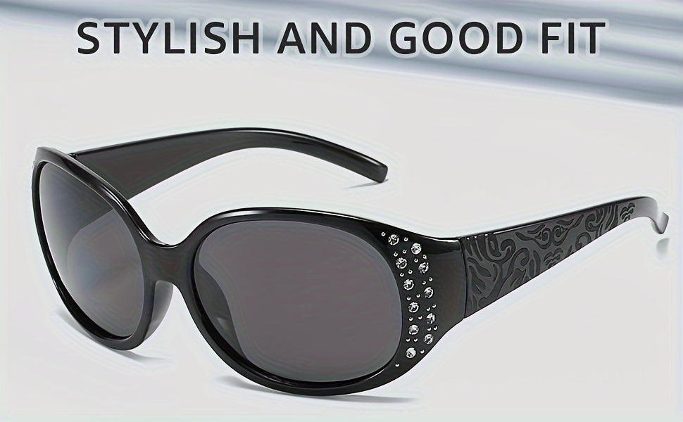 Trendy Glasses for Women - Fashionable Rhinestone-Embellished Cat-Eye Glasses with Purple Floral Design, Lightweight & Durable Frames for Beach, Driving, Outdoor Activities, Street Style, Photoshoot, Luxury Vacation Essential