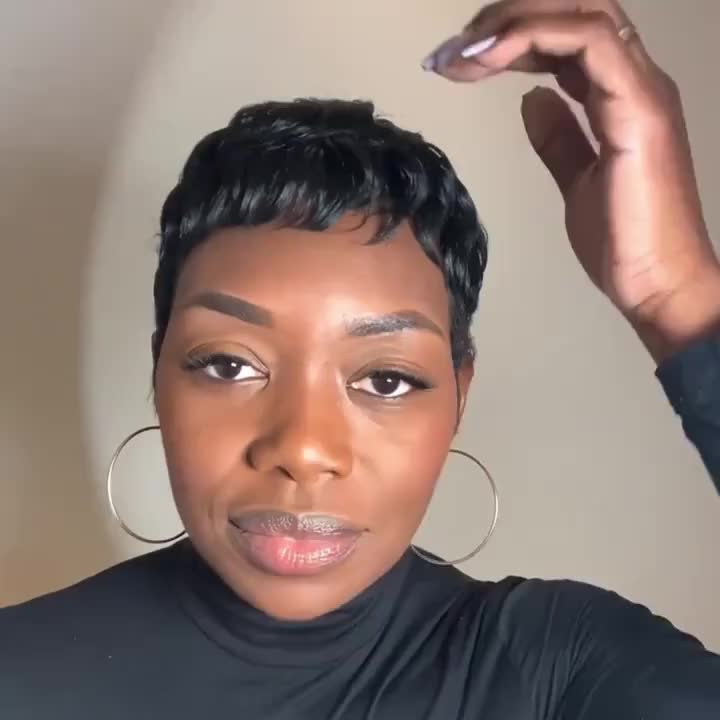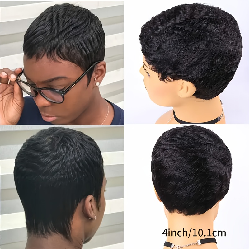Women's Brazilian Human Hair Pixie Cut Wig - Honey Blonde (Light Brown to Blonde Highlights), Natural Look & Feel, High Volume & Density 150% Straight Hair with Bangs, Rose Net Cap for Secure Fit - Light Brown to Blonde Highl