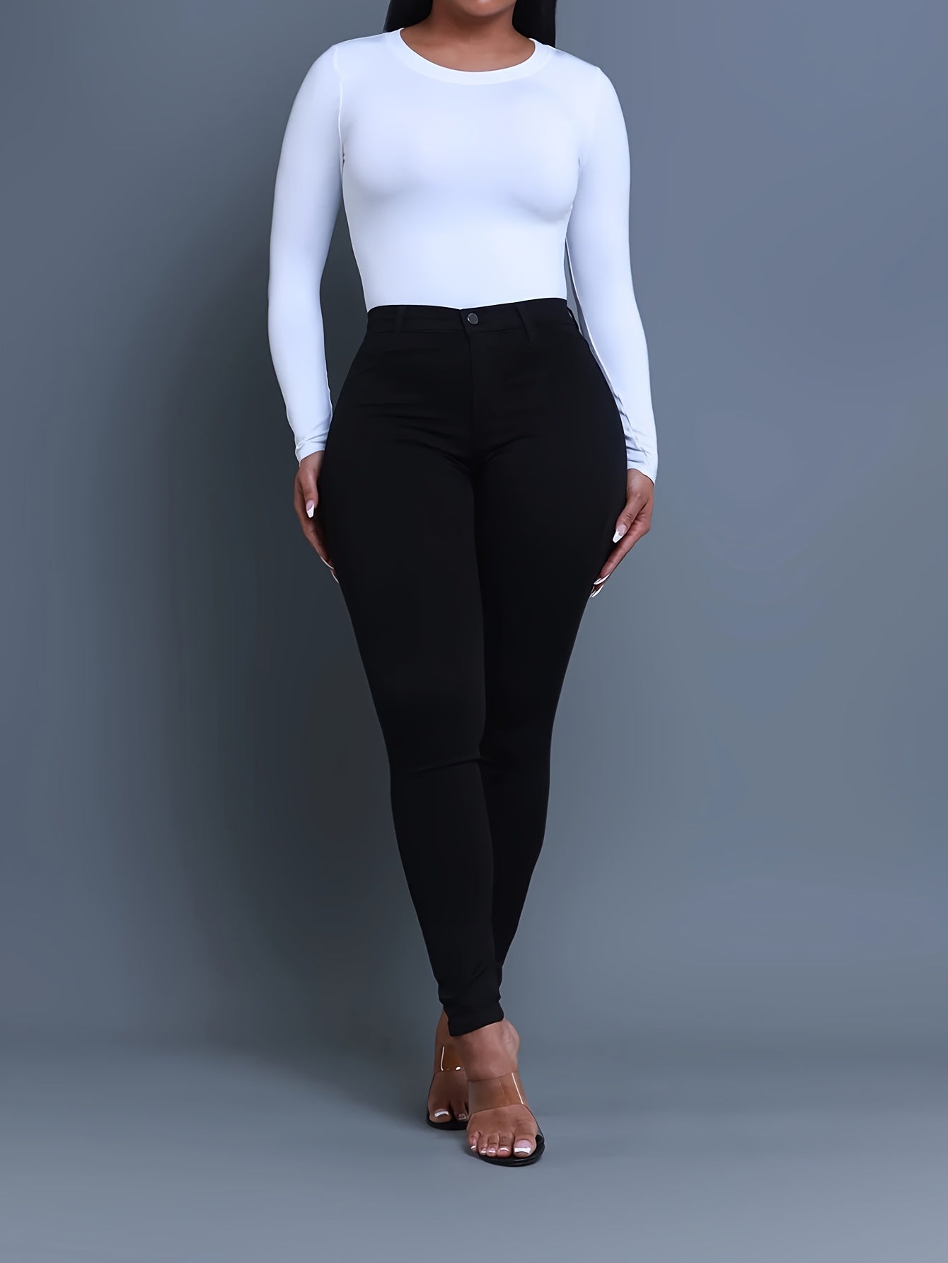 Women's Casual Four Seasons Slim Fit Elastic Solid Color Washed Denim Jeans European Style Denim Shorts Women's Versatile Denim Jeans