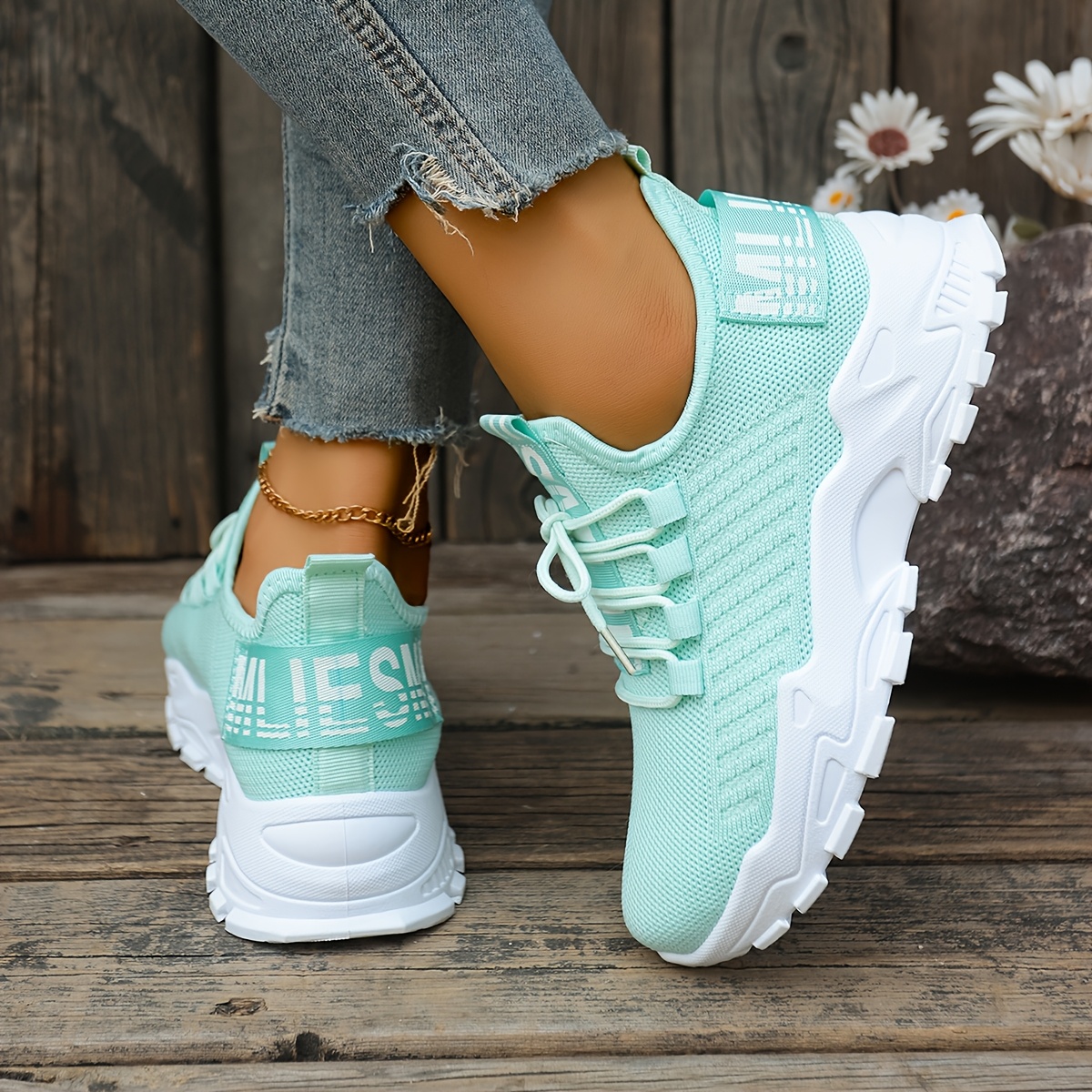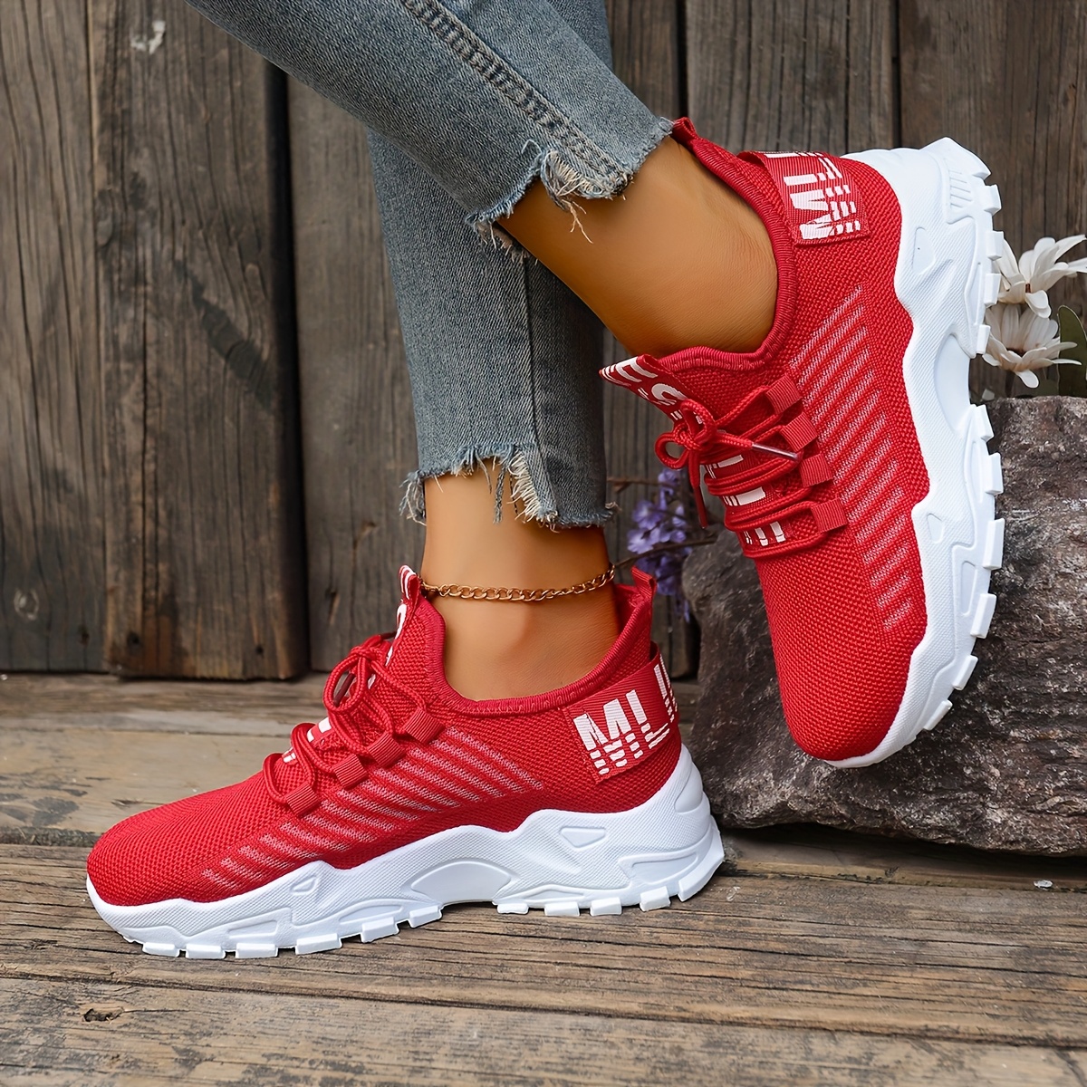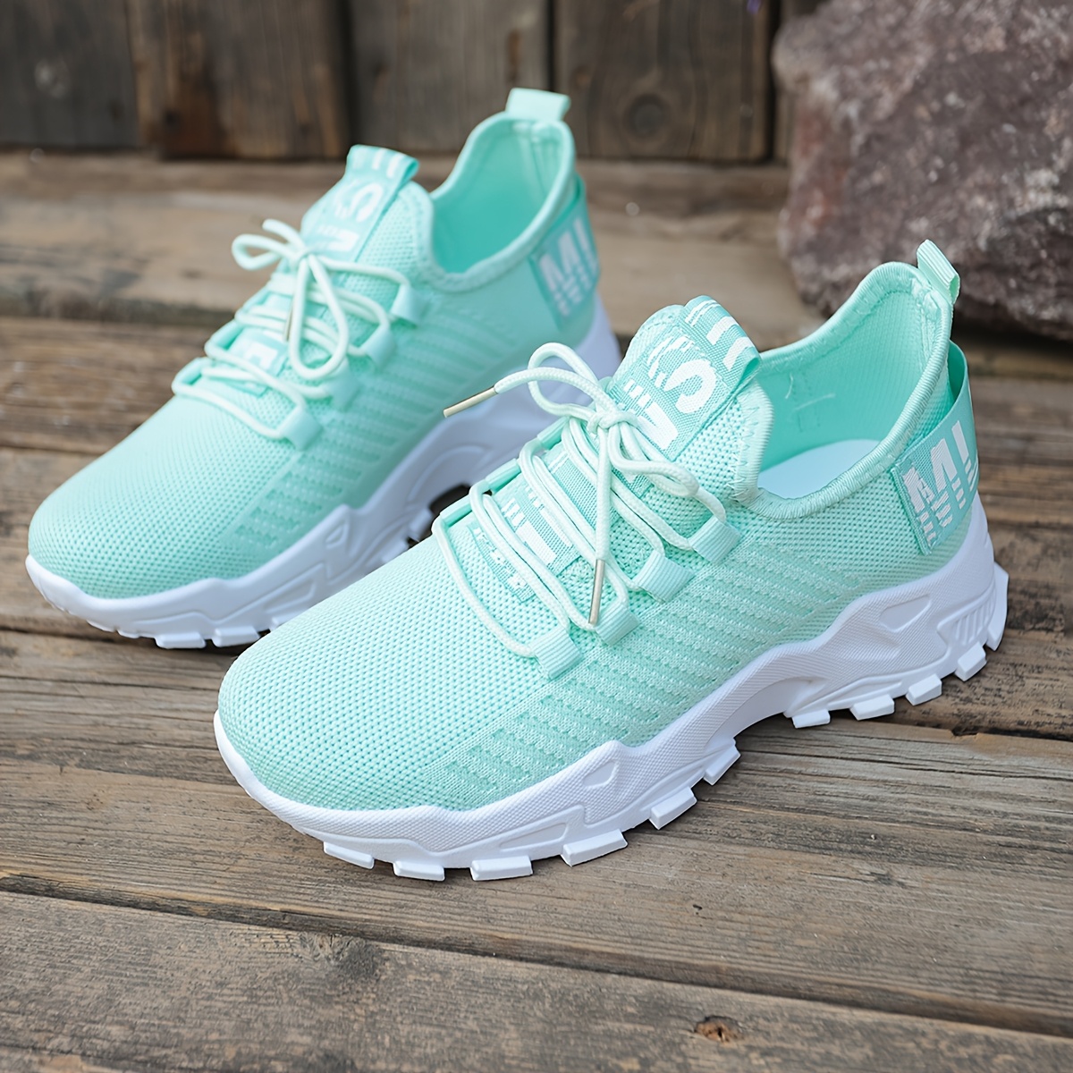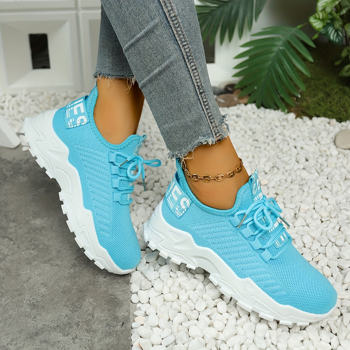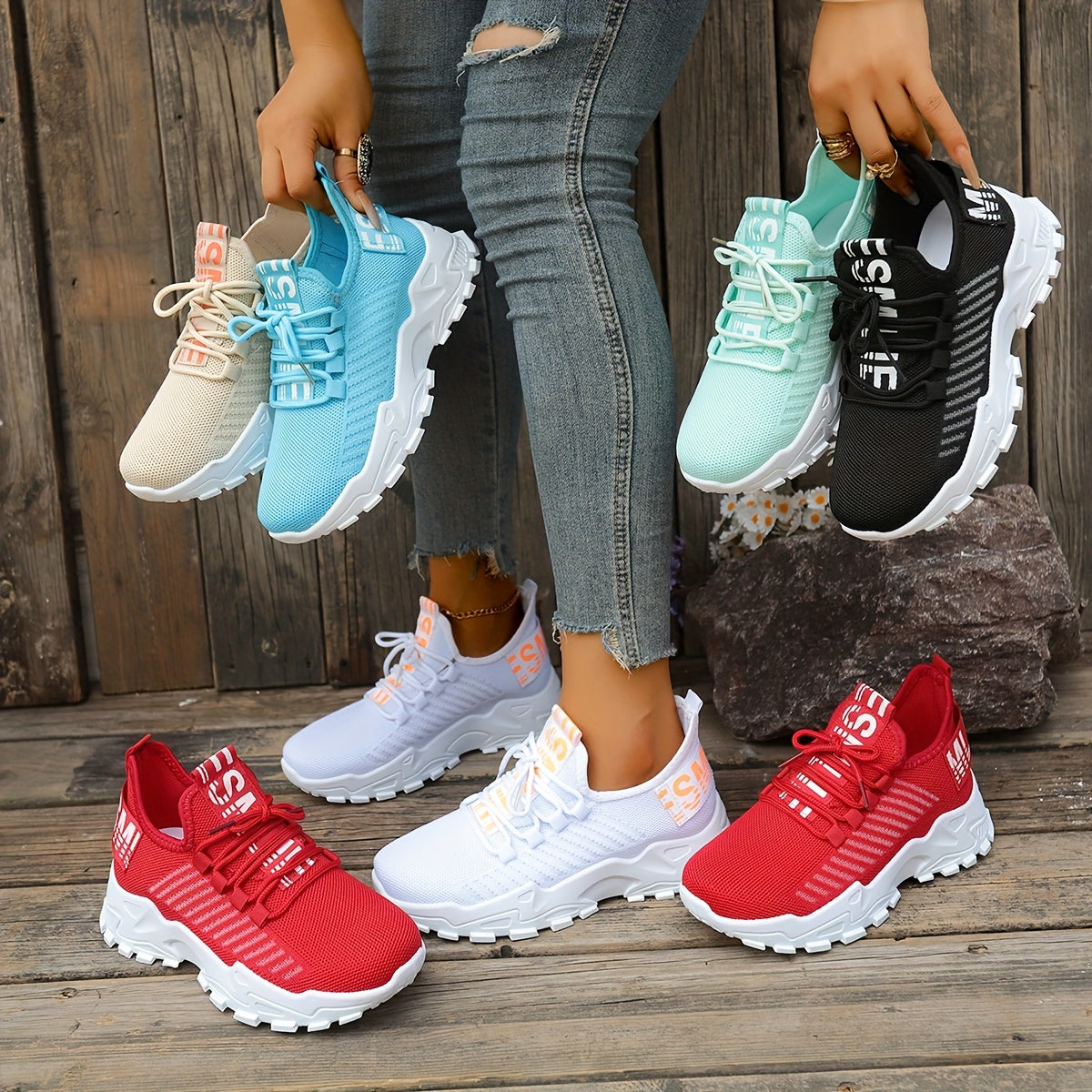Women's Casual Sneakers, Shock-Absorbing Breathable Running Shoes, Knitted Lace-Up Women's Shoes, Suitable for Daily Commuting, Running, Travel, and Shopping