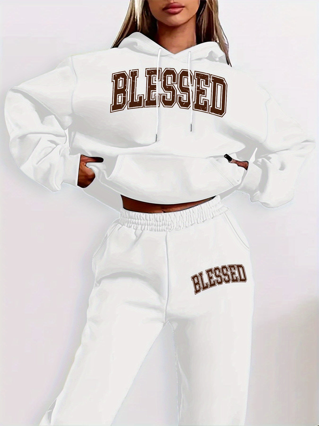 Women'S Casual Two-Piece Set - "Blessed" Print Hoodie & Sweatpants, Cozy Fall/Winter Outfit with Drawstring Waist, Long Sleeve Pullover & Joggers, Casual Wear, |casual Style|drawstring Waistband, Sweater Set