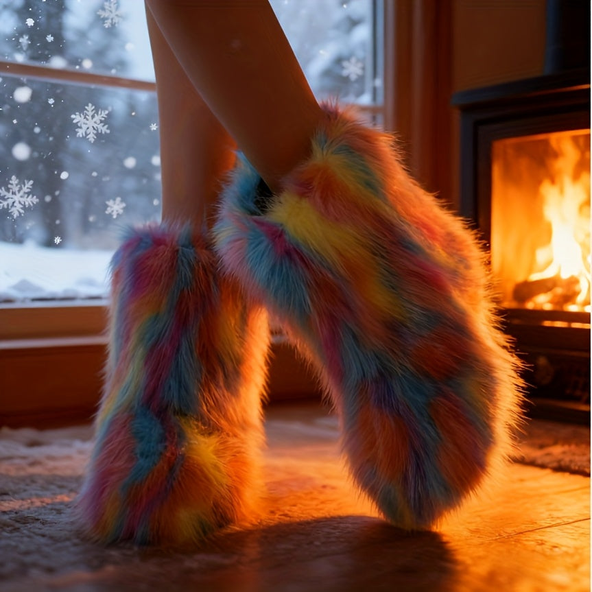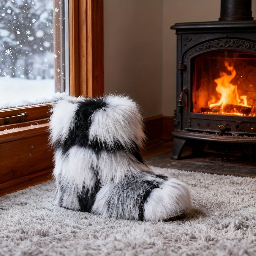 Women's Comfortable Winter Knee-High Boots - Soft Pink Faux Fur Lining, Suitable for Cold Weather, Winter Footwear | Furry Winter Boots | Comfortable Fabric Boots, Winter Shoes, Home Shoes, Slippers, Faux Fur Boots, Women's B