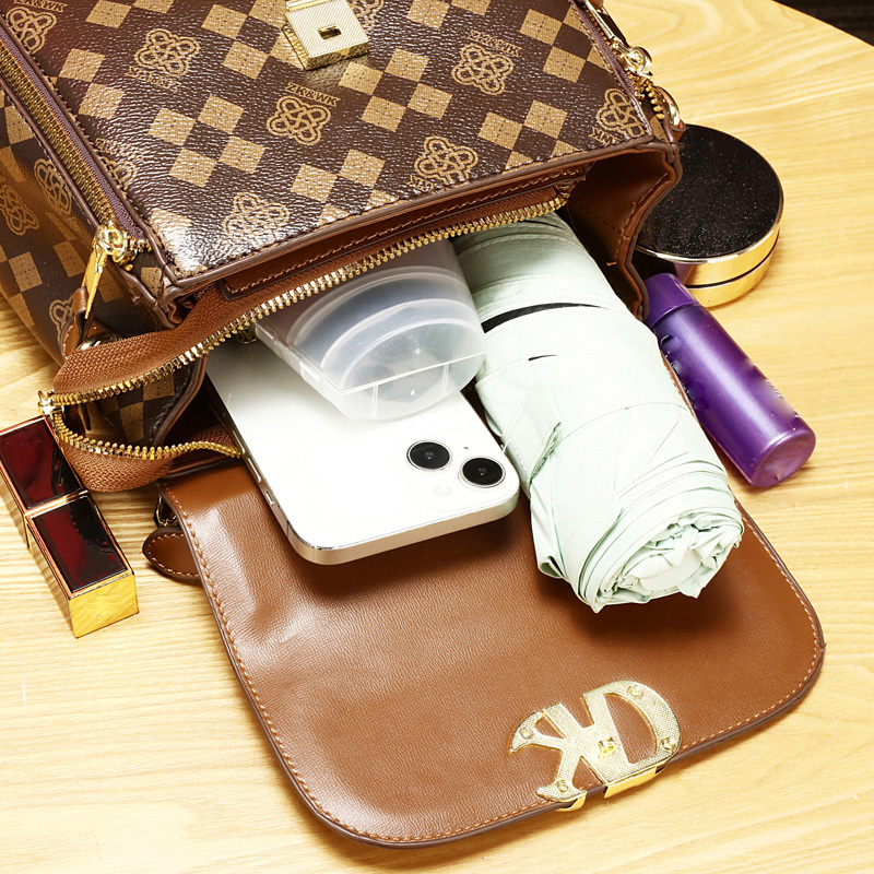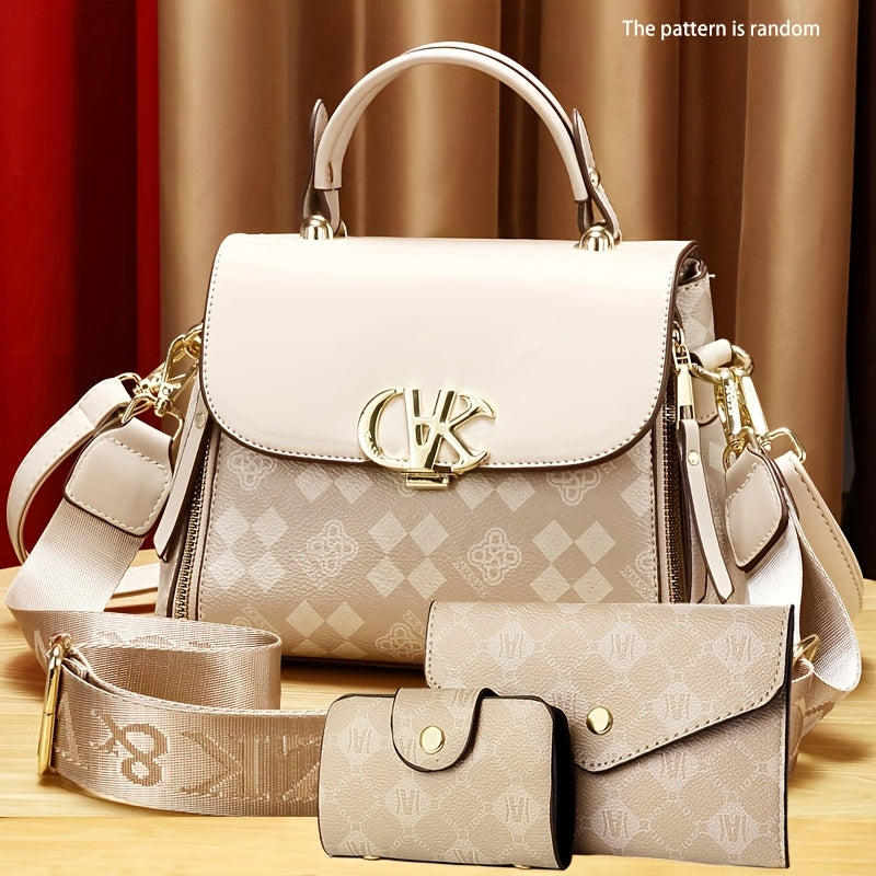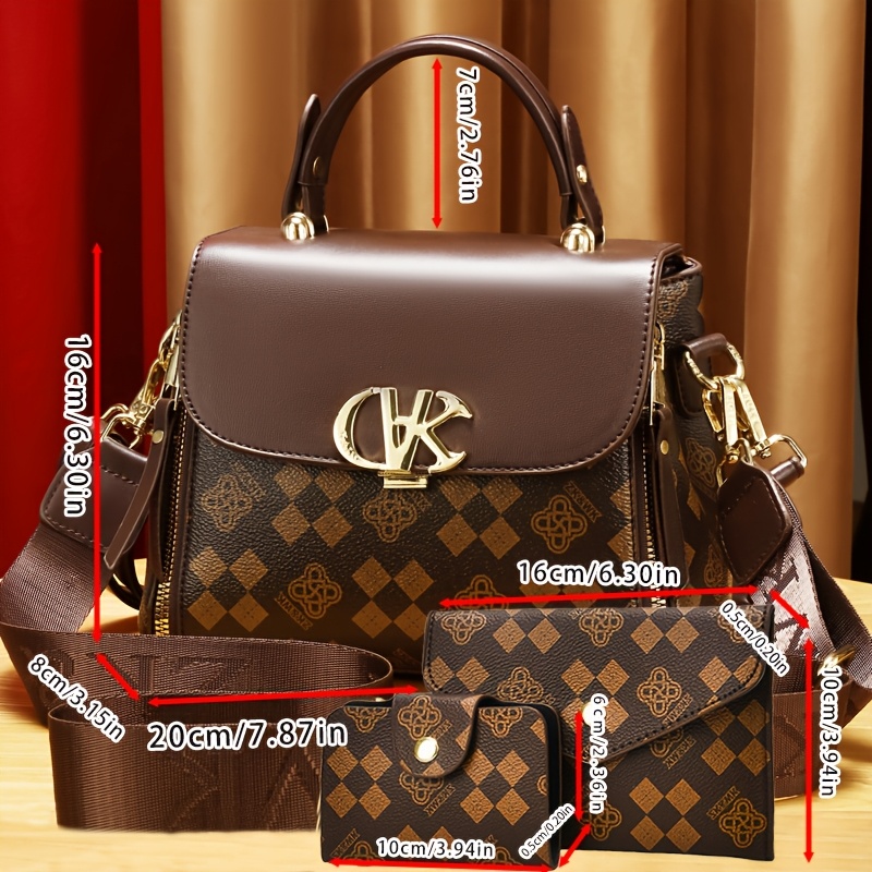 Women'S Handbag Set - Elegant Brown & Golden Tote with Detachable Strap, Zipper Closure, Polyester - Stylish Everyday & Formal Purse for Women, Versatile For Casual & Formal Occasions, Ladies Handbags, Urban Style, Durable Co