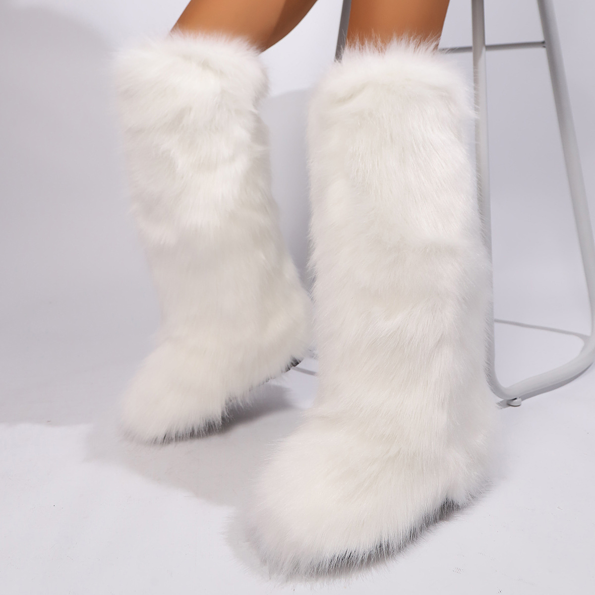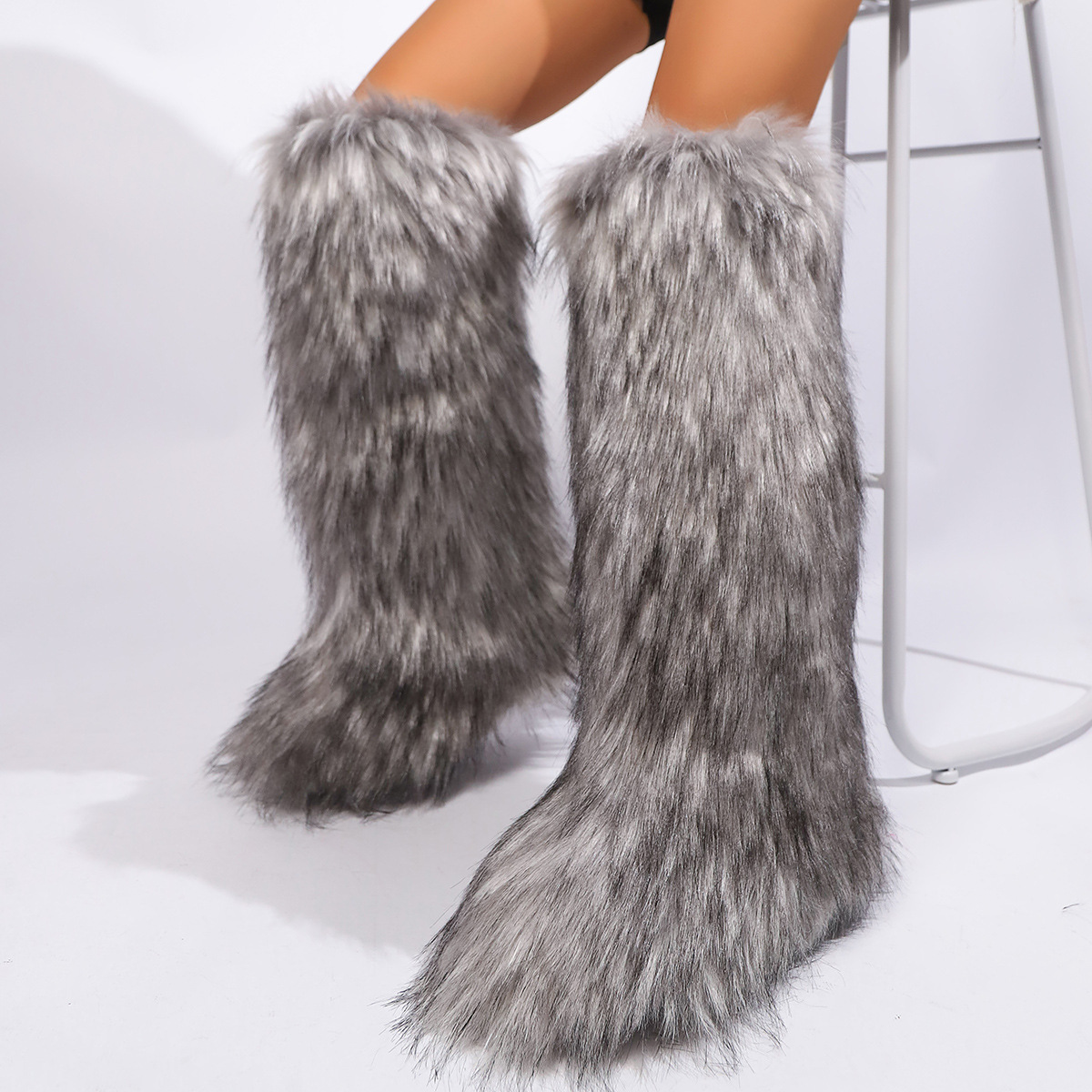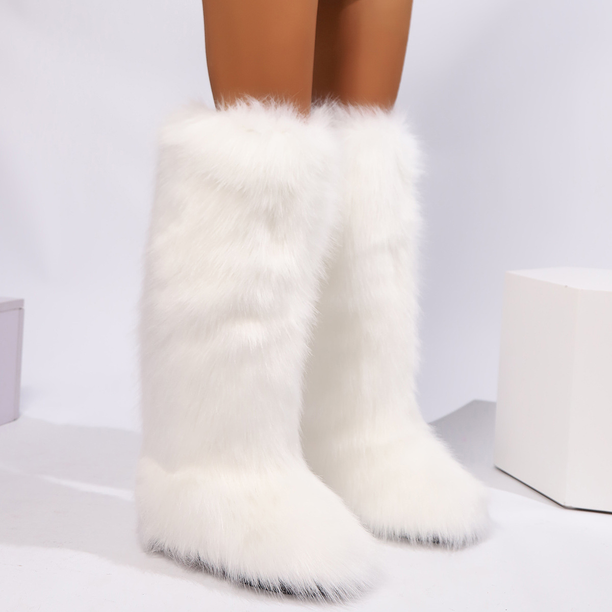 Women's Knee-High Snow Boots with Thick Faux Fur Collar & Buckle Closure - Slip-Resistant TPR Sole, Plus Size US 5-13 (EU 36-43), All-Season Winter Boots for Ice, Snow & Casual Wear - Ins-Inspired Round-Toe Booties