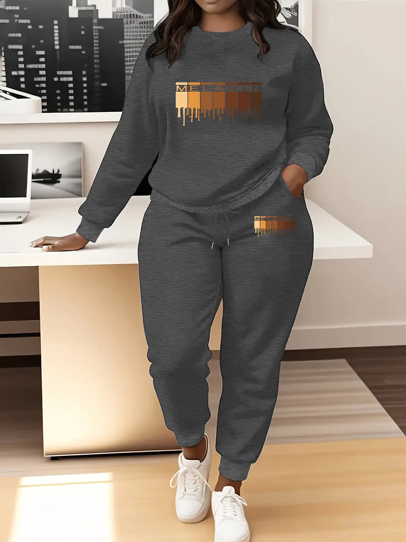 Women'S Plus Size Oversized Hoodie & Jogger Pants Set - Cozy Winter Warmth, Soft Round Neck Sweatsuit with Geometric Print, Full-Zip Hooded Jacket & Matching Pants, Casual Lounge Wear, Plus Size Friendly Comfortable Outfit fo