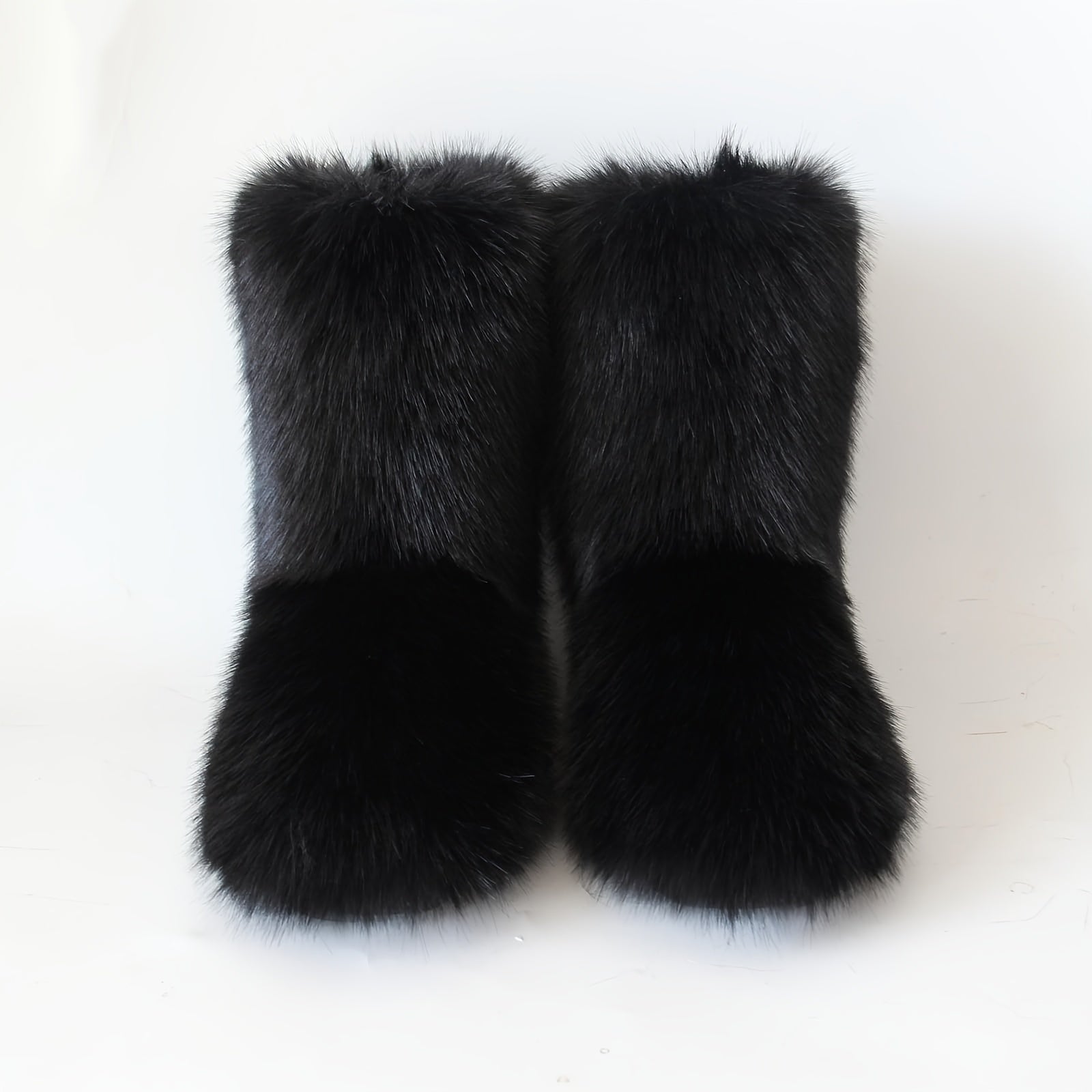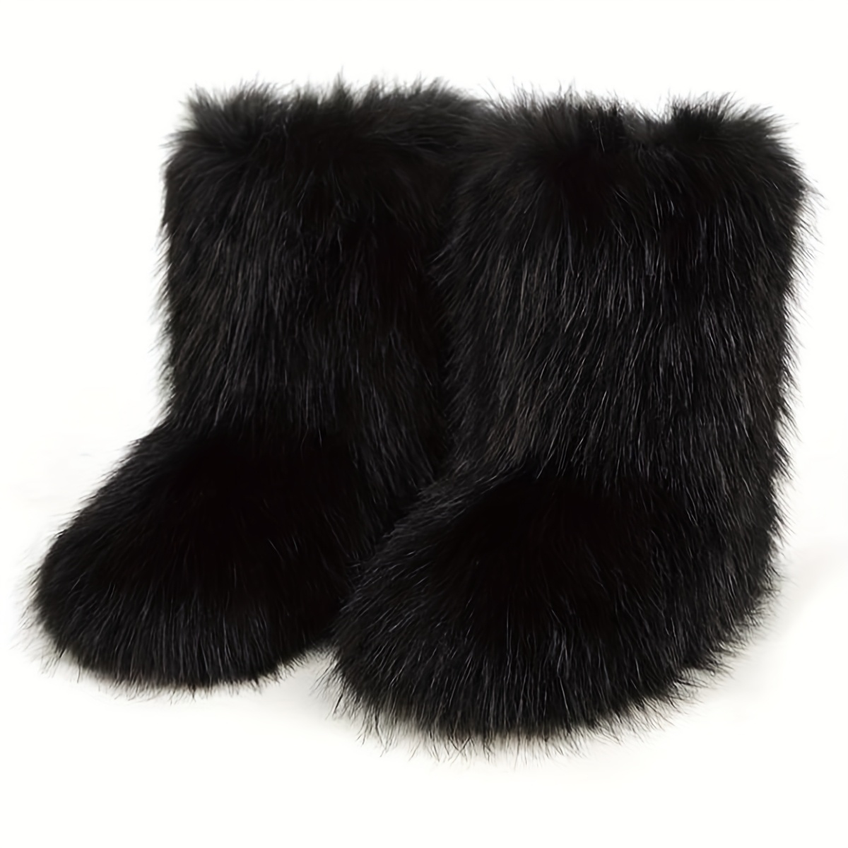 Women's Plush Faux Fur Winter Boots - Furry Mid-Calf (Short) Round Toe Snow Shoes with Sole, Cozy Warm & Soft Inner - White/Black/Coffee Brown//Tortoiseshell - Casual & Party Footwear
