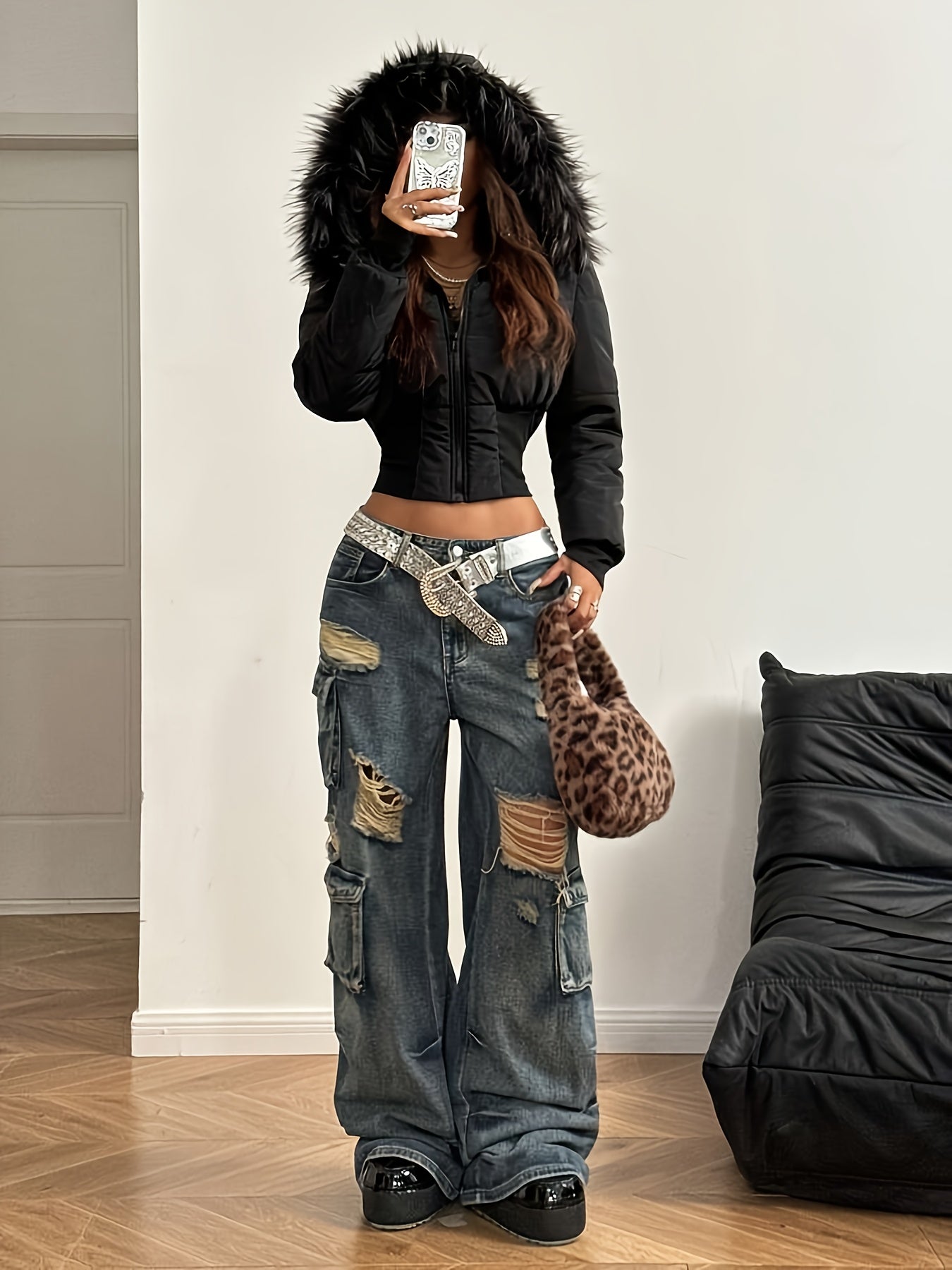 Women'S Winter Quilted Jacket - Cozy Long Sleeve Zip-Up Coat with Plush Faux Fur Trim, Black Casual Streetwear Outerwear, Warm Winter Coat for Cold Weather
