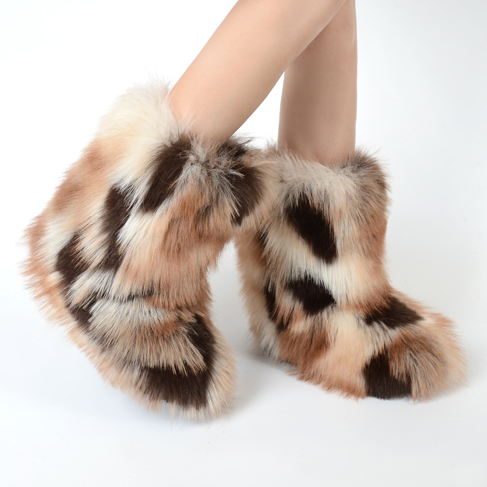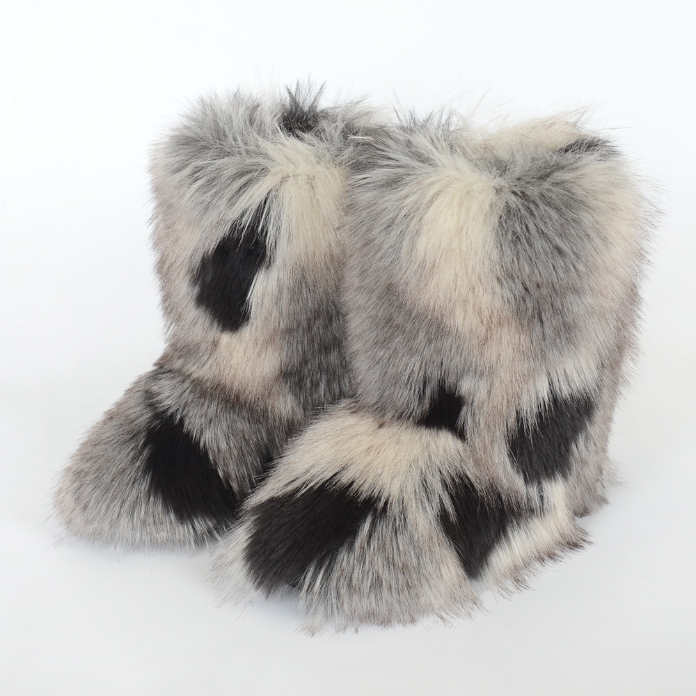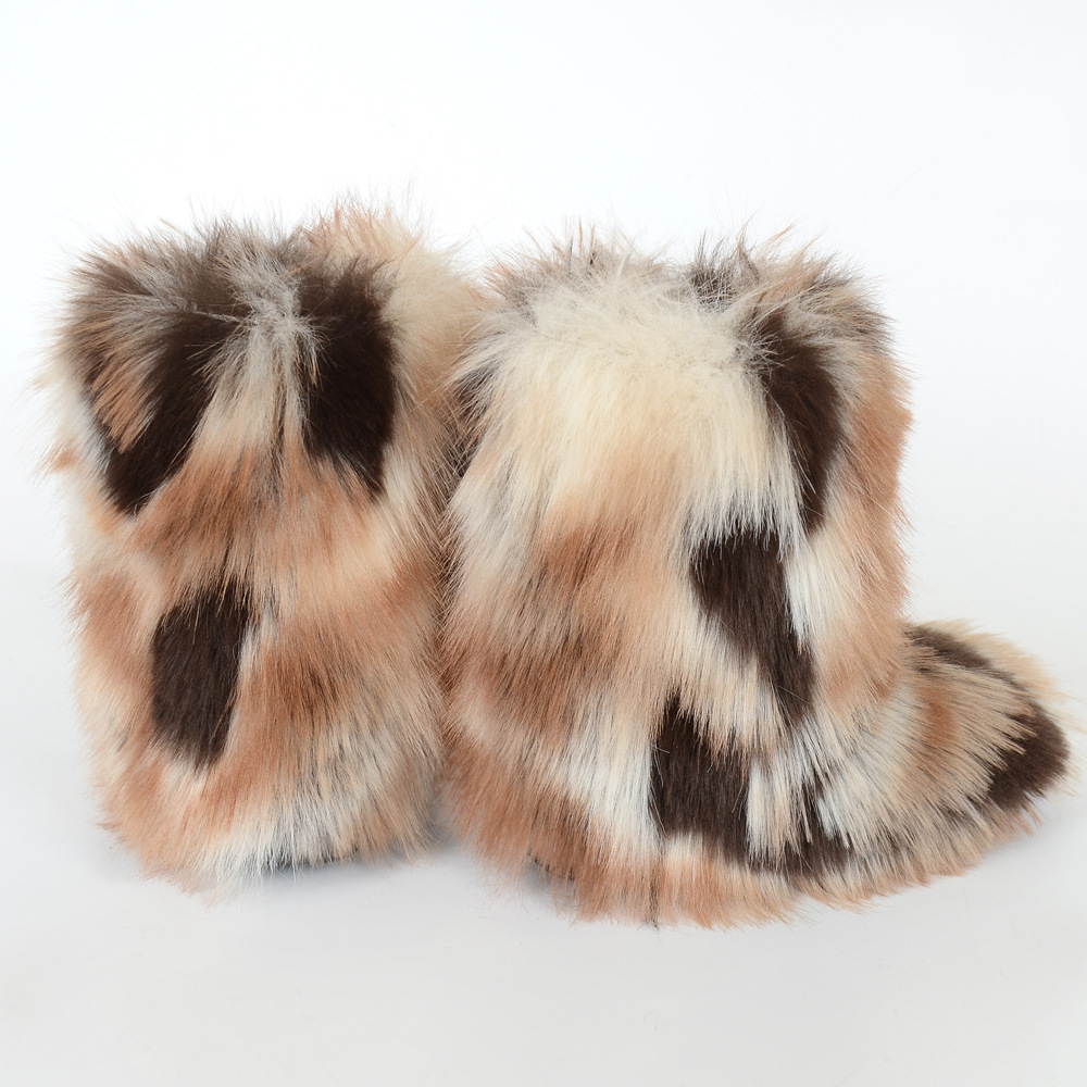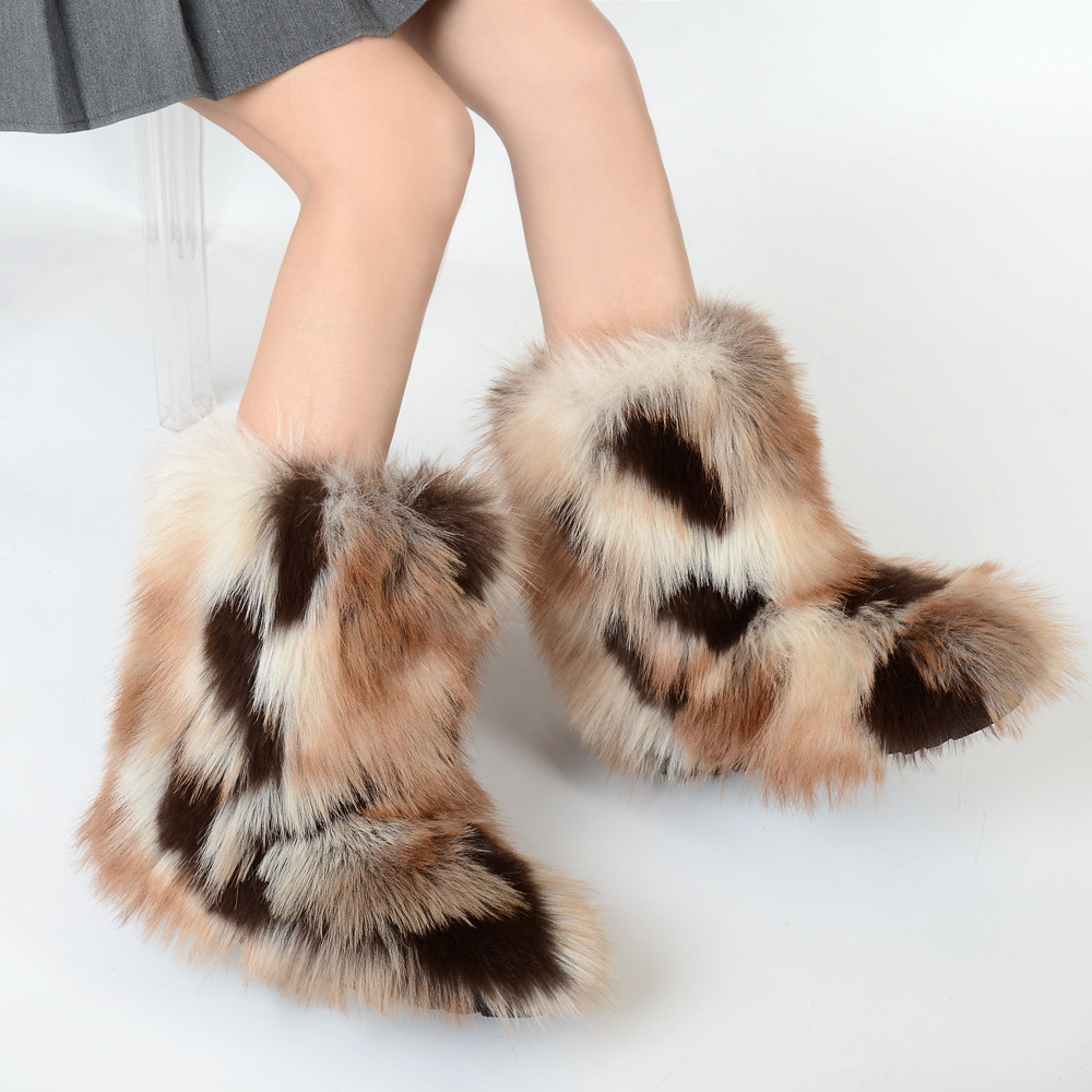Women's Y2K Style Winter Snow Boots with Multi-Tone Faux Fur - Thick Platform Sole Warm Round Toe Slip-On Footwear, Rubber Outsole for Ice & Snow, Luxury Plush Boots for Cold Weather (Cozy Casual)