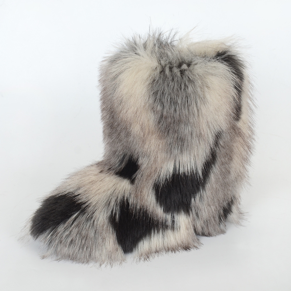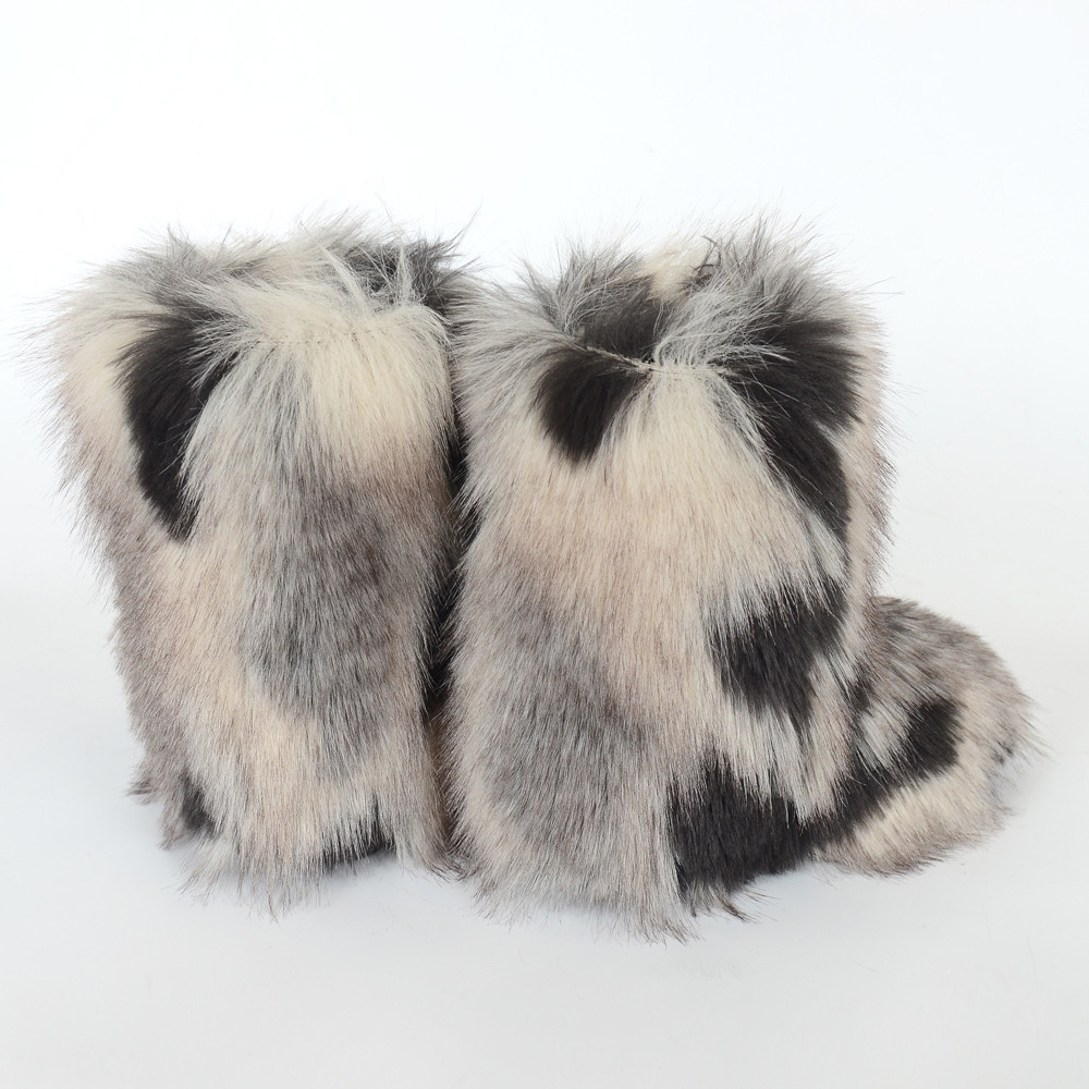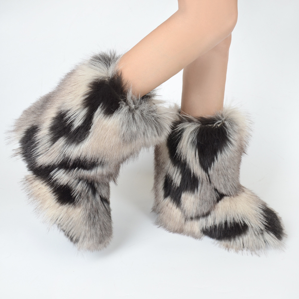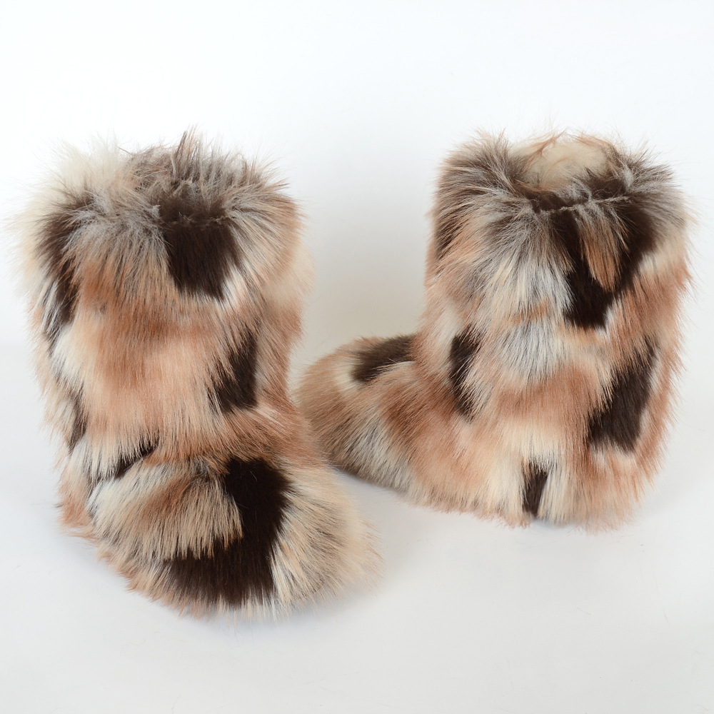 Women's Y2K Style Winter Snow Boots with Multi-Tone Faux Fur - Thick Platform Sole Warm Round Toe Slip-On Footwear, Rubber Outsole for Ice & Snow, Luxury Plush Boots for Cold Weather (Cozy Casual)