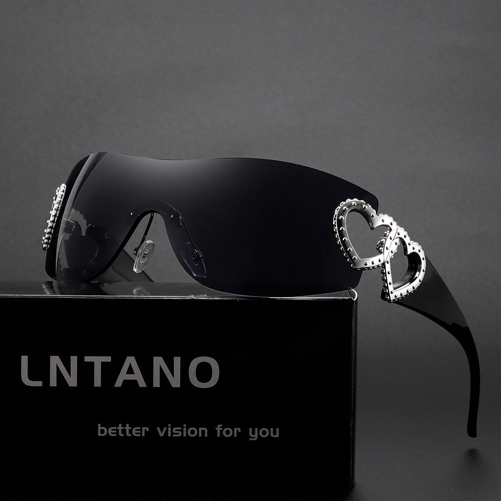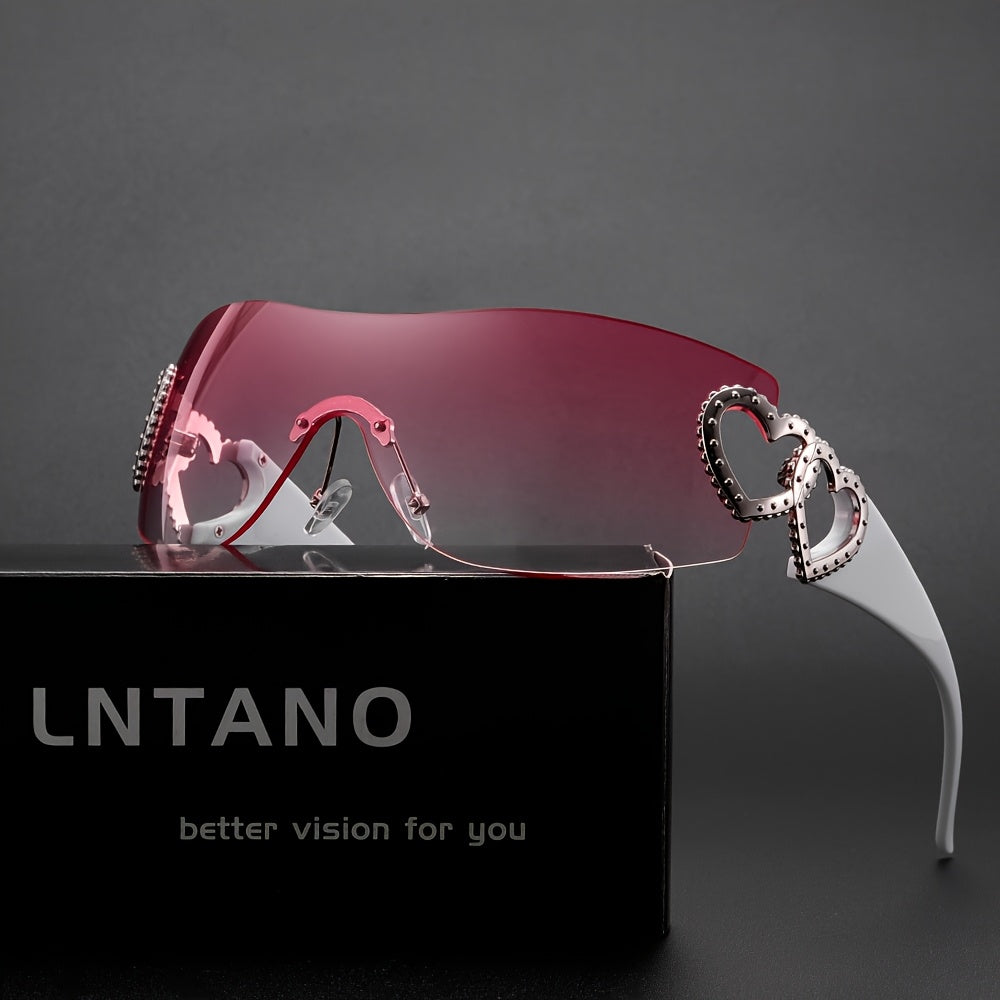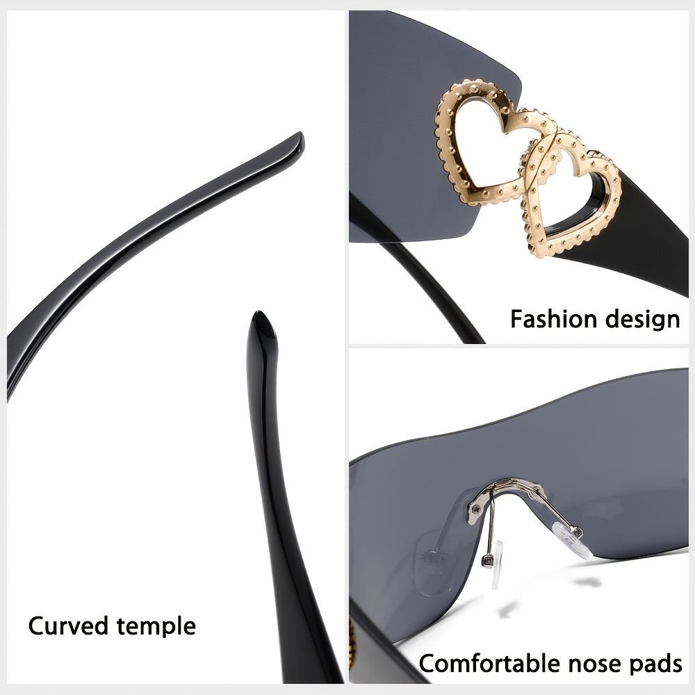 Y2K Heart-Shaped Fashion Glasses for Women - Lightweight Frameless Hollow Design with Rose Golden Heart Decoration, Dark Lenses, Stylish & Protective, Perfect for Fashion Accessories, Fashion Glasses